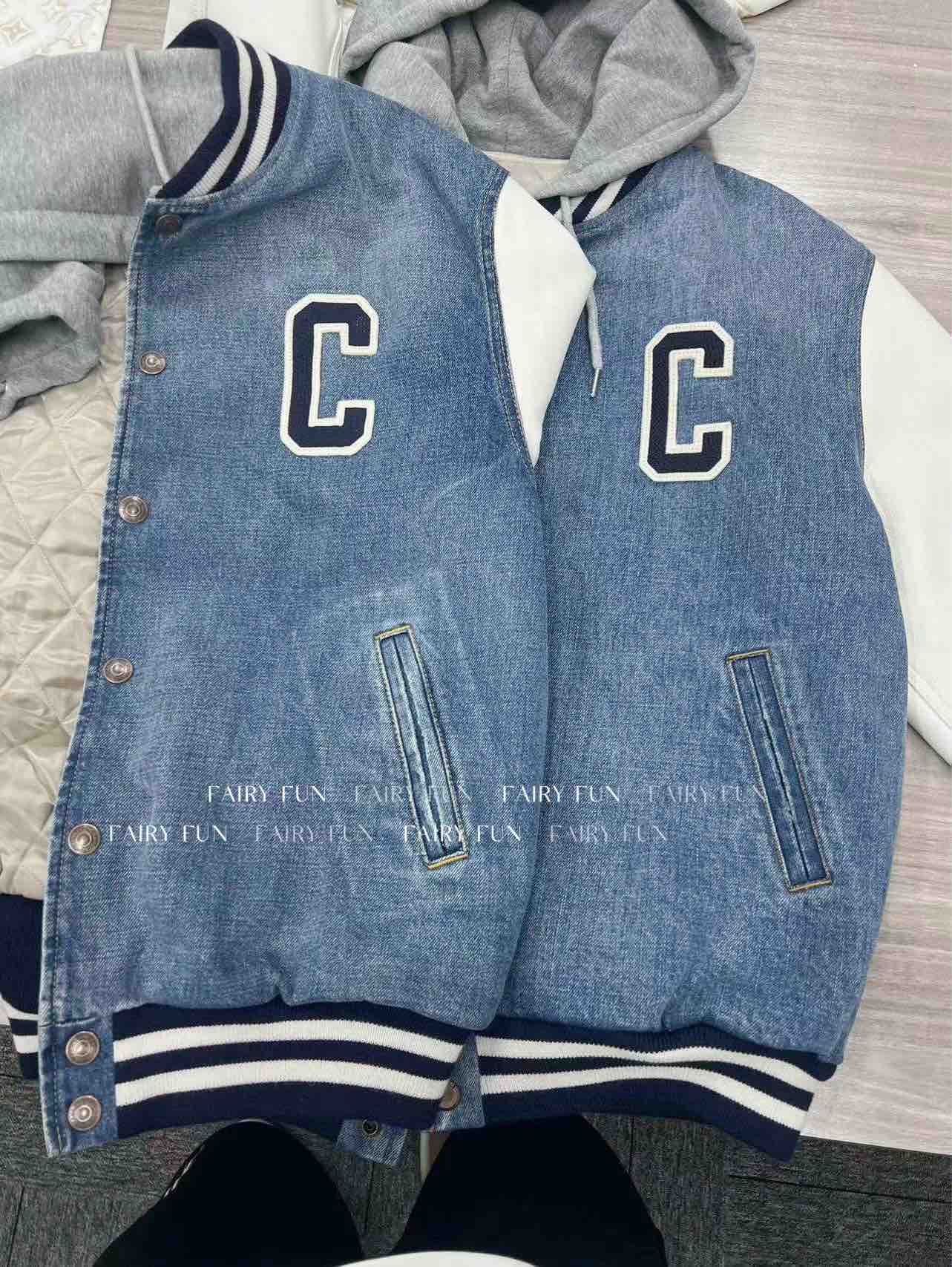 CE-C 小羊皮袖拼牛仔棒球夹克
