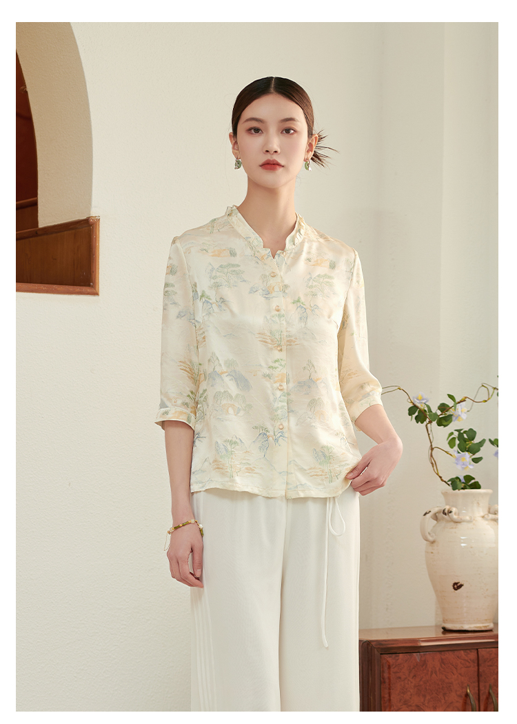 佐尔美 气质七分袖桑蚕丝真丝衬衣女M42CS12