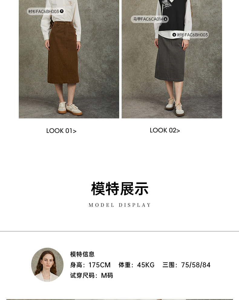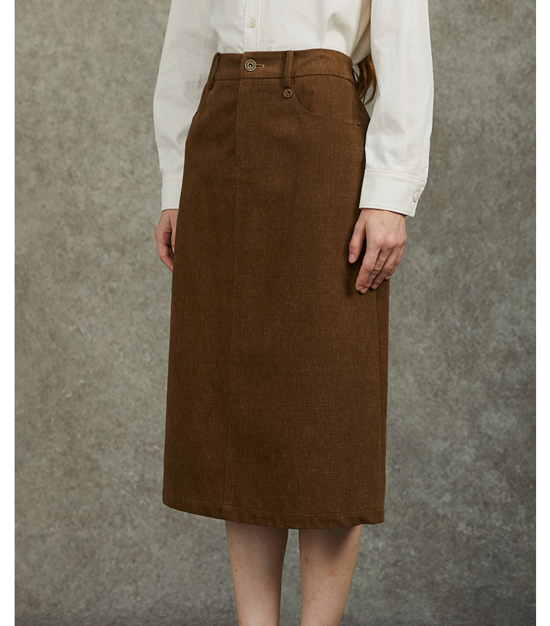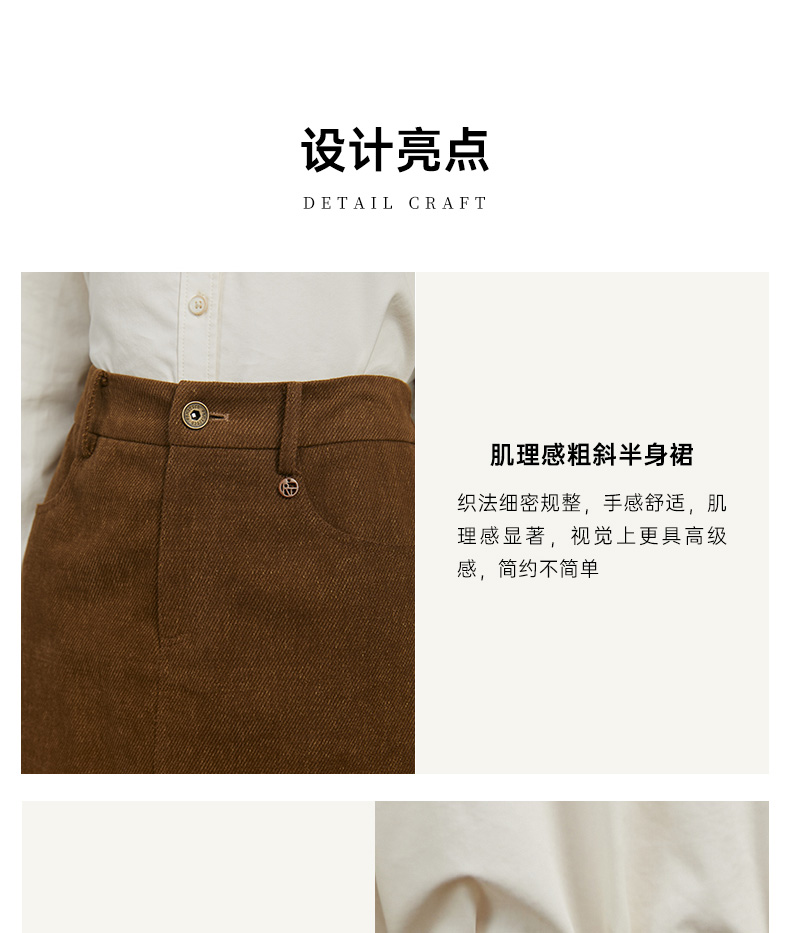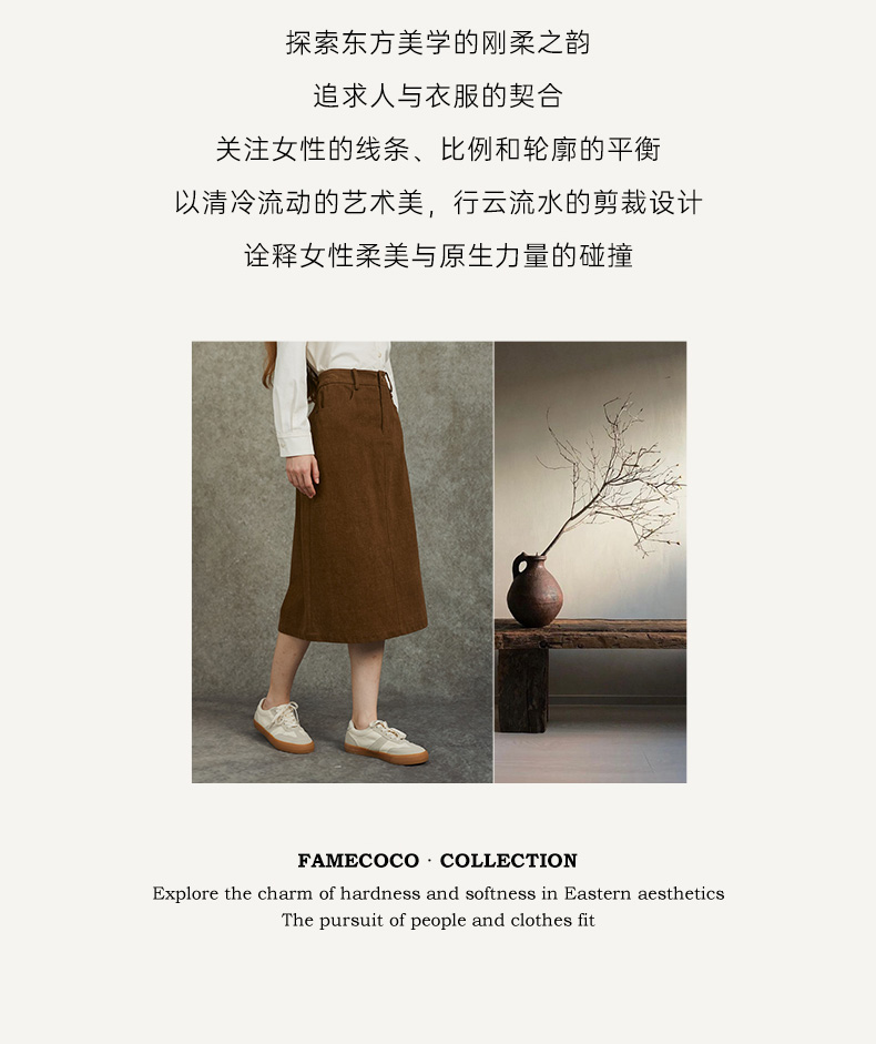 Famecoco范可儿肌理感粗斜半身裙简约高级感高腰直筒FAC6HA025