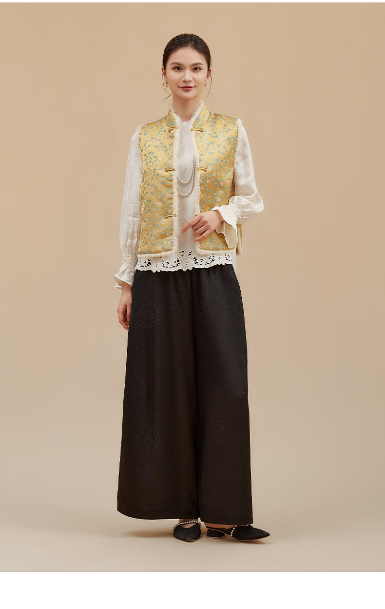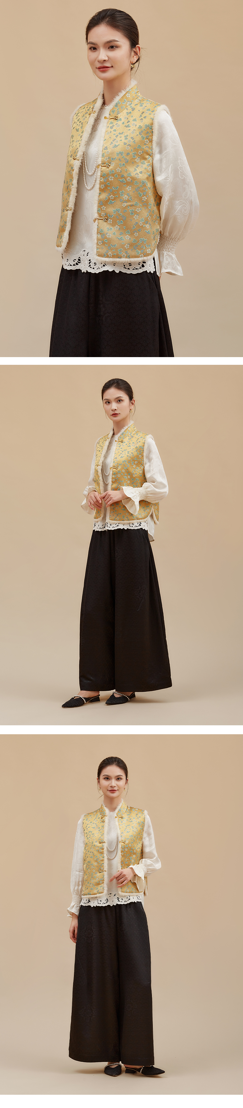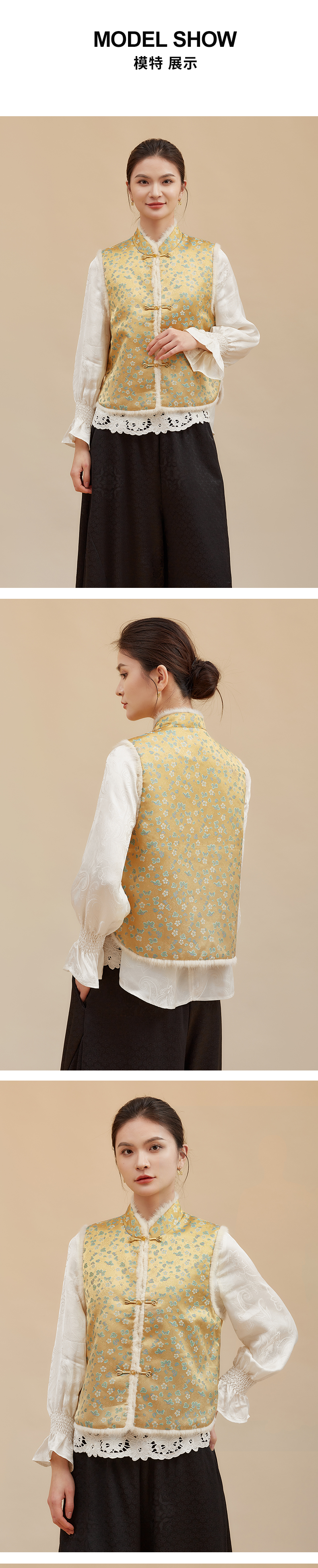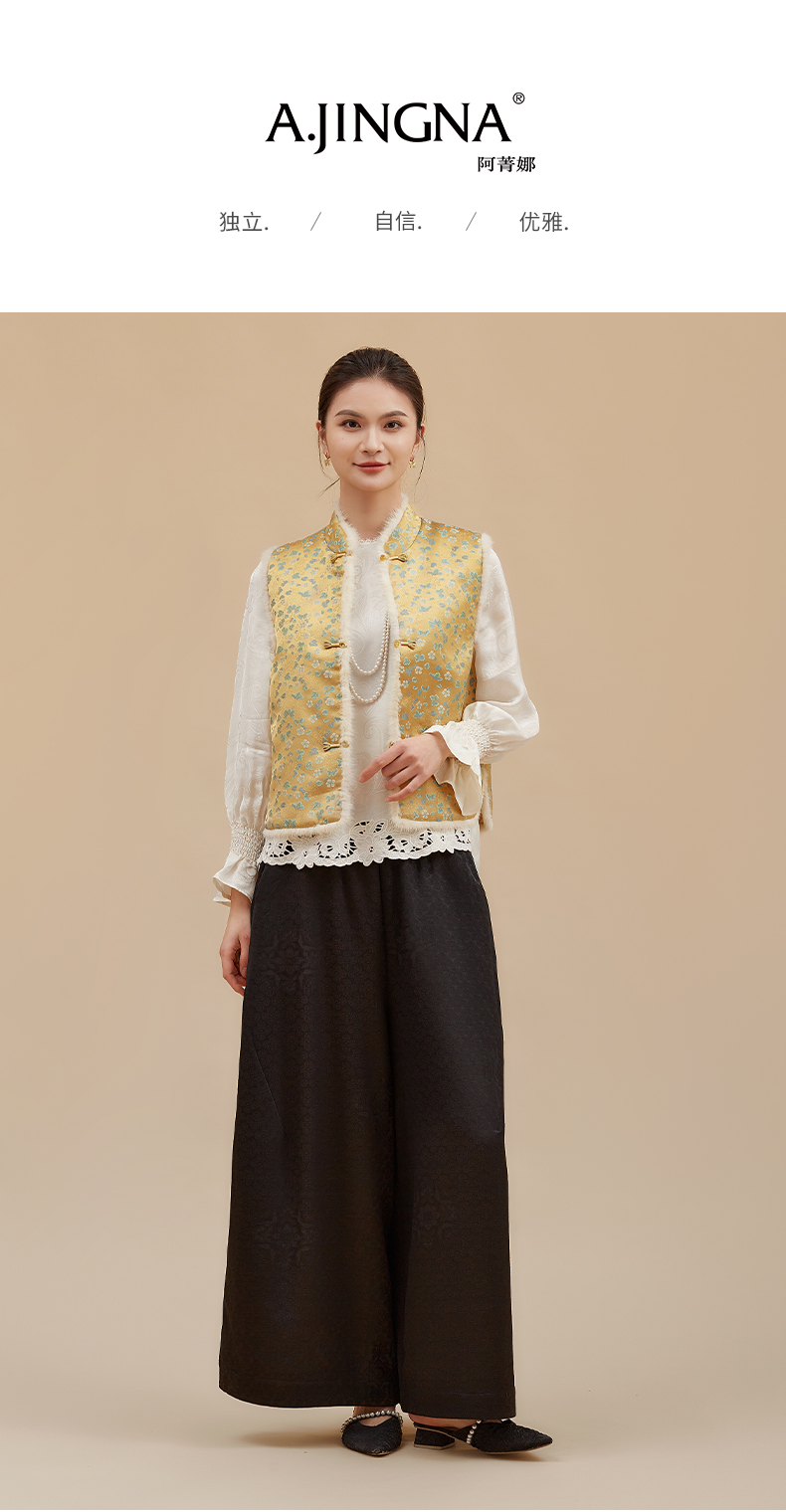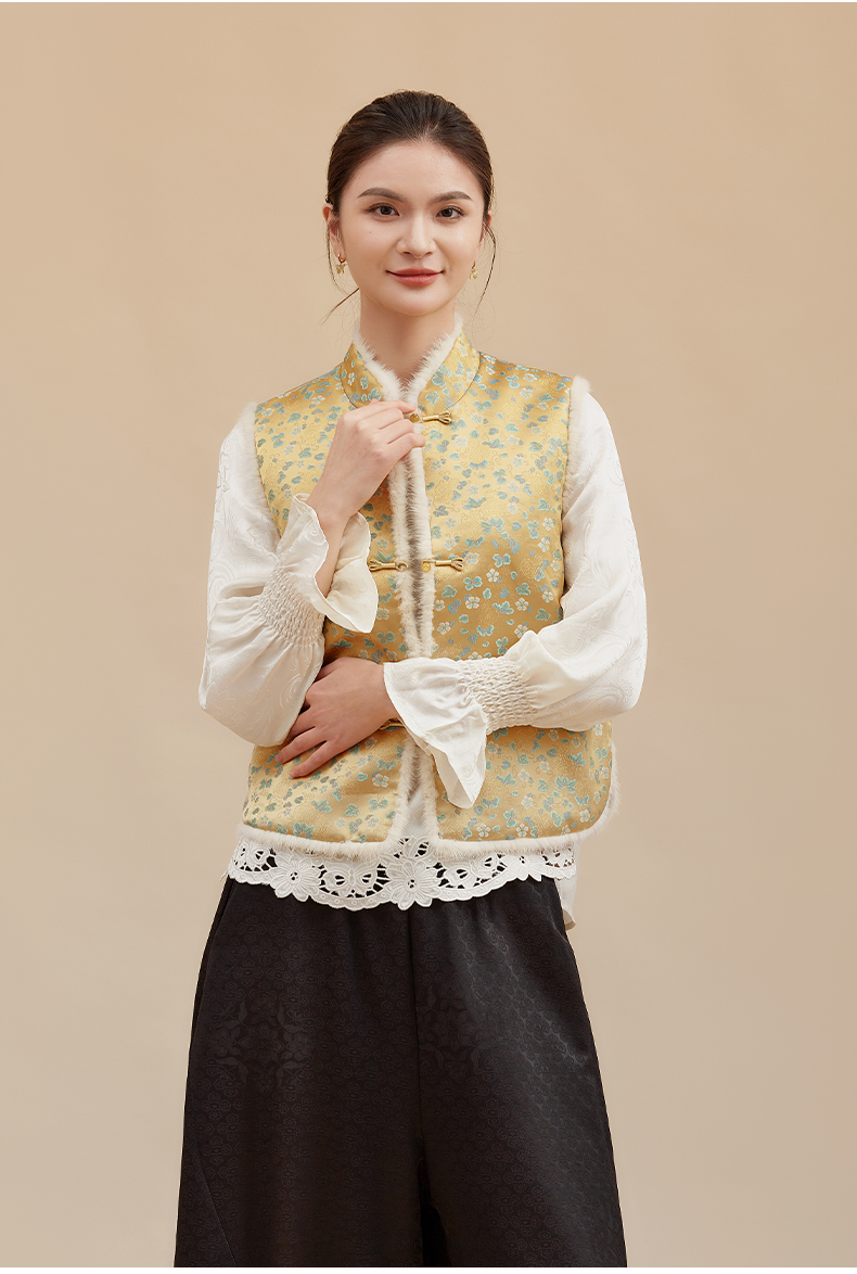 【淘衣节专享】阿菁娜冬季新款暖奢宋锦马甲水貂毛包边夹棉内里非遗织金面料新中式氛围外套F30D203016