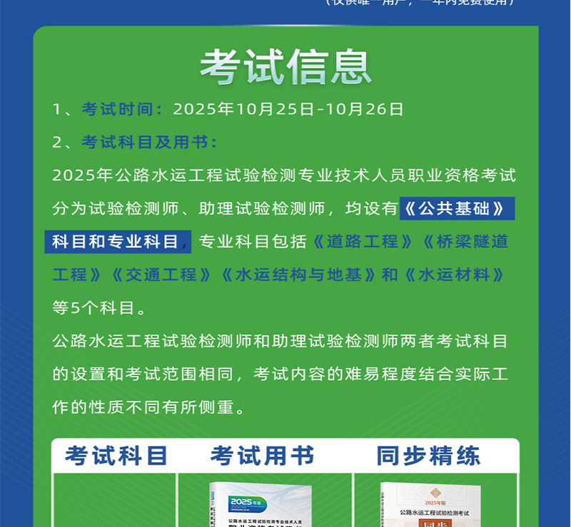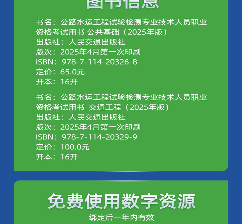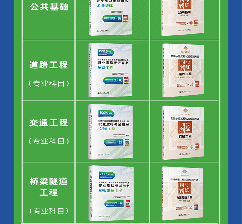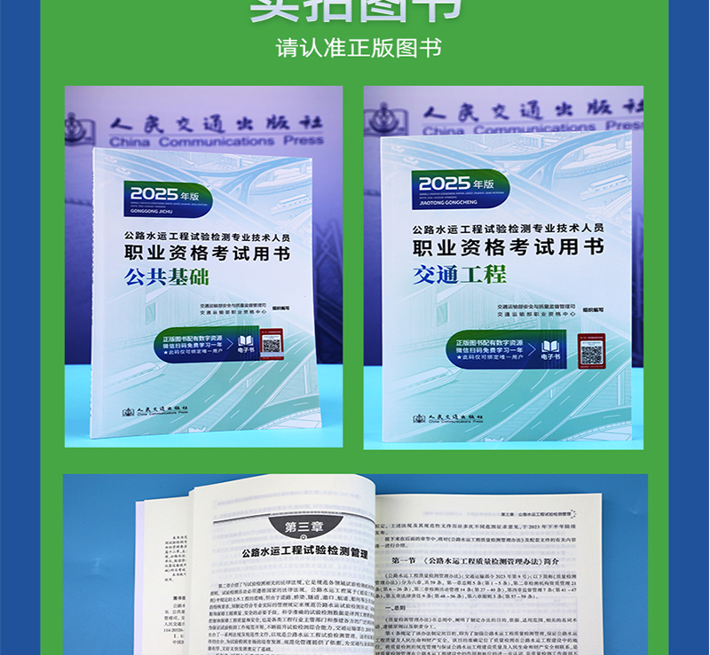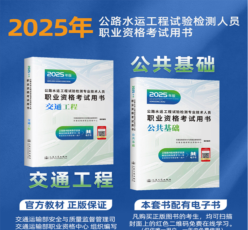 书名:2025年版【全2册】公路水运工程试验检测教材 公共基础+交通工程 定价:165.00元 ISBN:TZ9787114194290 版次:1 出版时间:2025