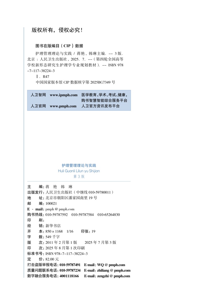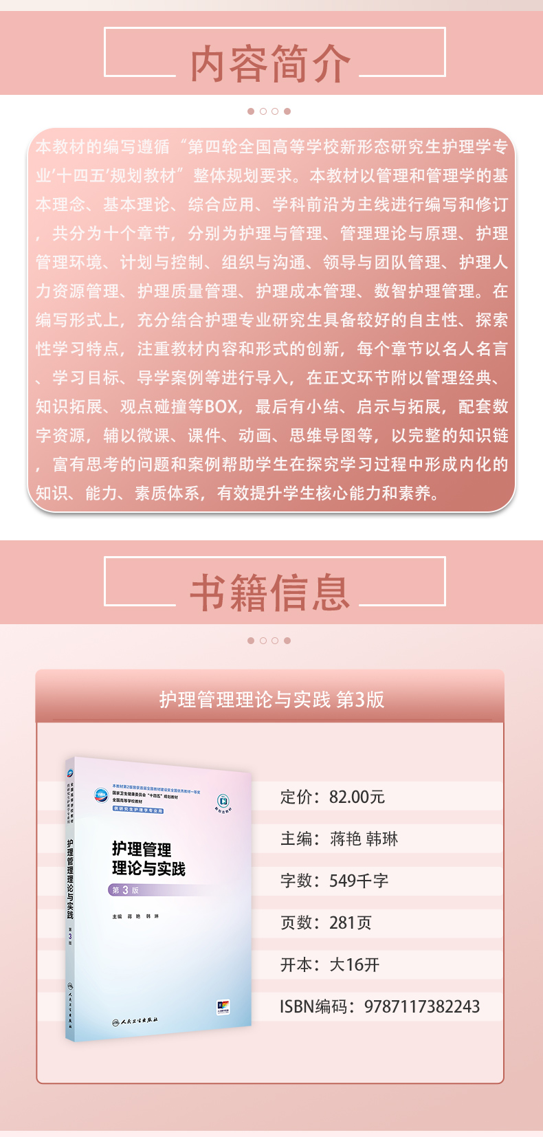 护理管理理论与实践 第3三版 十四五规划教材全国高等学校教材 蒋艳 韩琳 主编 供研究生护理学专业用9787117382243人民卫生出版社