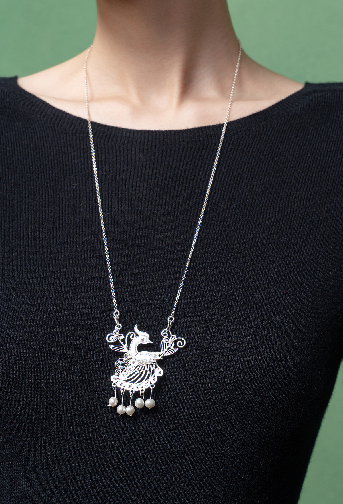 【林栖设计小店】淡水珍珠吊坠项链花丝银器银925设计感2025秋冬新款配饰2954160
