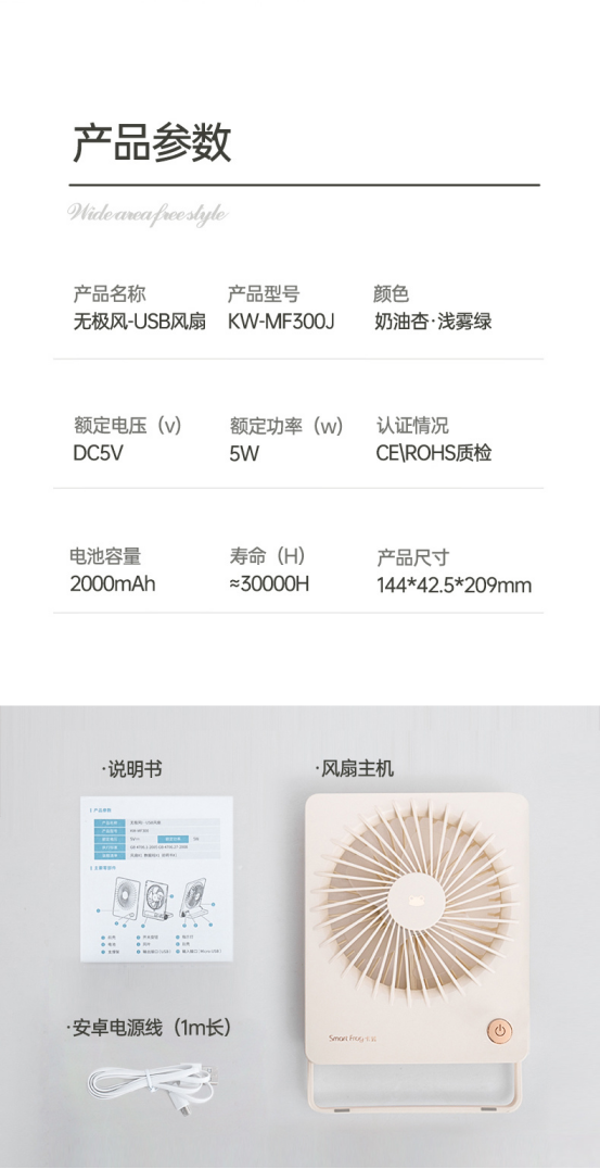 超级静音,晚上放卧室也不会影响睡眠另外还很省电哦。 ✅2000mAh可充电锂电池,满电可用10小时, 长效续航,出门尽兴浪! 这个夏日尽情享受超高性价比的夏季乘凉吧‼️