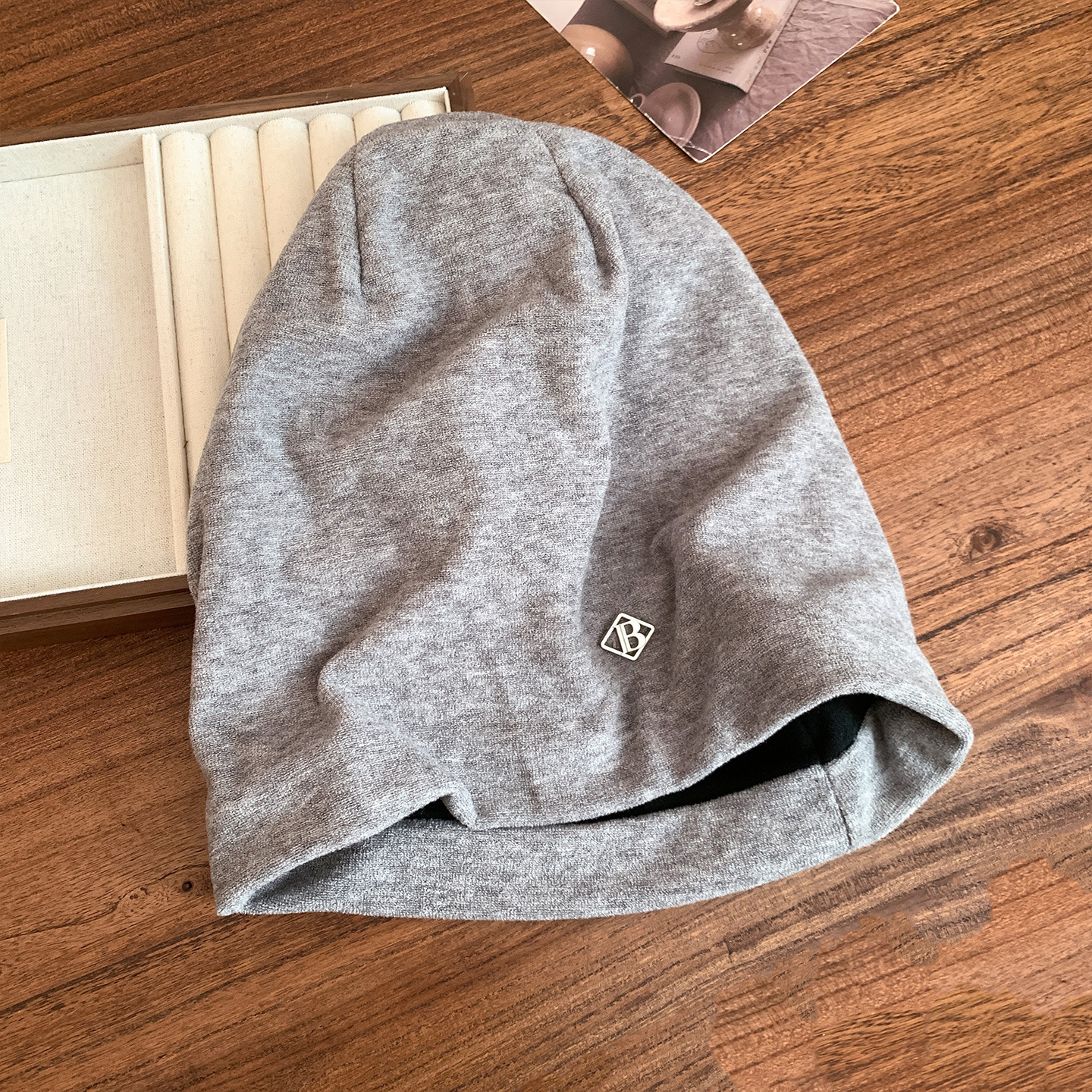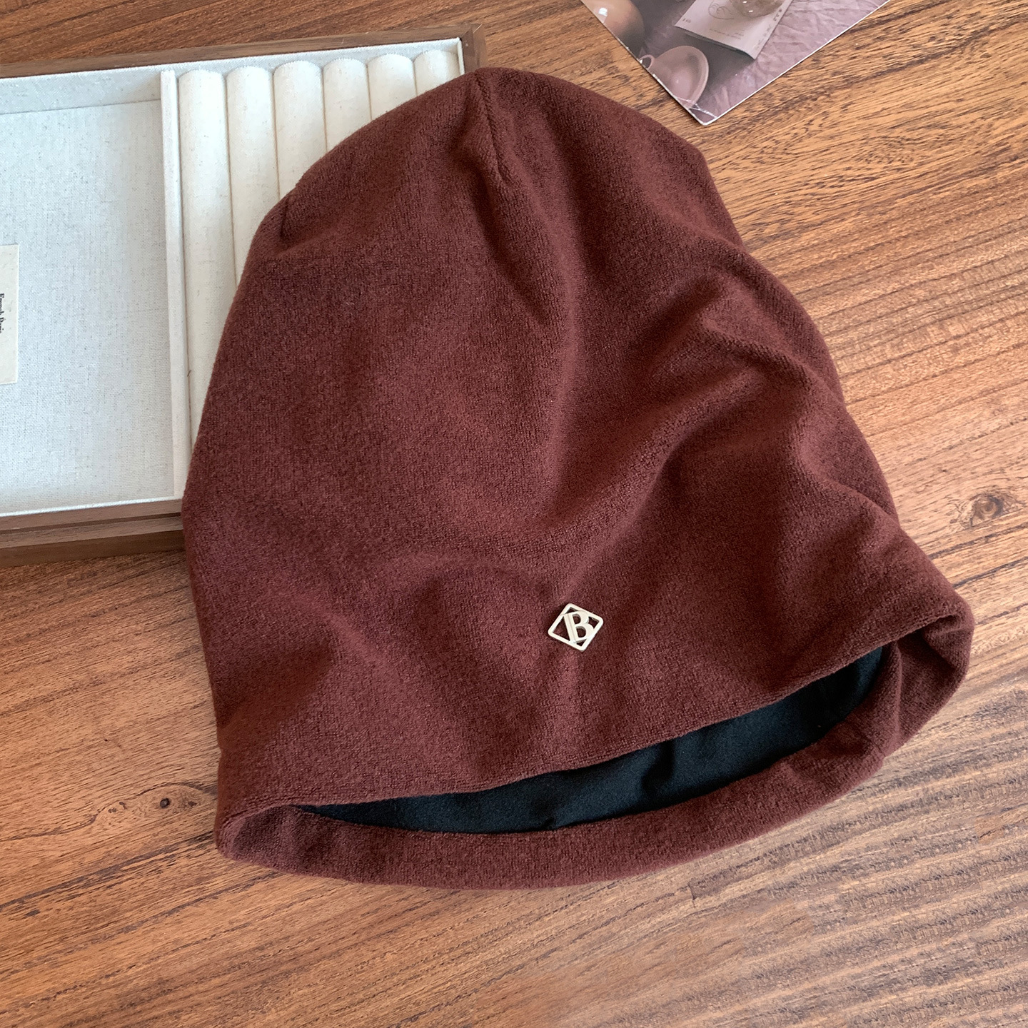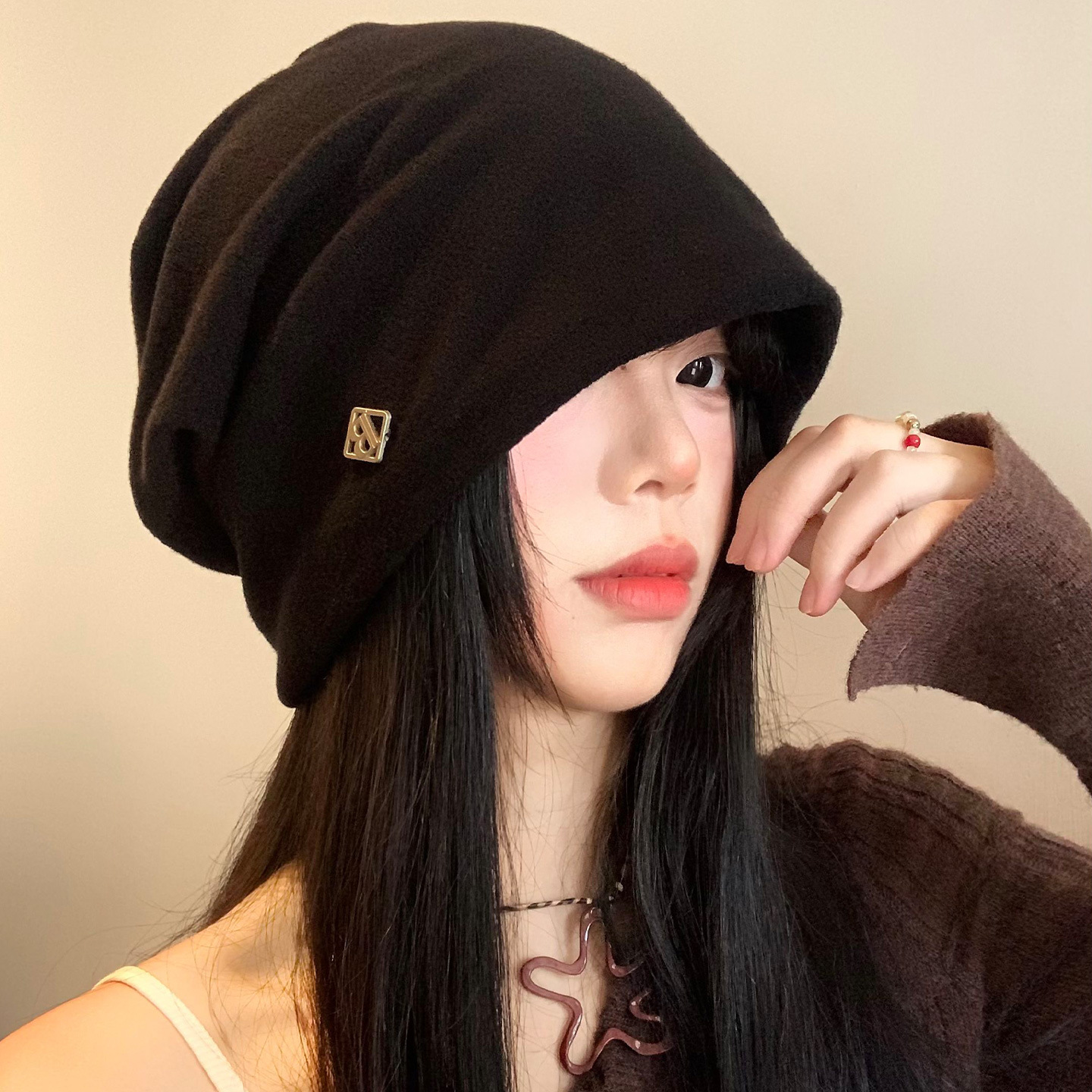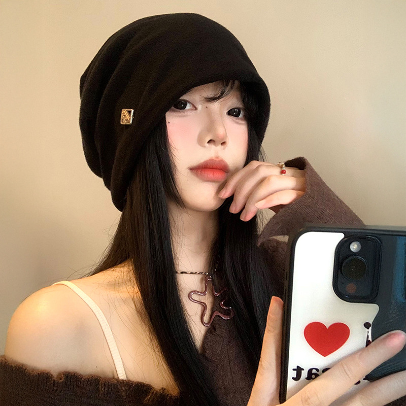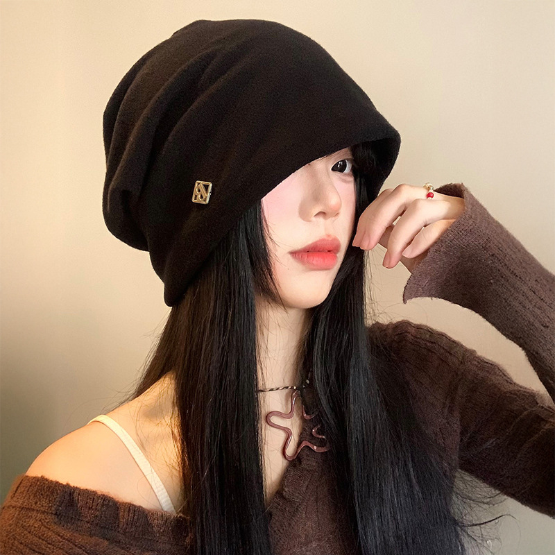 【秋冬季黑色包头堆堆帽子】金属小标慵懒风 高级感大头围显脸小冷帽 国庆出游