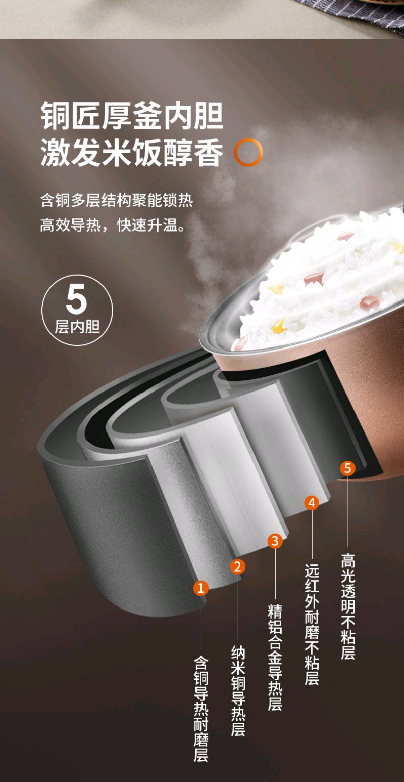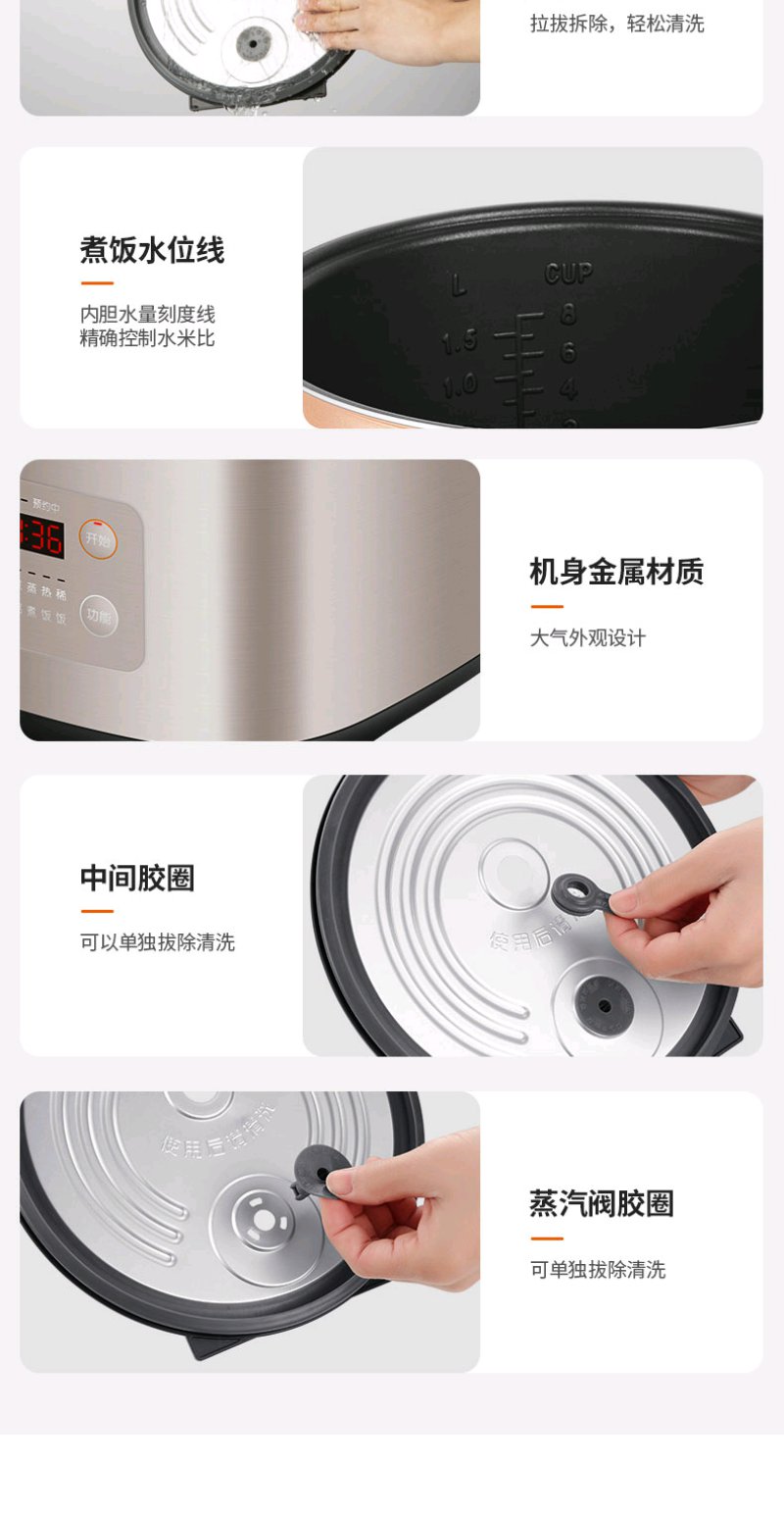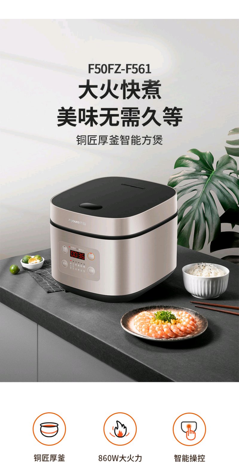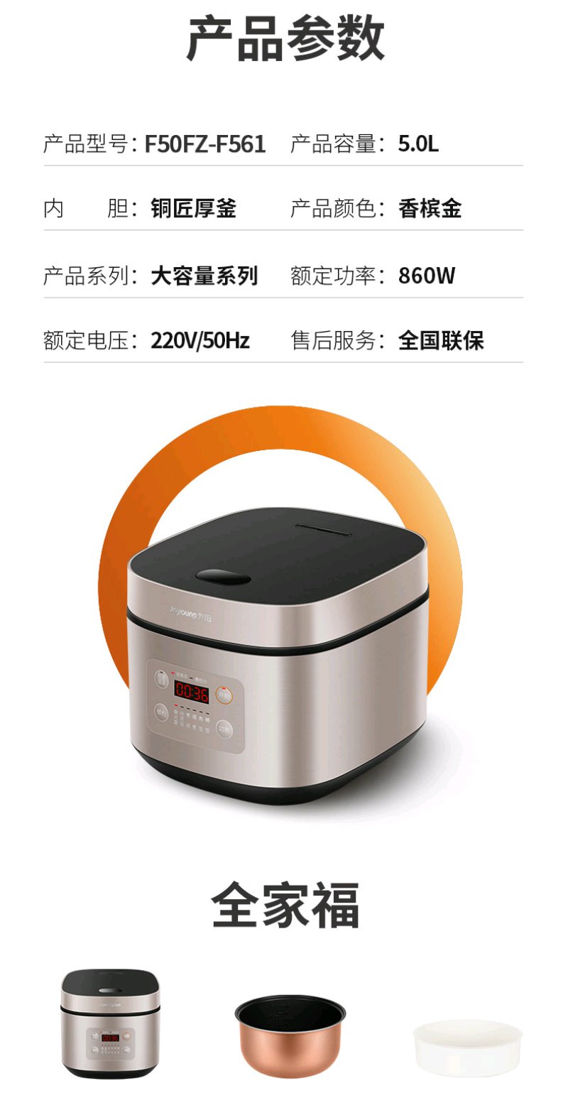 九阳 (Joyoung)电饭煲 电饭锅 智能预约 多功能 大功率 5L容量 F50FZ-F561