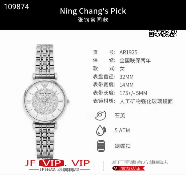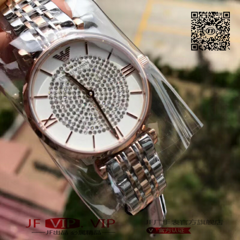 Armani 阿玛尼满天星女士手表型号AR1926间金、AR1926银色 ❗️表盘直径32mm 316精钢表带。阿玛尼满天星的钻采用进口施华洛世奇水晶钻,普钻的直径PP0/PP1国内无法切割,因为他没有钻石的硬度❗️矿物质玻璃镜面,蝴蝶双按扣,生活防水30米。保证正品!无佩戴支持退换!