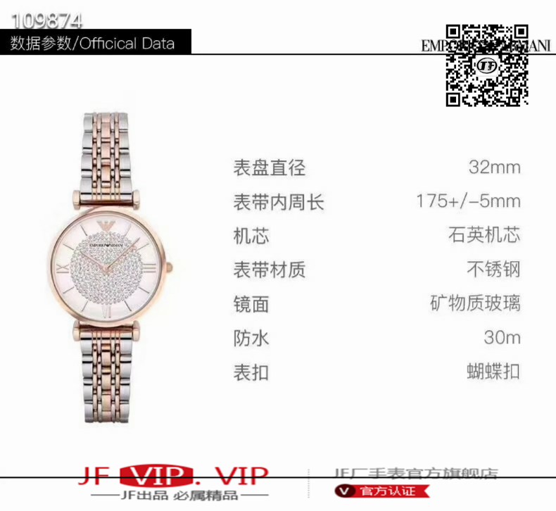 Armani 阿玛尼满天星女士手表型号AR1926间金、AR1926银色 ❗️表盘直径32mm 316精钢表带