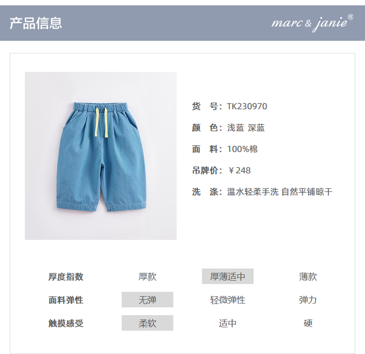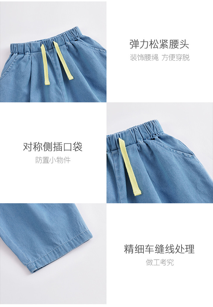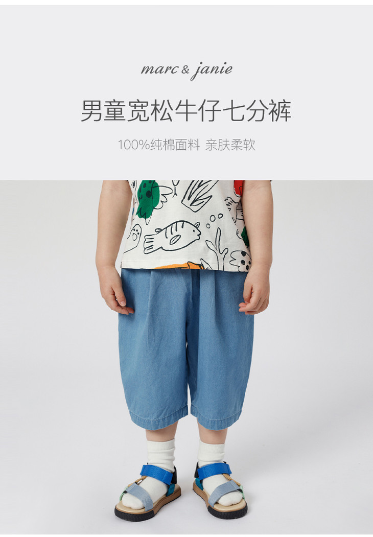 马克珍妮夏装新款 男童舒适全棉牛仔宽松七分裤230970