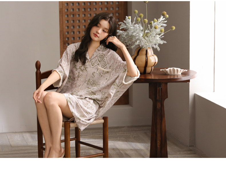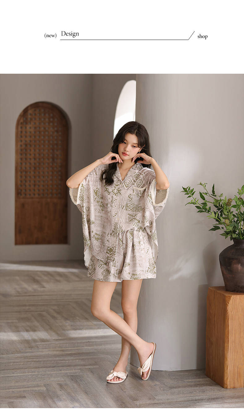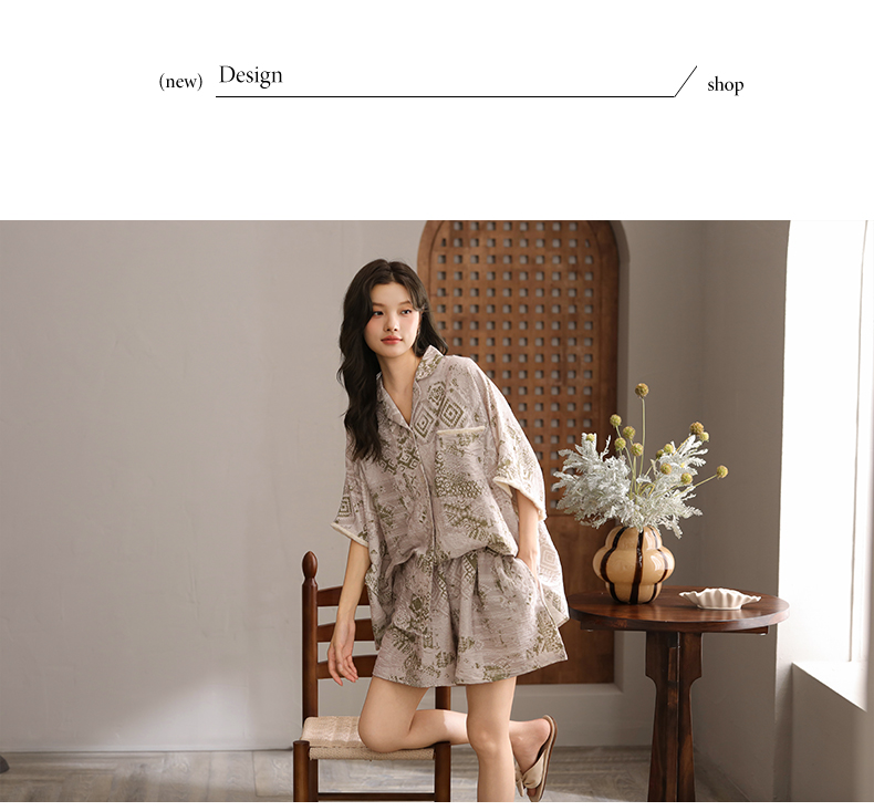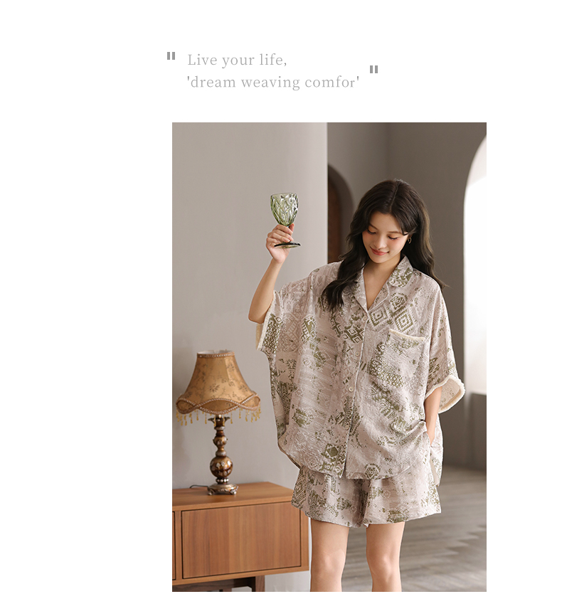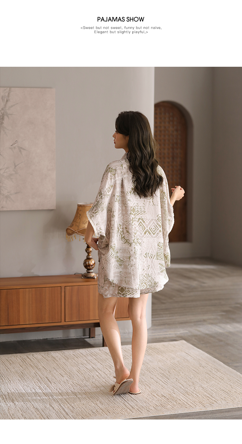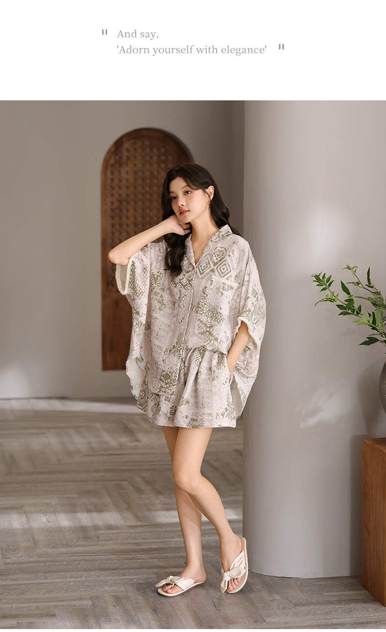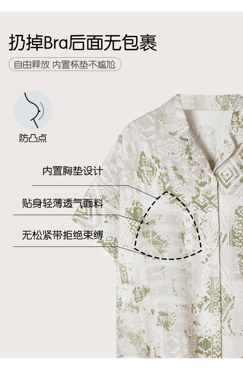 可人儿小众设计泡泡绵女士带胸垫睡衣夏季短袖可外出家居服三件套