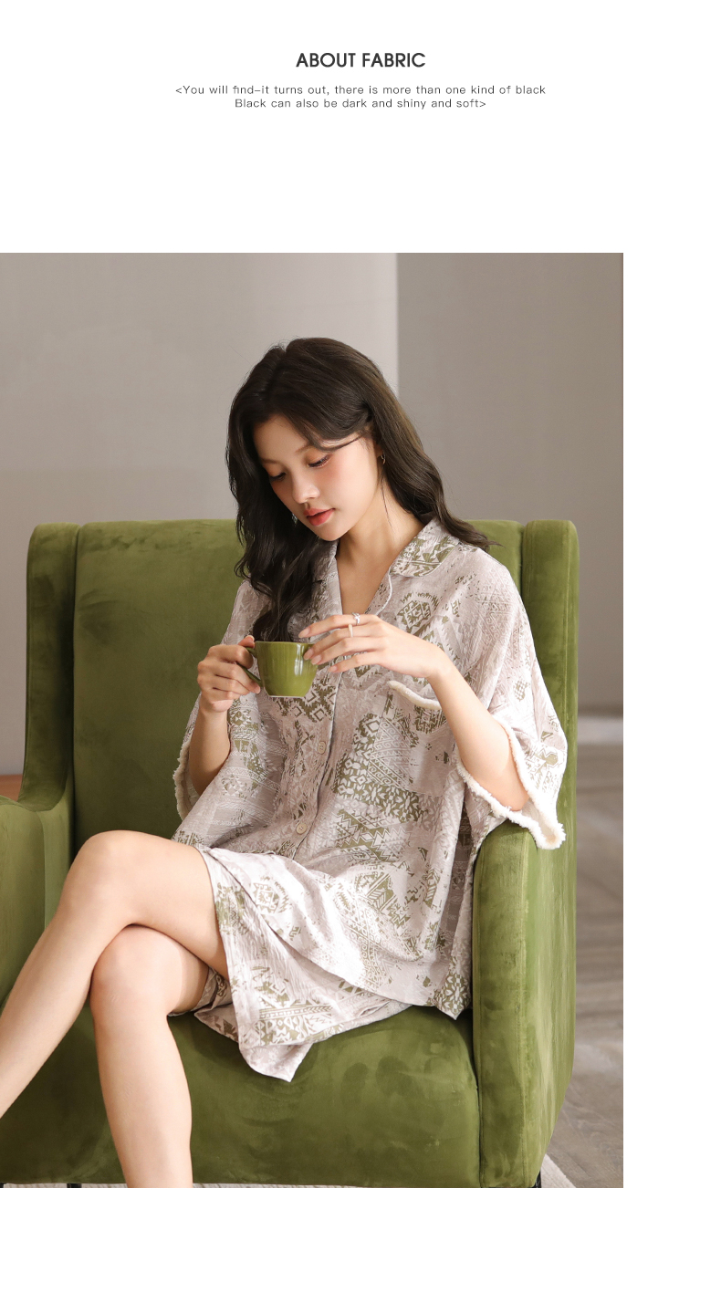 可人儿小众设计师新款奥力绵女士睡衣春秋长袖时尚可外出家居服