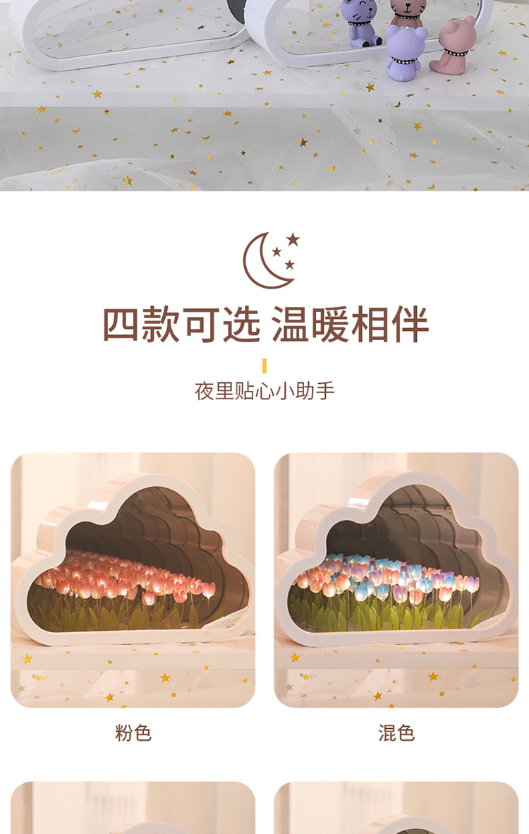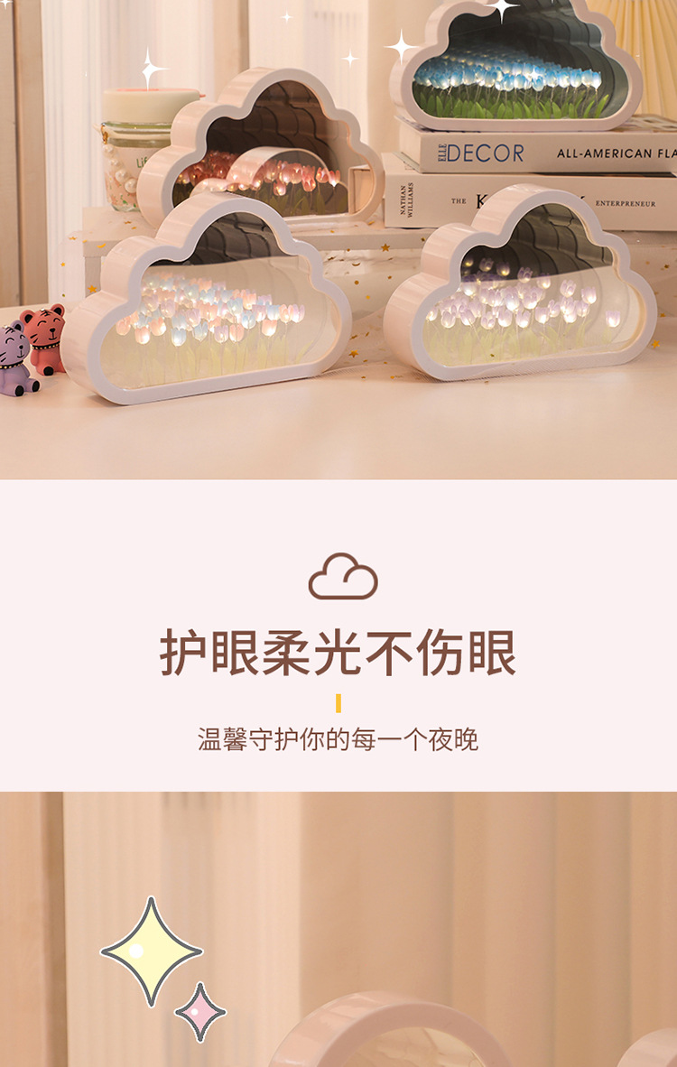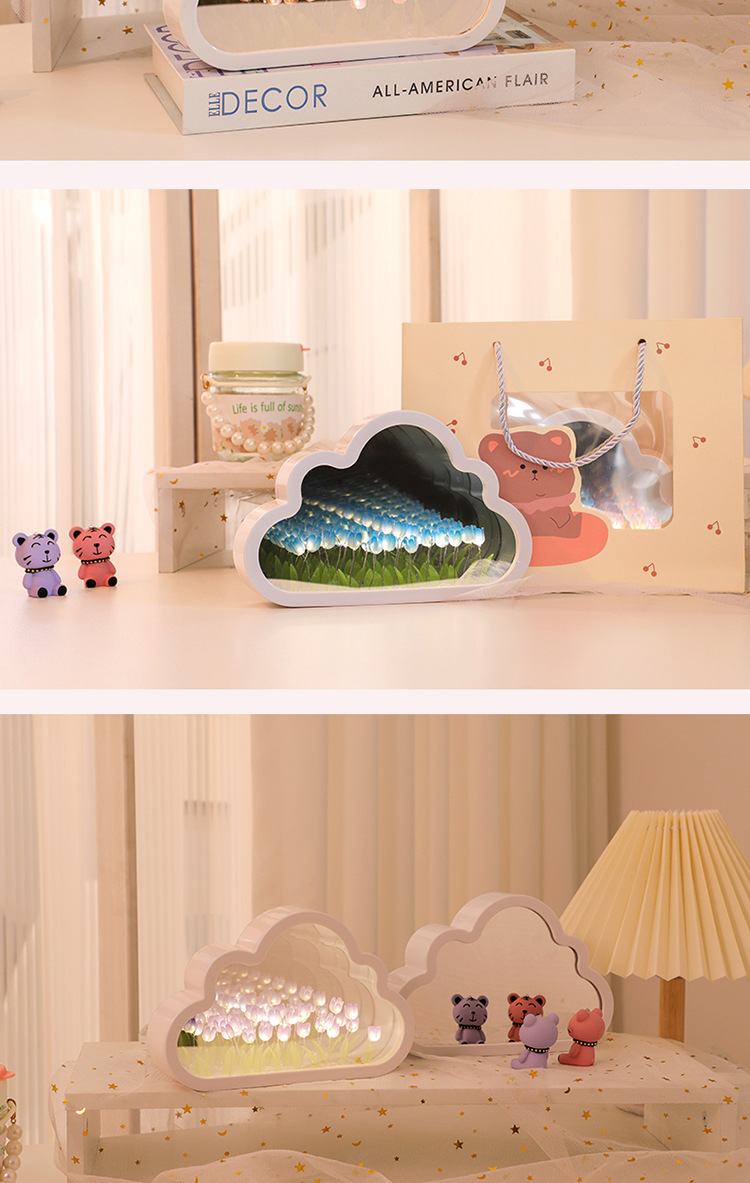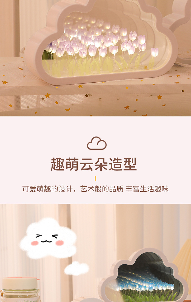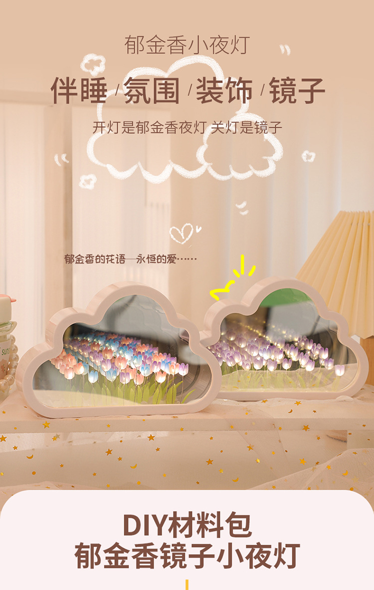 【云朵郁金香❗️DIY手工镜子】云朵郁金香小夜灯花海氛围灯桌面摆件七夕情人节礼物三八妇女节新年礼盒年货礼盒