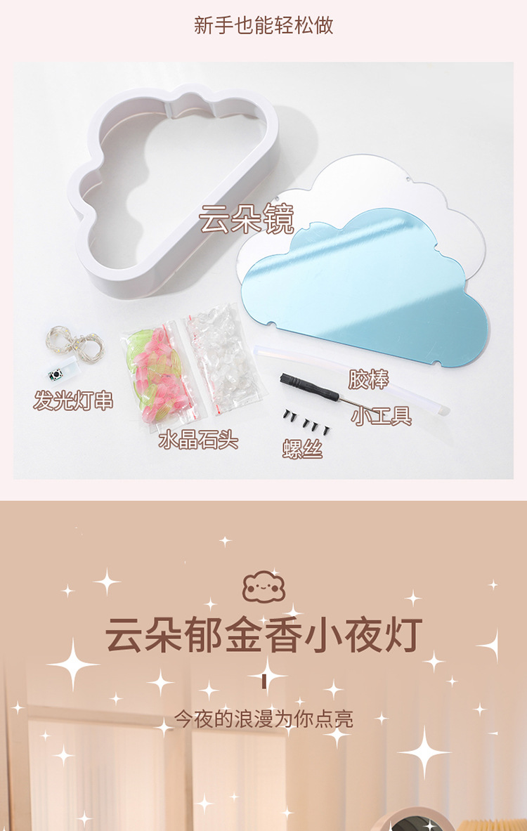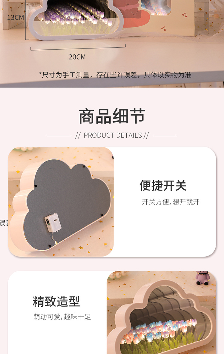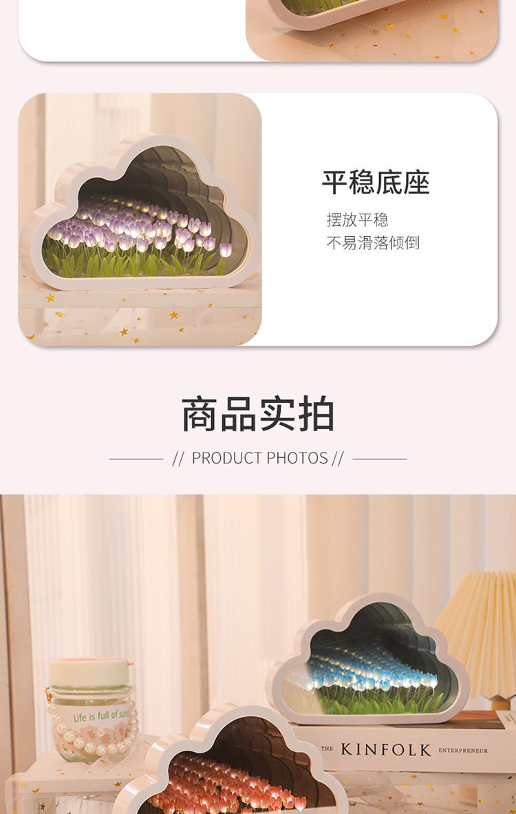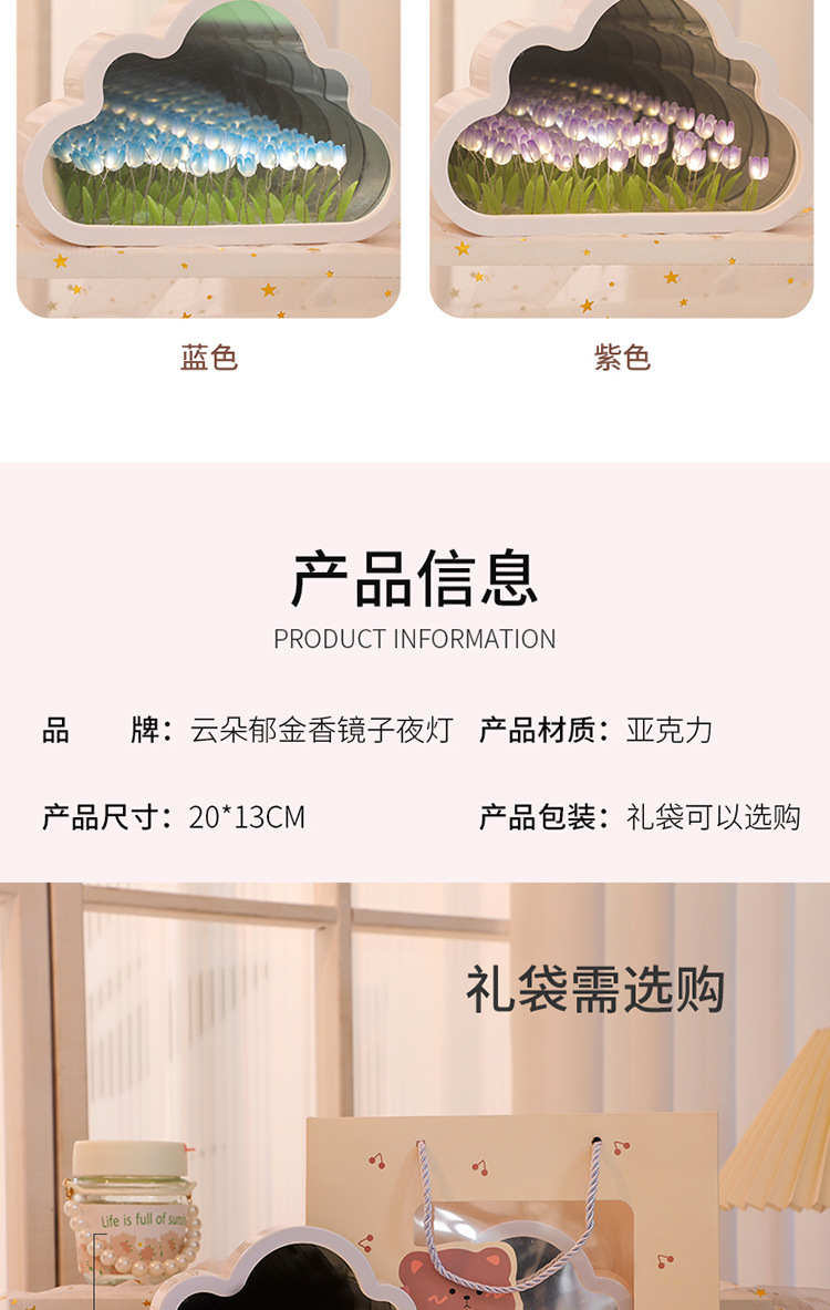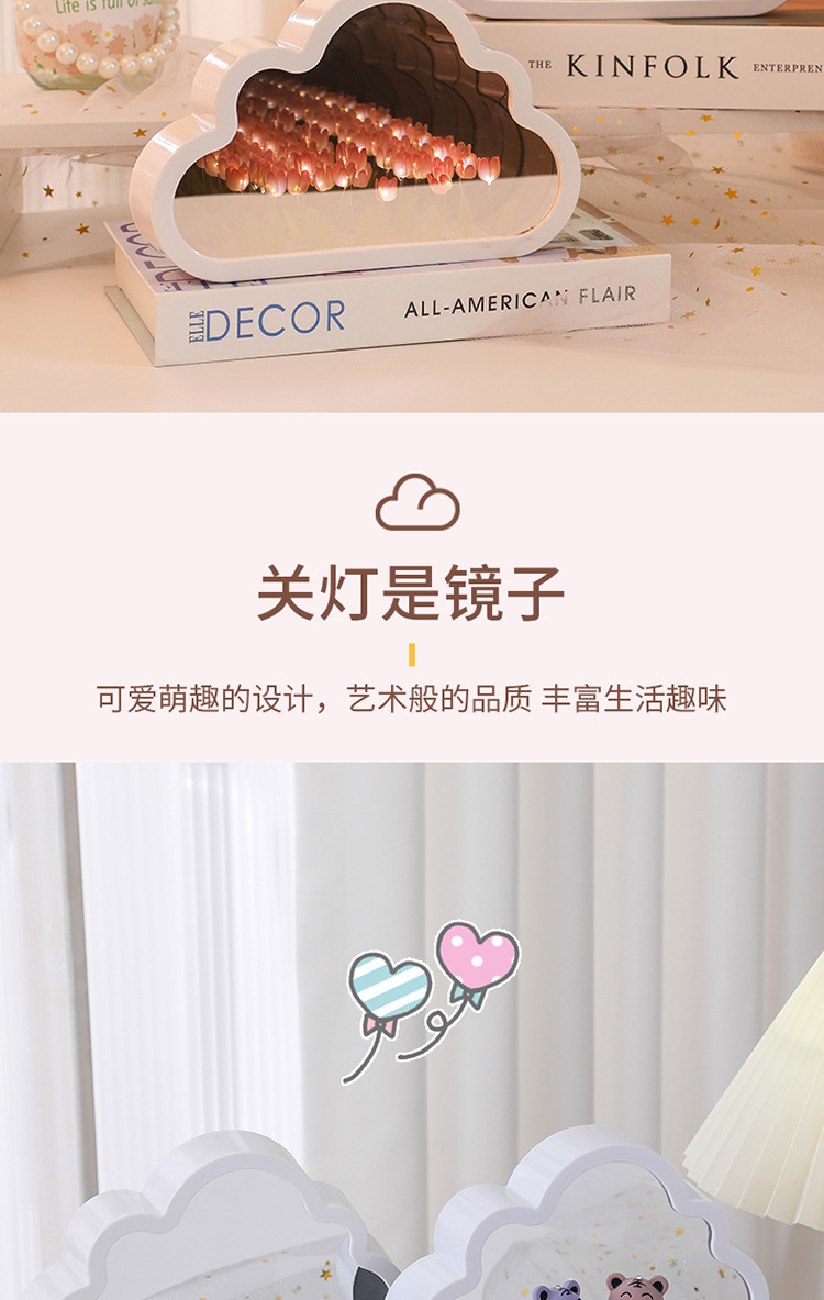 【云朵郁金香❗️DIY手工镜子】云朵郁金香小夜灯花海氛围灯桌面摆件七夕情人节礼物三八妇女节新年礼盒年货礼盒