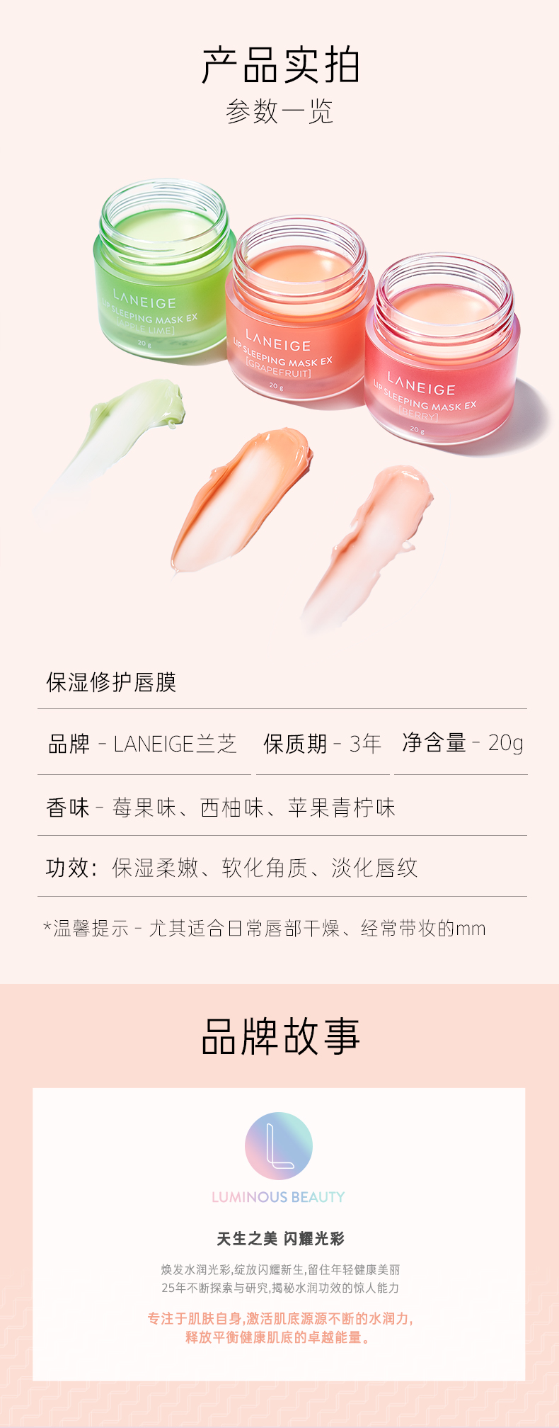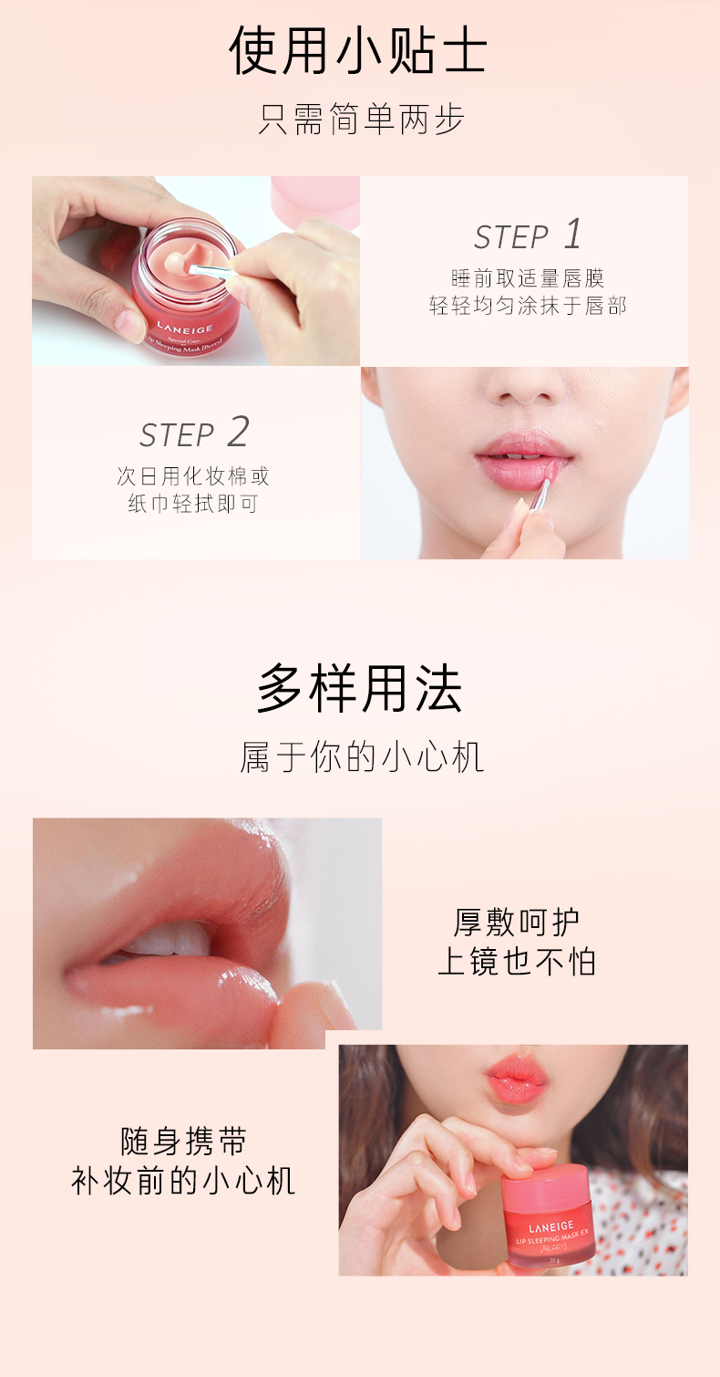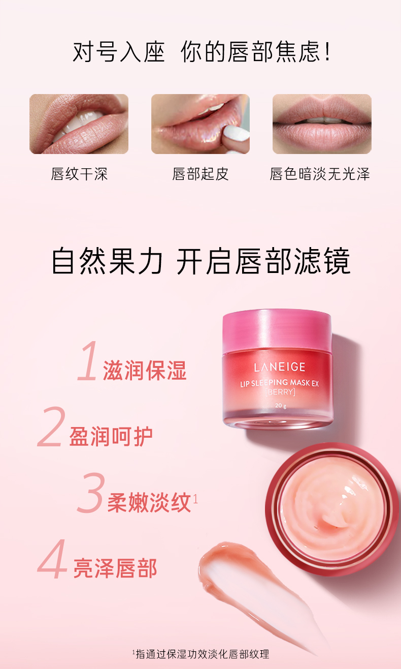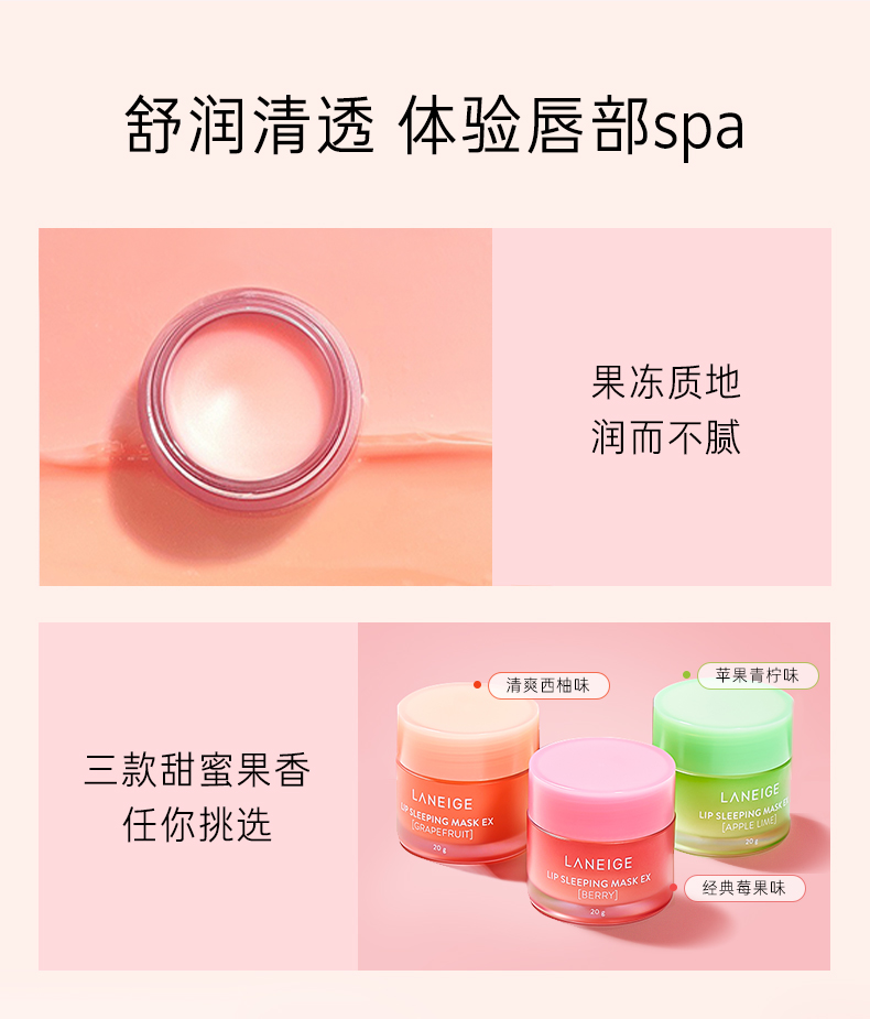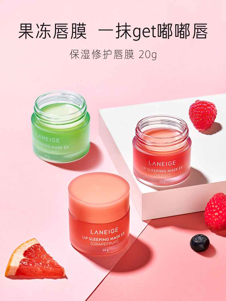 【中欧班列精选】韩国兰芝夜间修护唇膜网红保湿滋润补水果冻唇膜莓果/西柚/苹果柠檬20克 YLPY