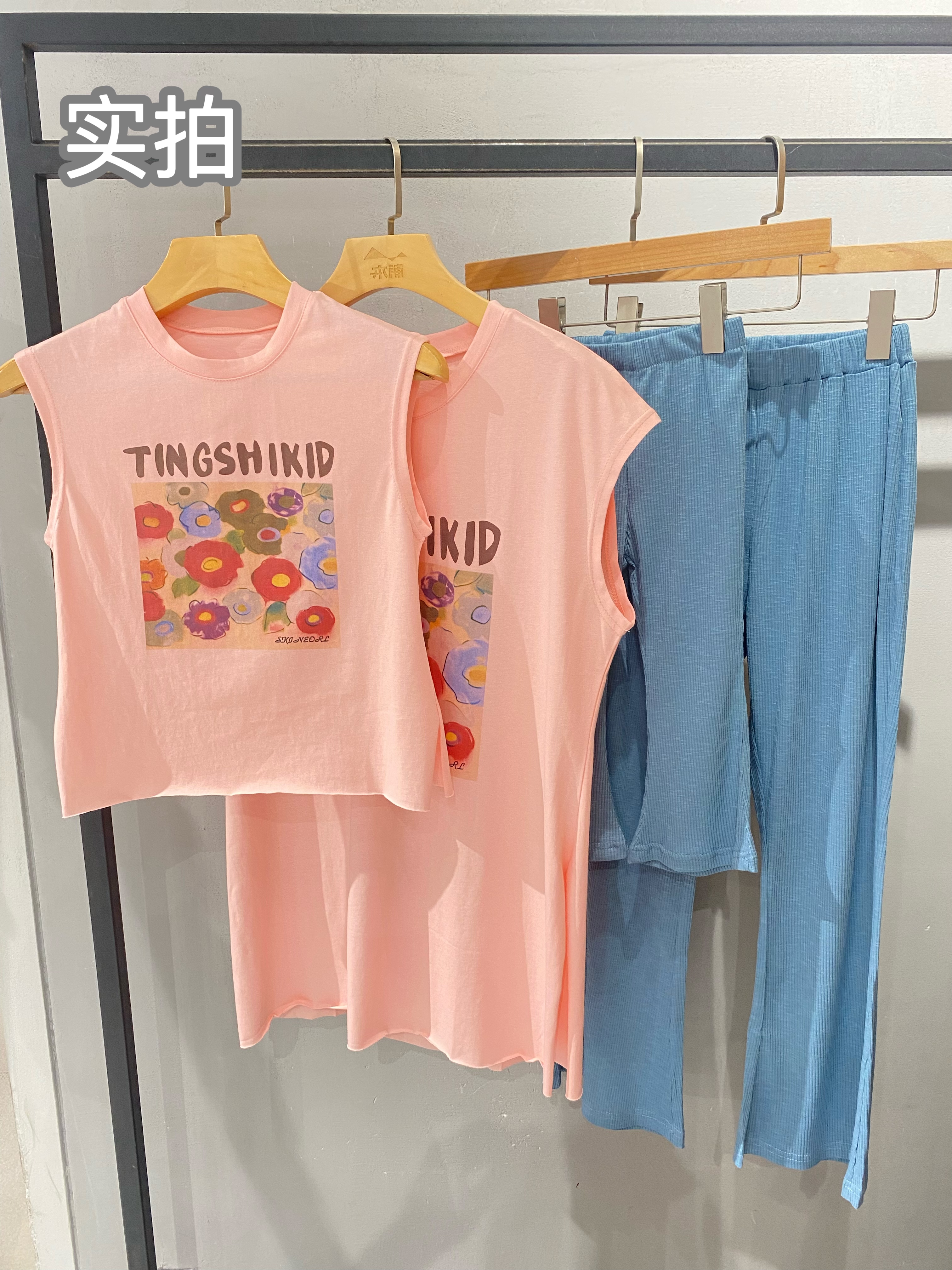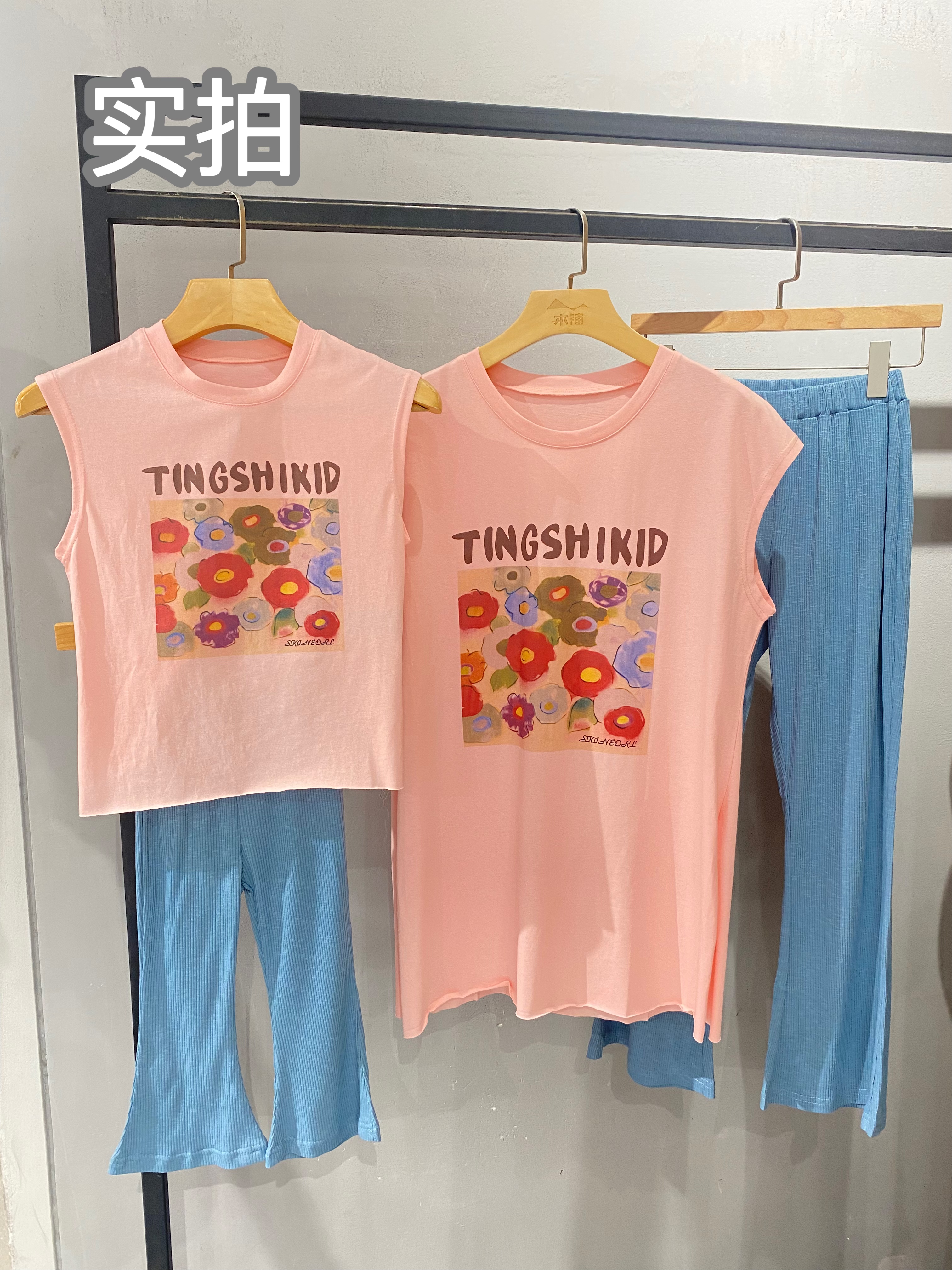 【YW】无忧购“一起玩亲子装”韩系ins油画背心上衣+微喇休闲裤套装L24X107(截单后7天发货)25年清仓捡漏