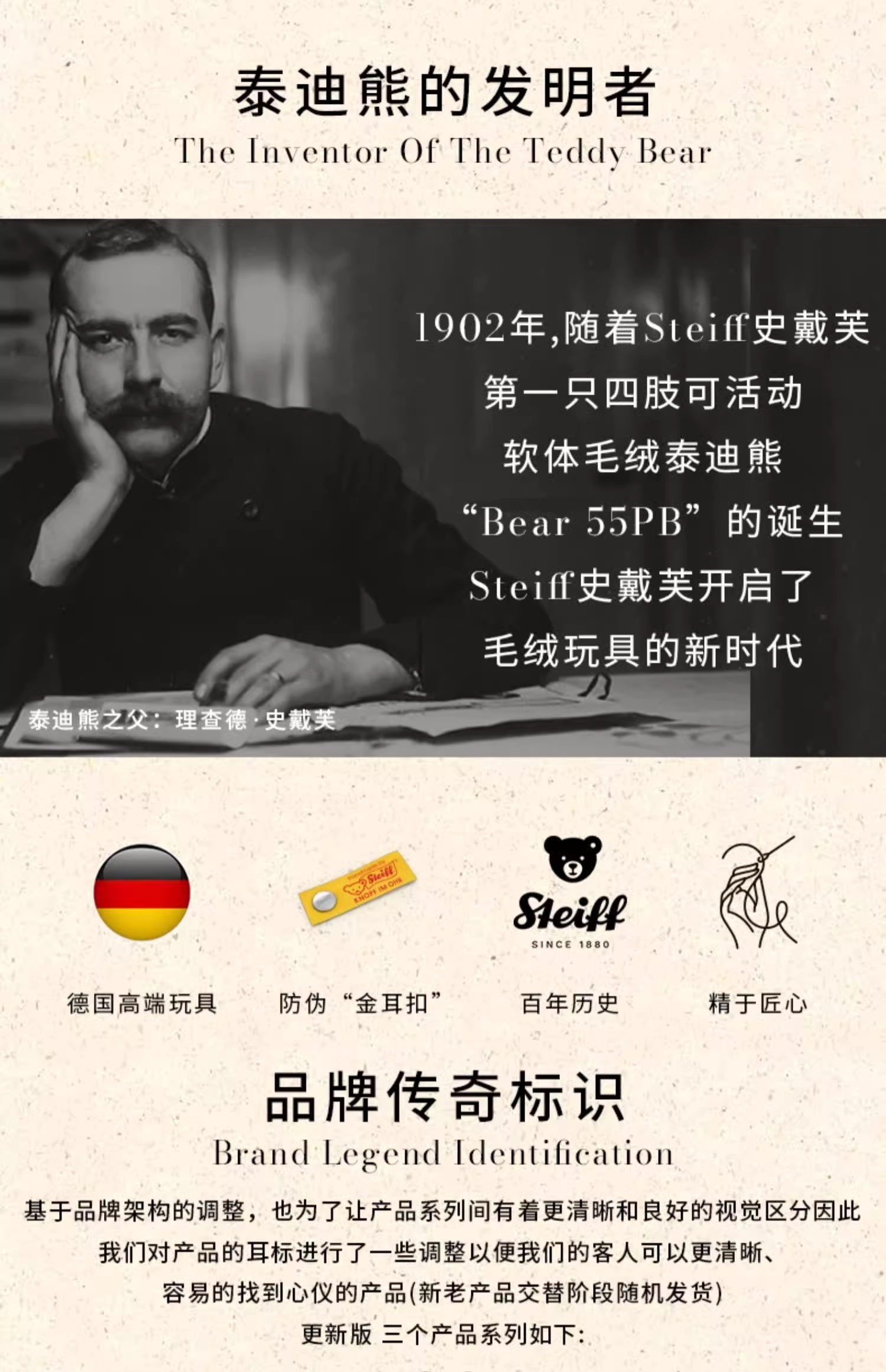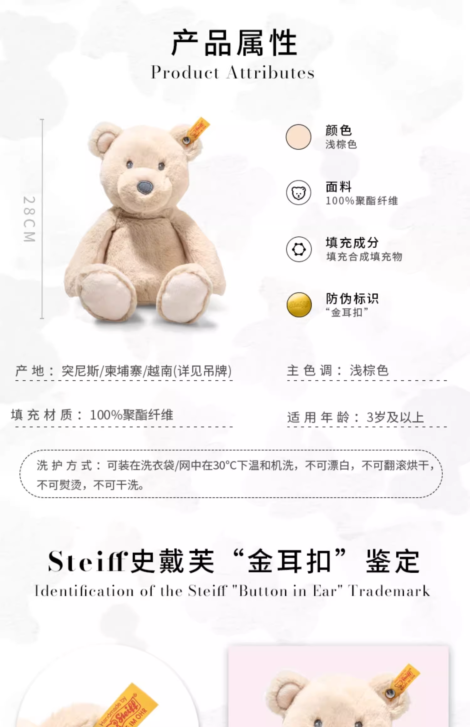 Steiff 史戴芙好朋友系列-宝宝安抚浅棕色泰迪熊贝兹(28厘米STEC708008