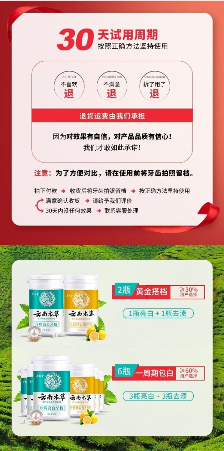 云南本草洗牙粉洁牙粉亮白牙齿美白神器去黄牙口臭牙结石牙垢牙渍