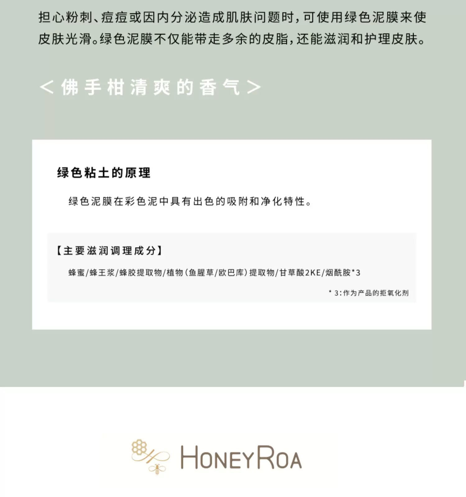 日本 HONEY ROA 天然蜂蜜粘土涂抹面膜 240g