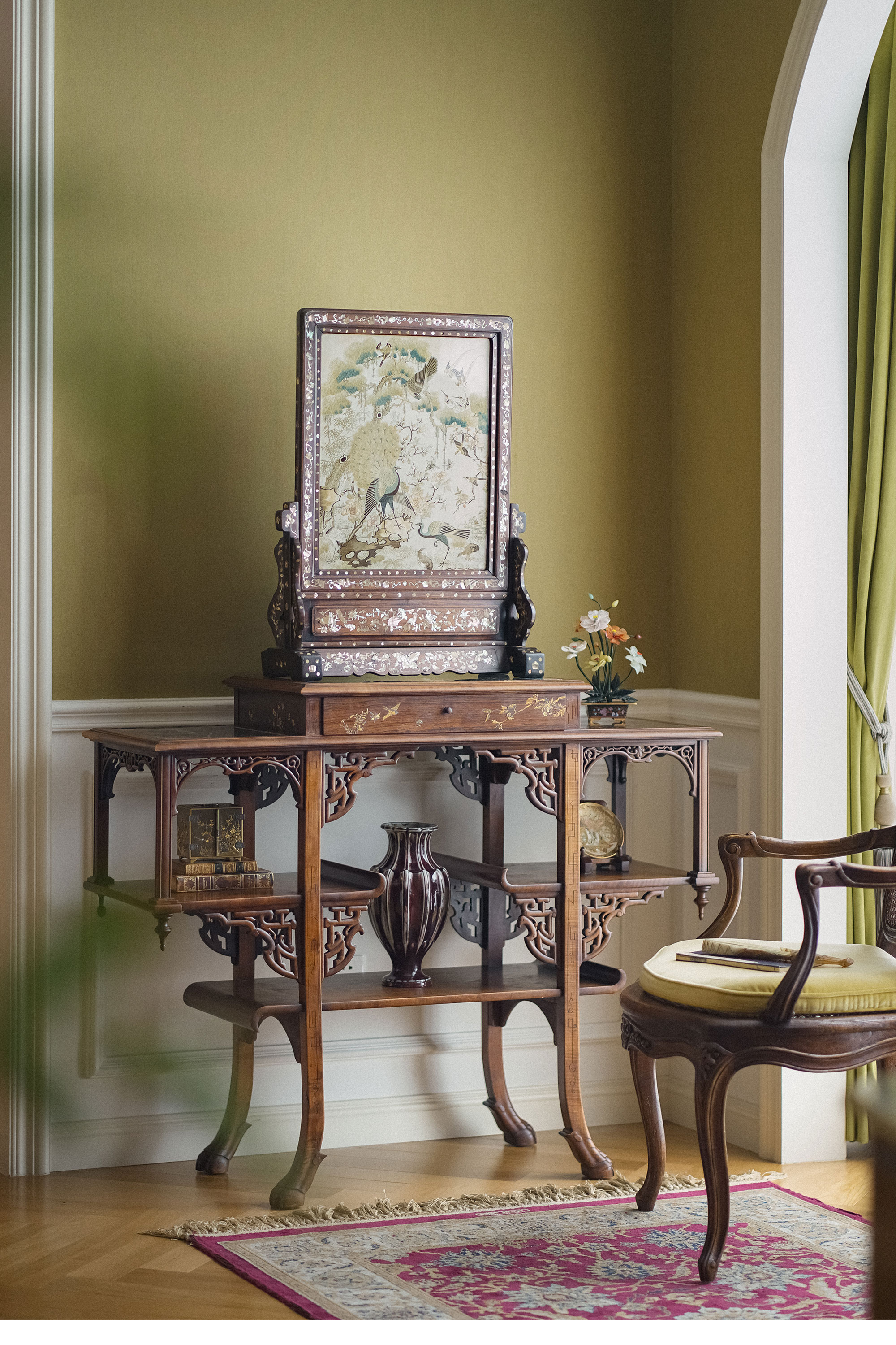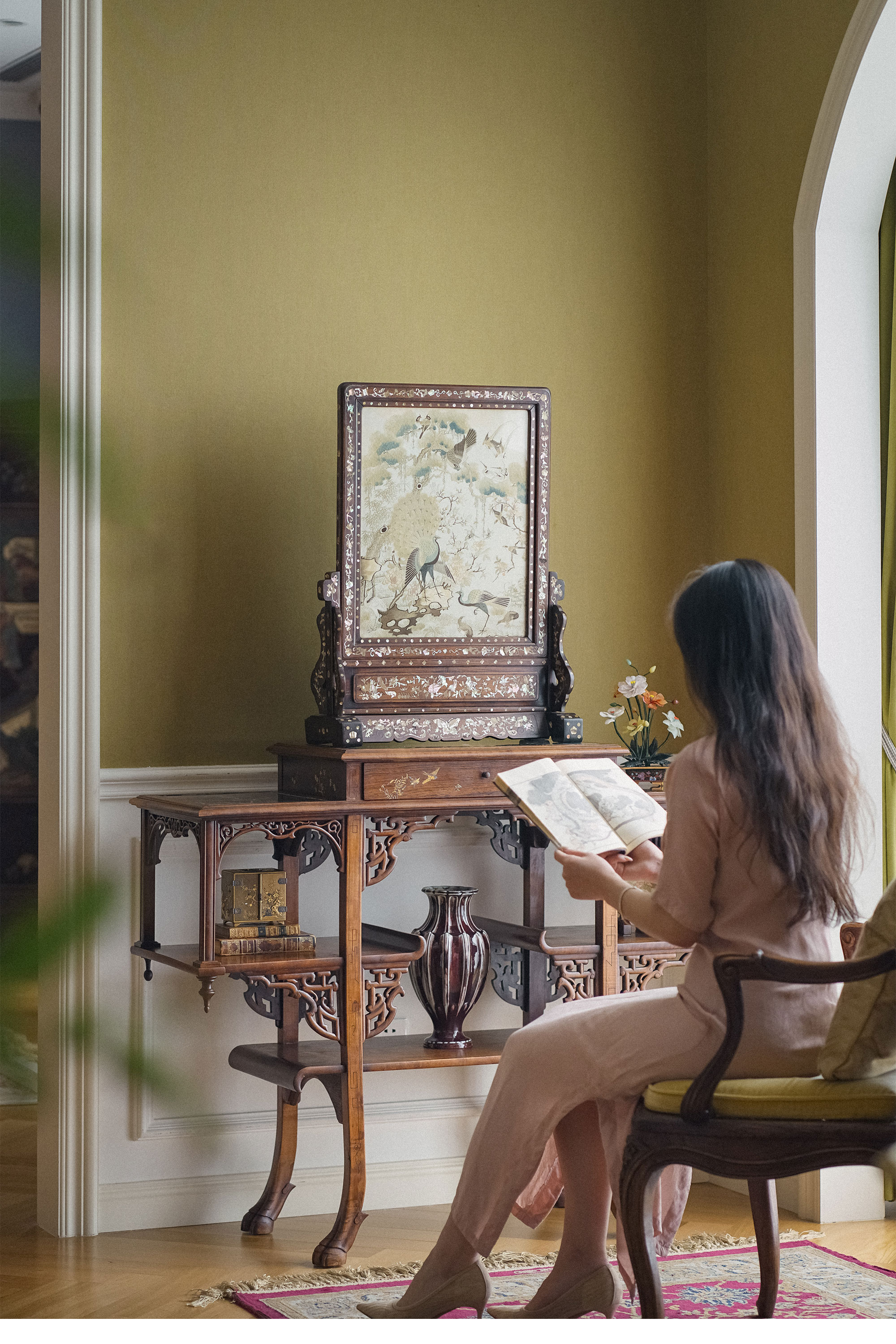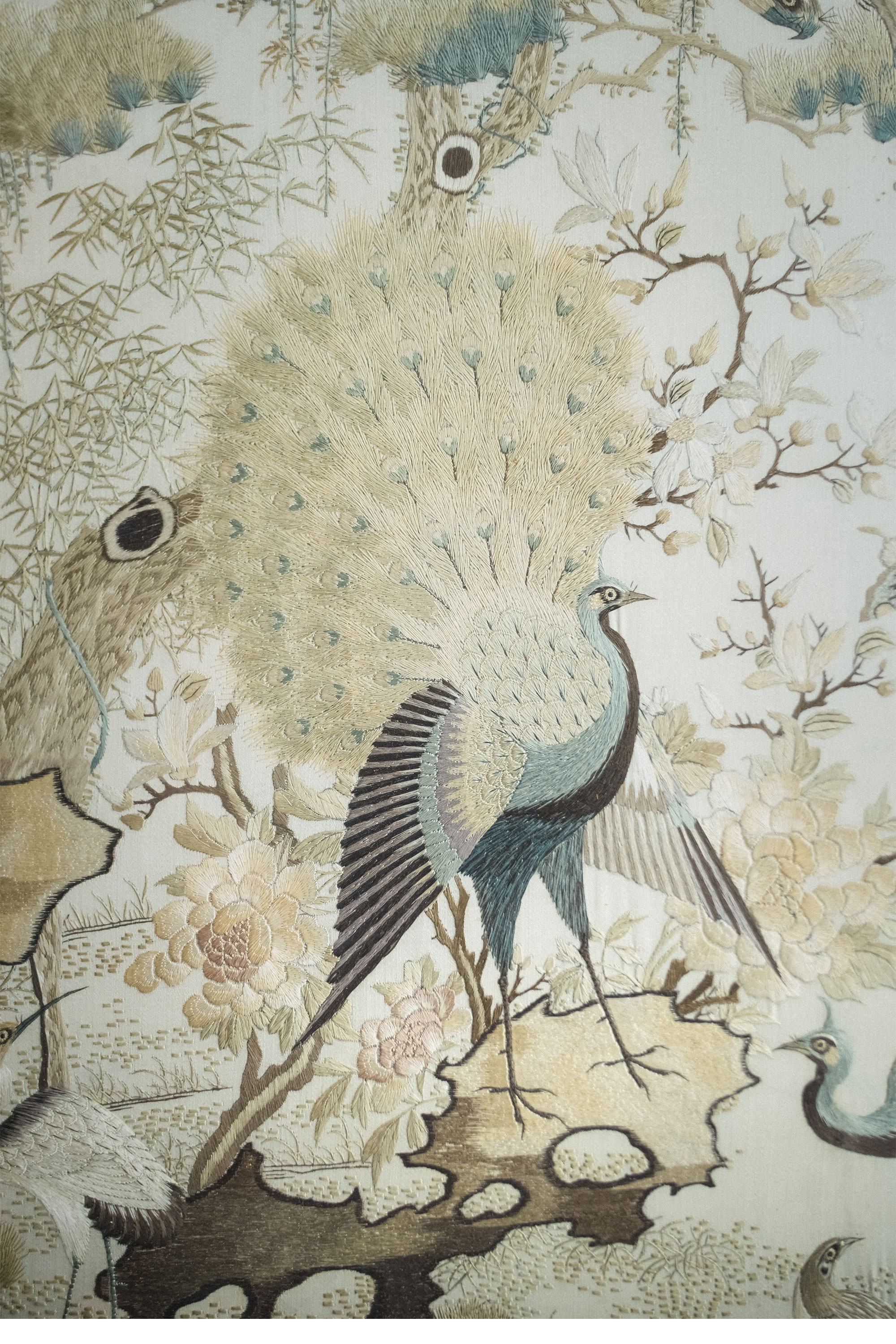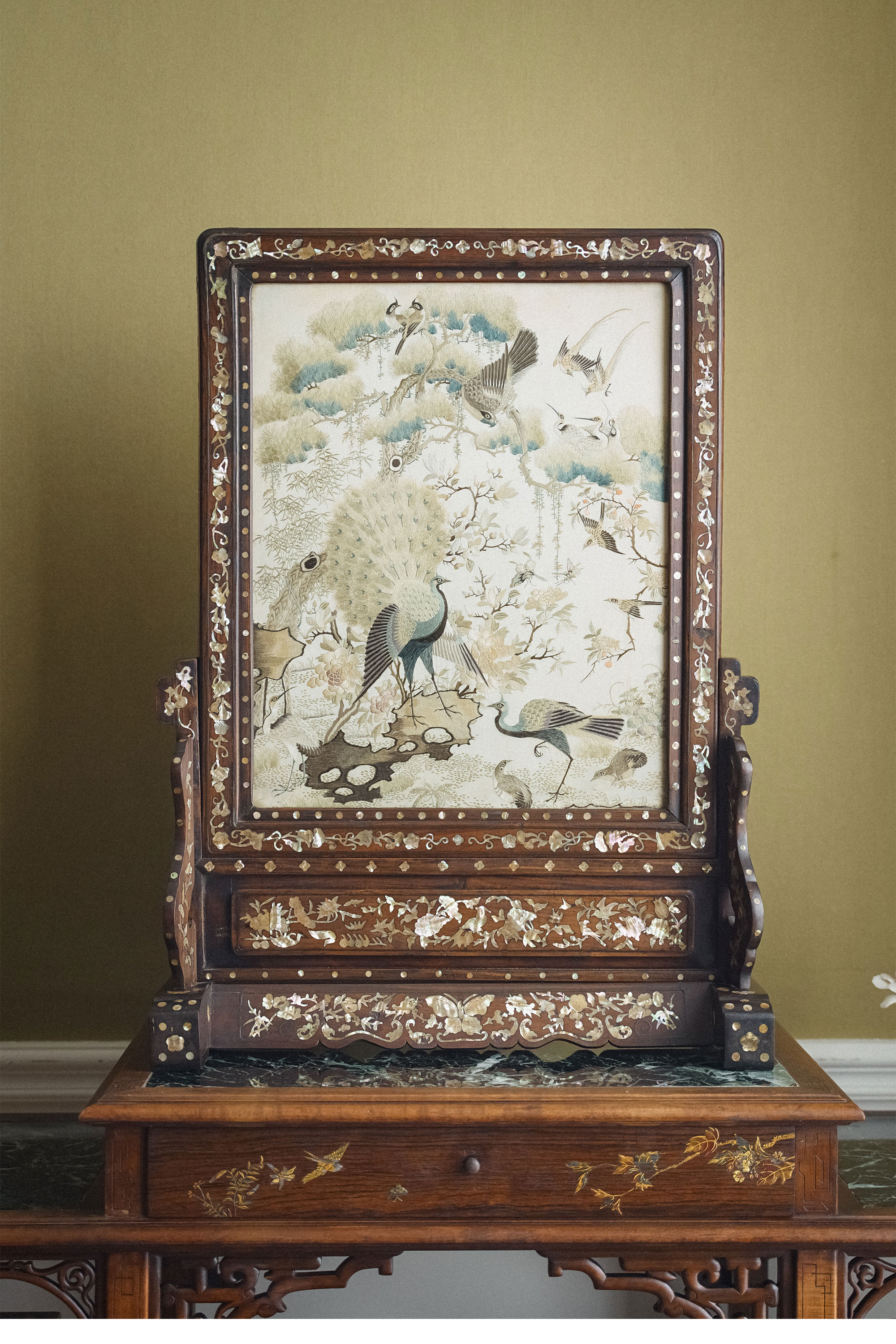 1900年代清末出品木框螺钿镶嵌「屏开富贵」主题粤绣插屏