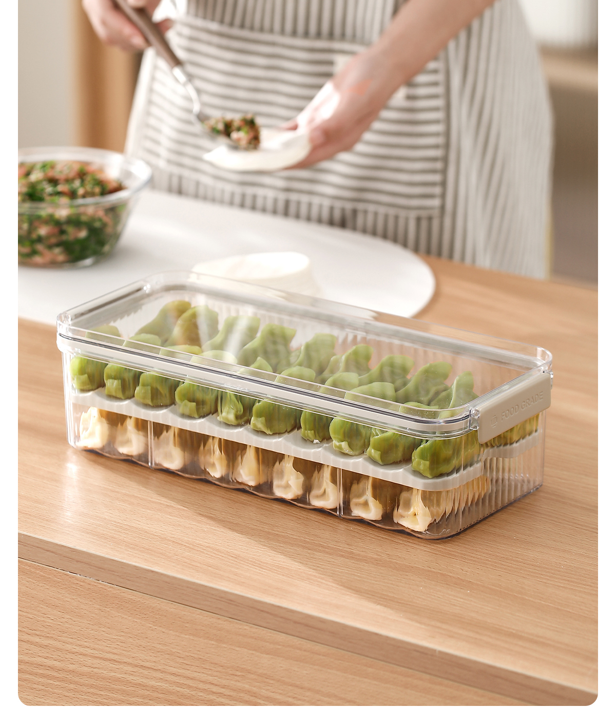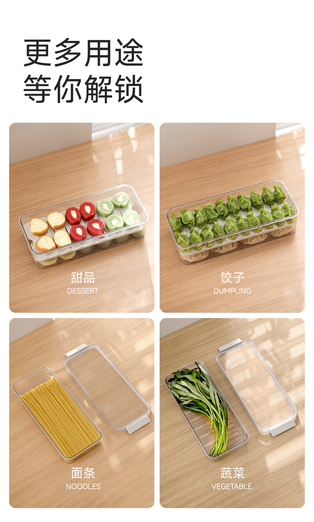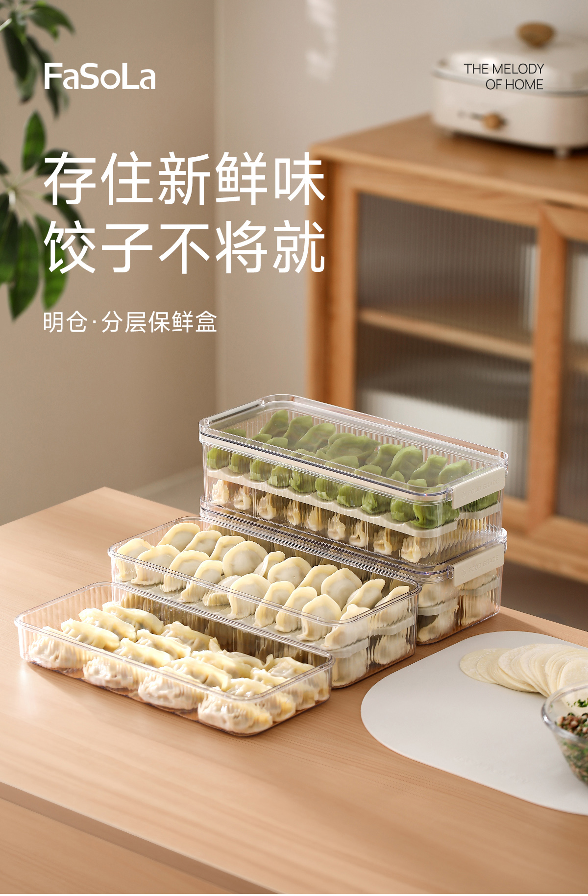 FaSoLa冰箱收纳盒厨房用密封透明冷冻蔬菜水果饺子大容量储物分层保鲜盒