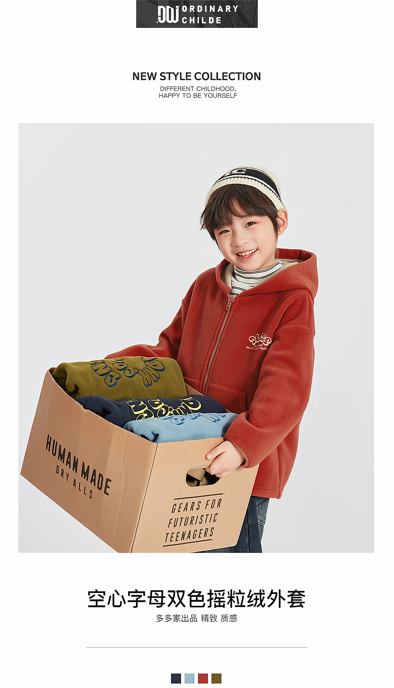 【团购价69.9-79.9】多多家男童摇粒绒外套2024新款秋冬款儿童中大童字母绣花冬装上衣9899