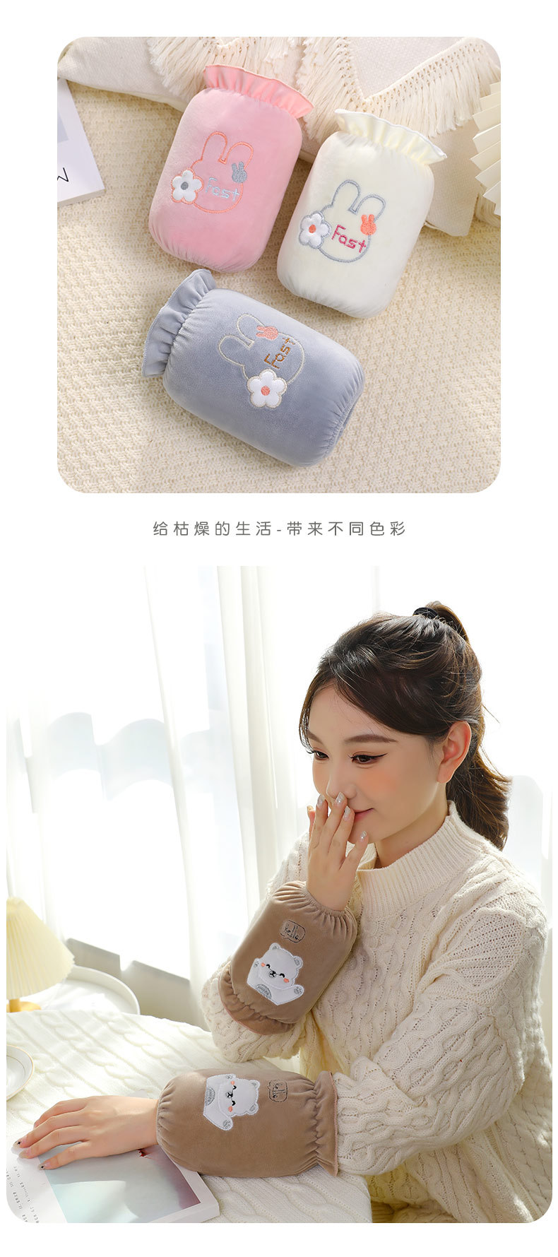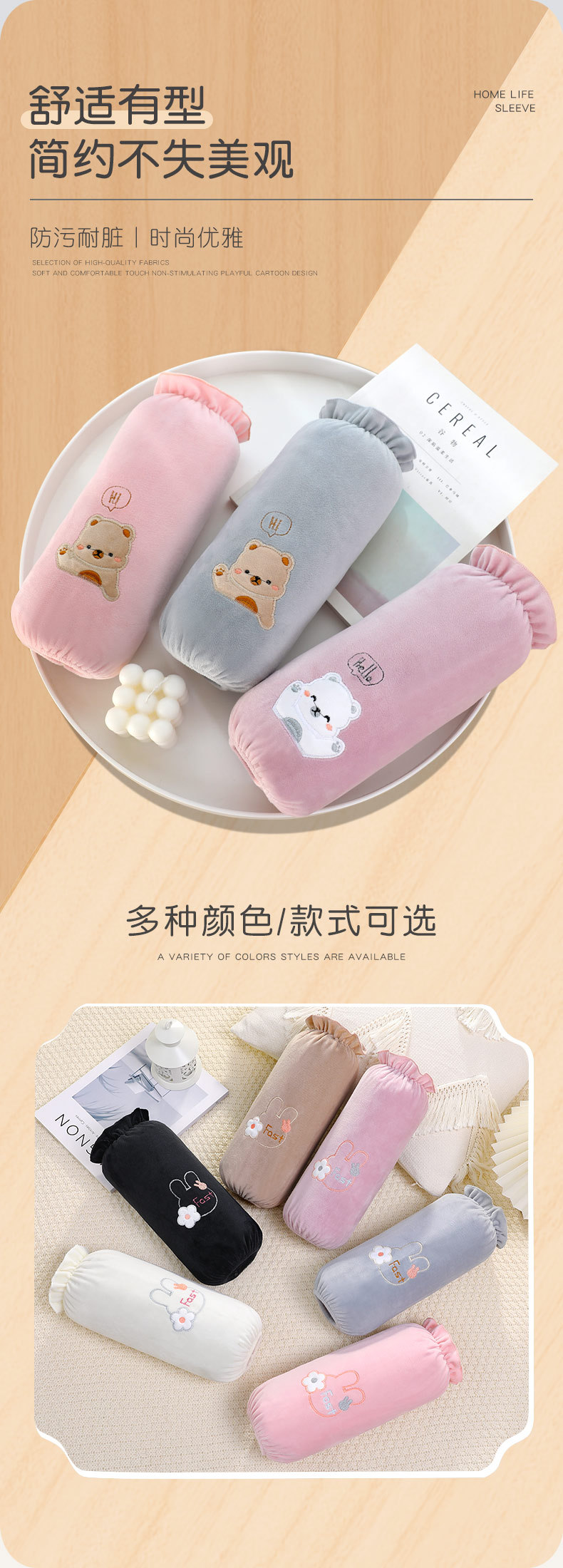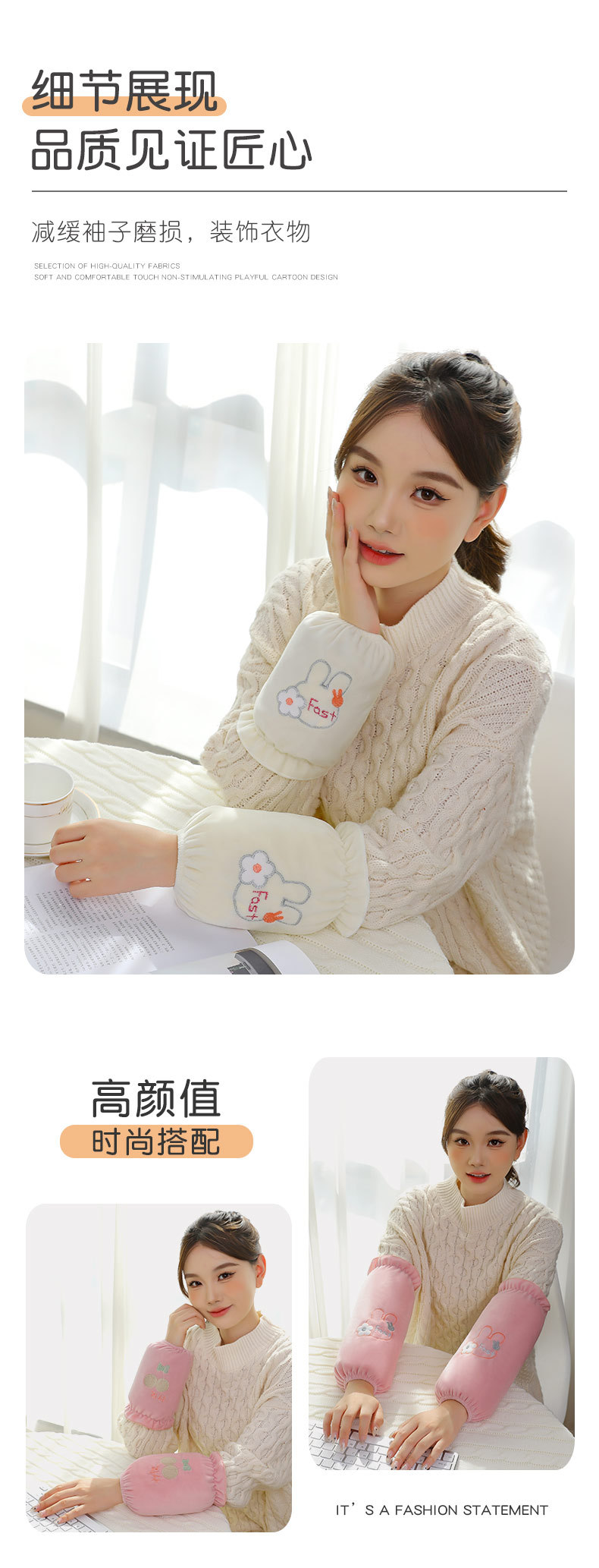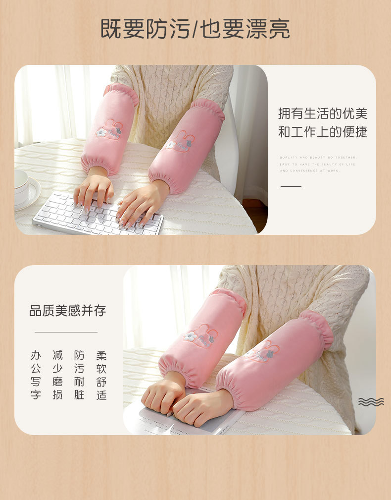 「9.9元包邮!数色可选」秋冬新款袖套女学生可爱绣花套袖长款办公女士袖头卡通毛绒护袖配饰