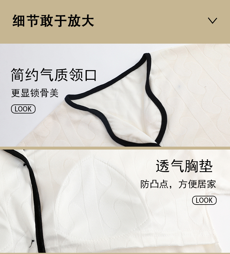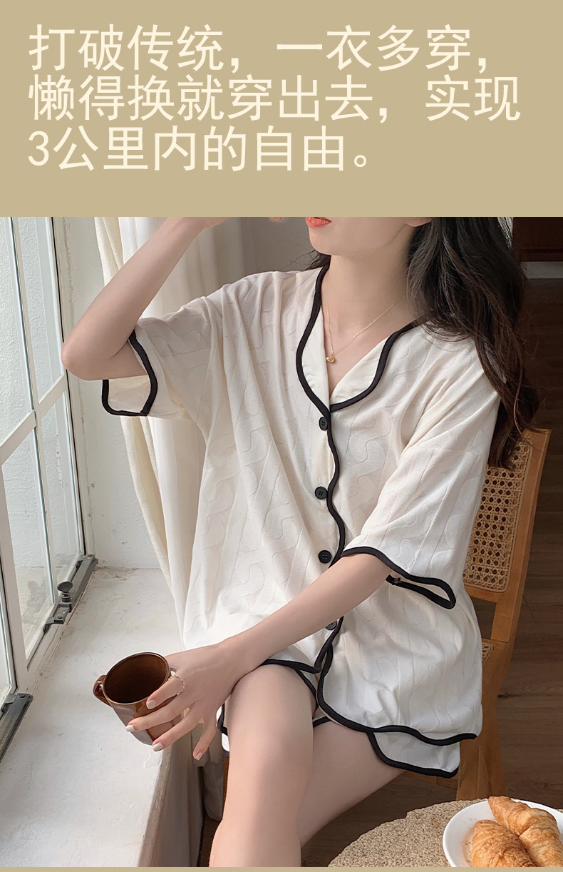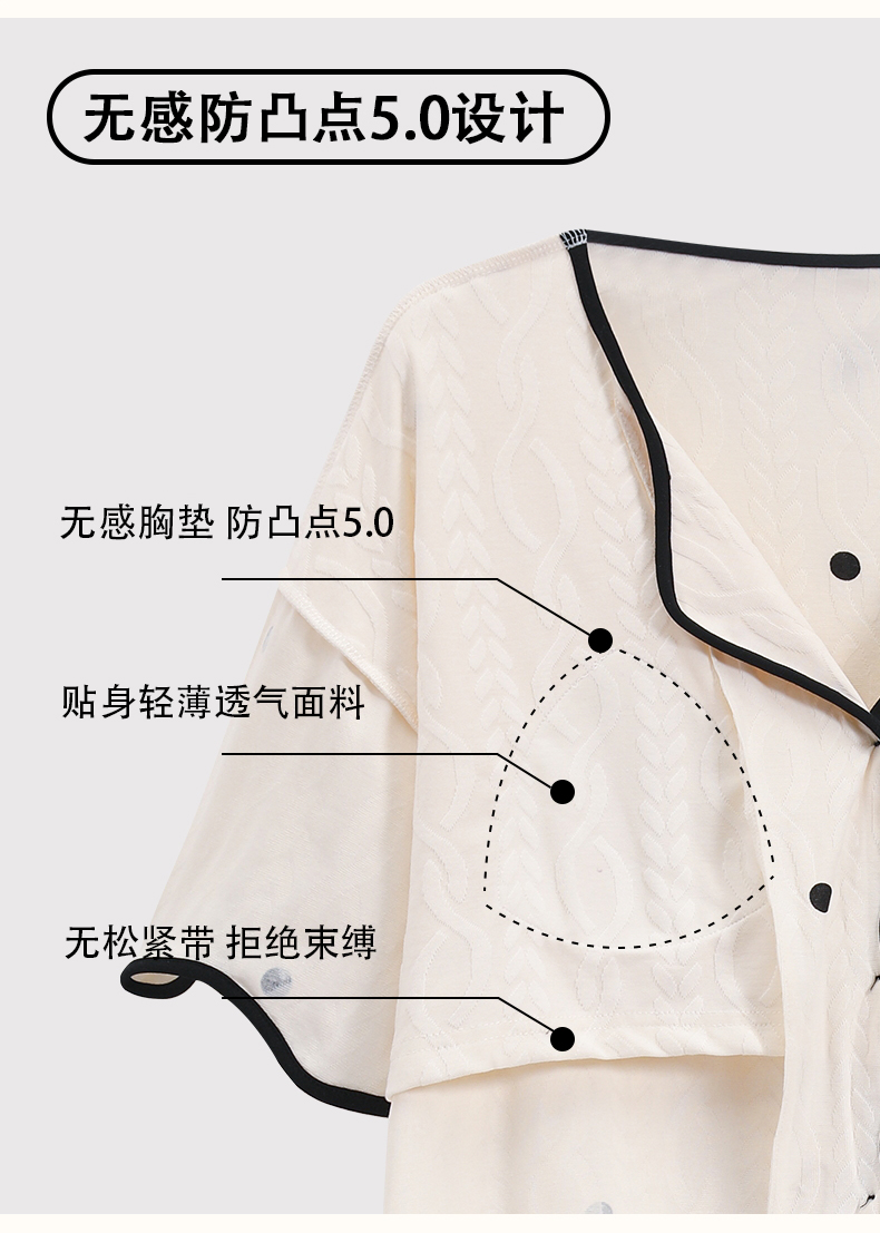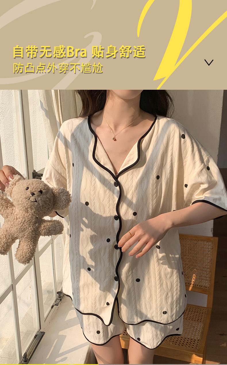【肌肤的本能选择】包边开衫短袖家居服套装 自带无感Bra 贴身舒适 自然与科技结合的柔软面料 释放睡前肌肤压力