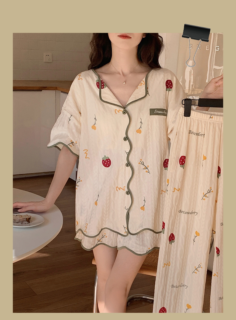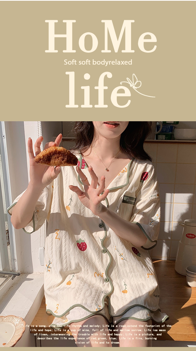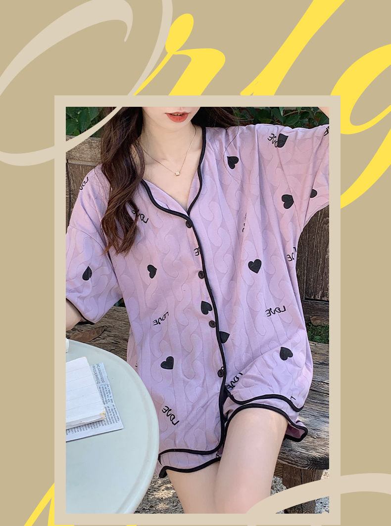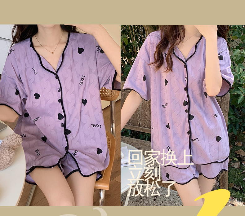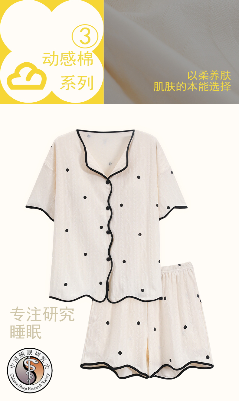 【肌肤的本能选择】包边开衫短袖家居服套装 自带无感Bra 贴身舒适 自然与科技结合的柔软面料 释放睡前肌肤压力