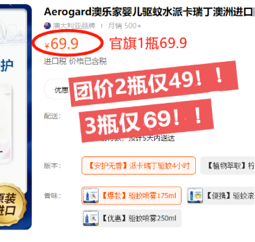 【多妈团购aerogard驱蚊水2瓶到手49.9】再不怕蚊虫咬了,《爸爸去哪儿》同款驱蚊水,温和不刺激,防蚊防敏,无色、不油腻,不含芳香剂-金克丝