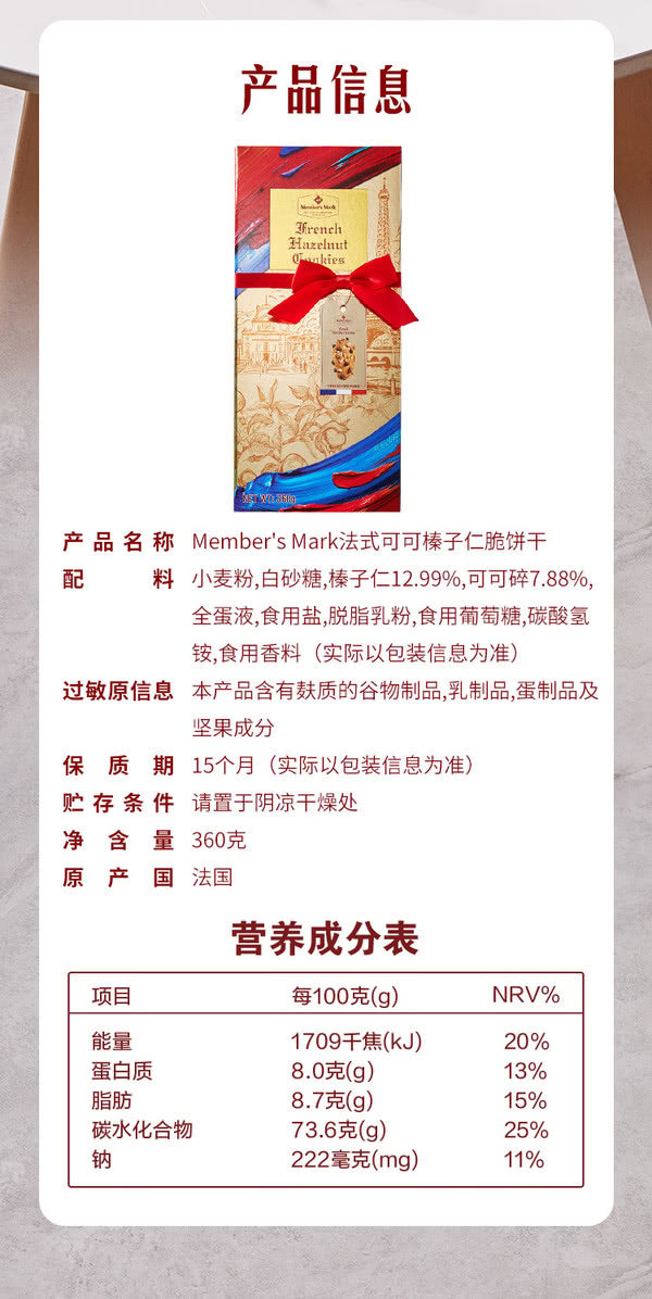 MM 法式可可榛子仁饼干360g