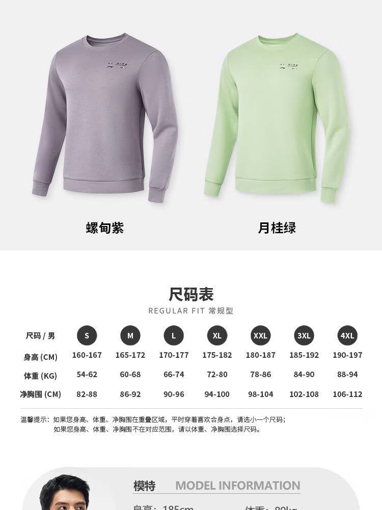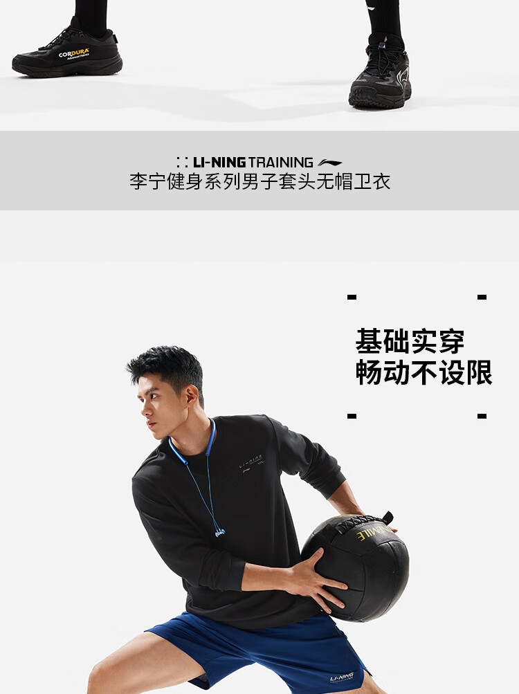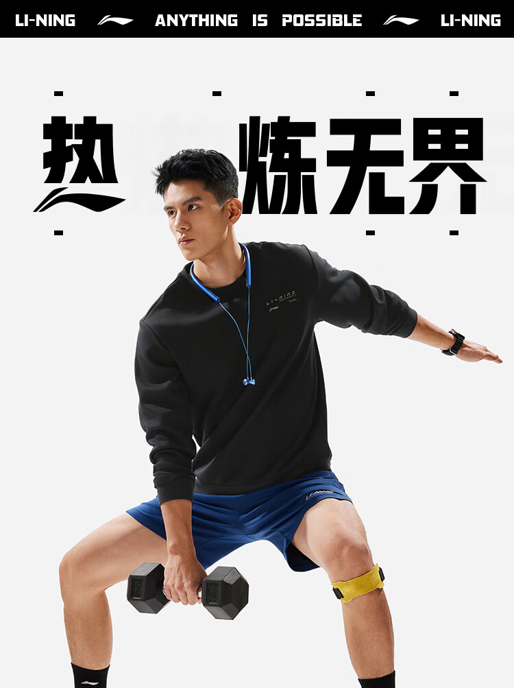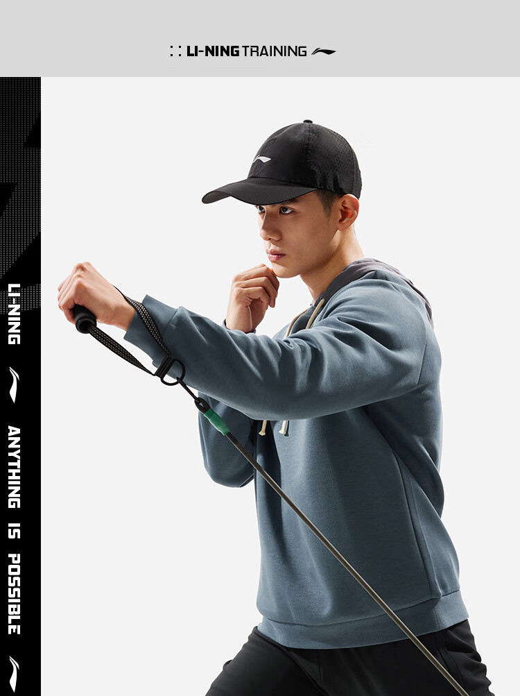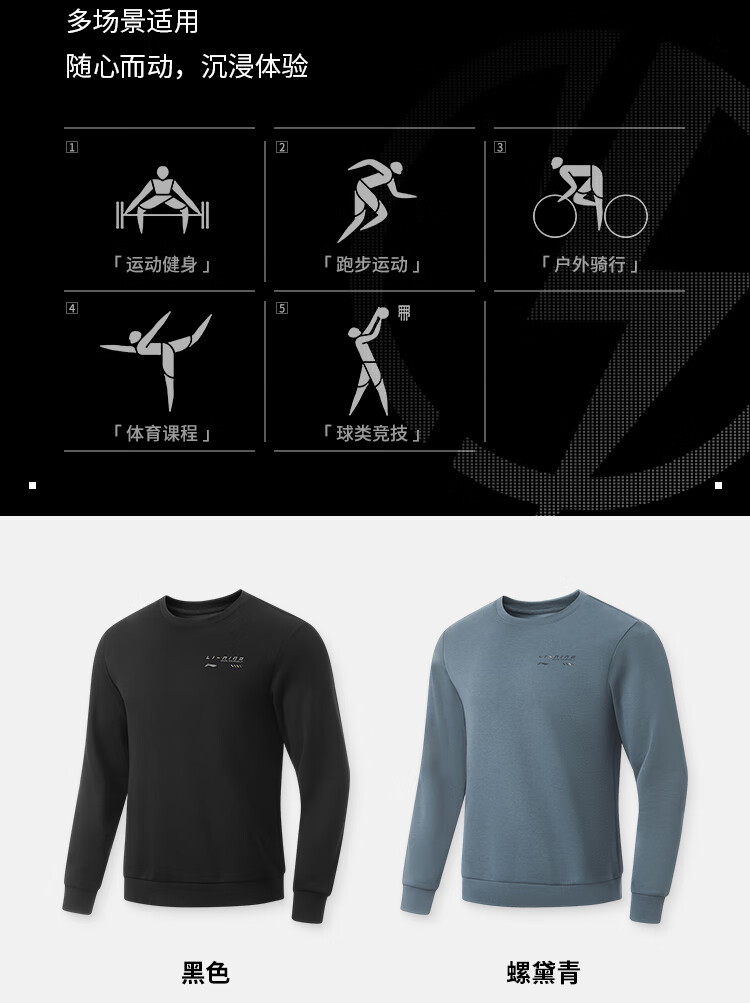 李宁卫衣男子时尚空气层宽松套头圆领健身运动上衣AWDU165