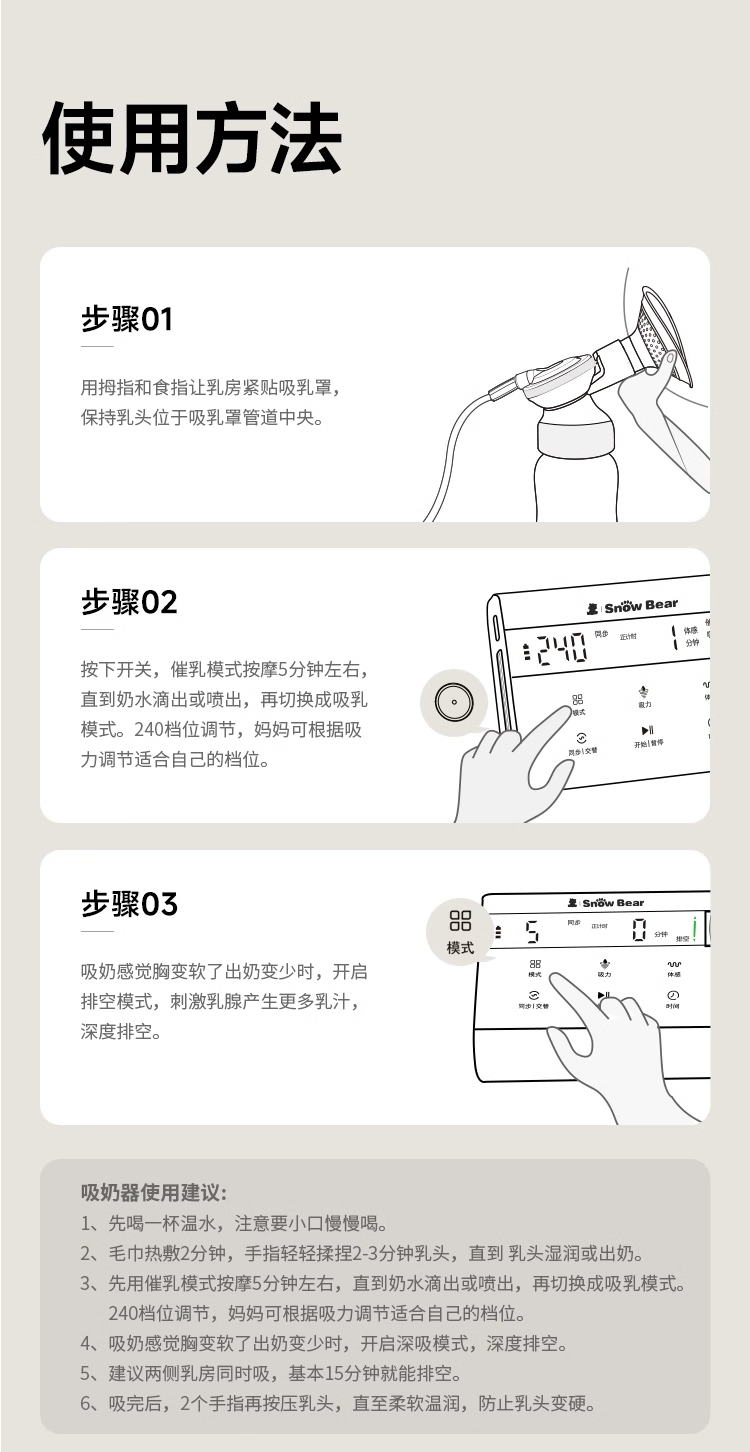 小白熊免手扶热敷电动吸奶器HL-9023