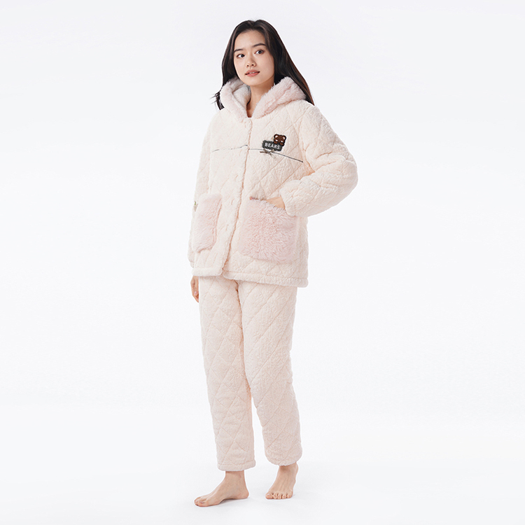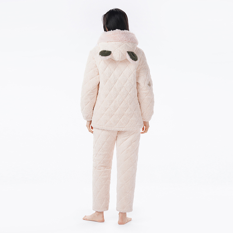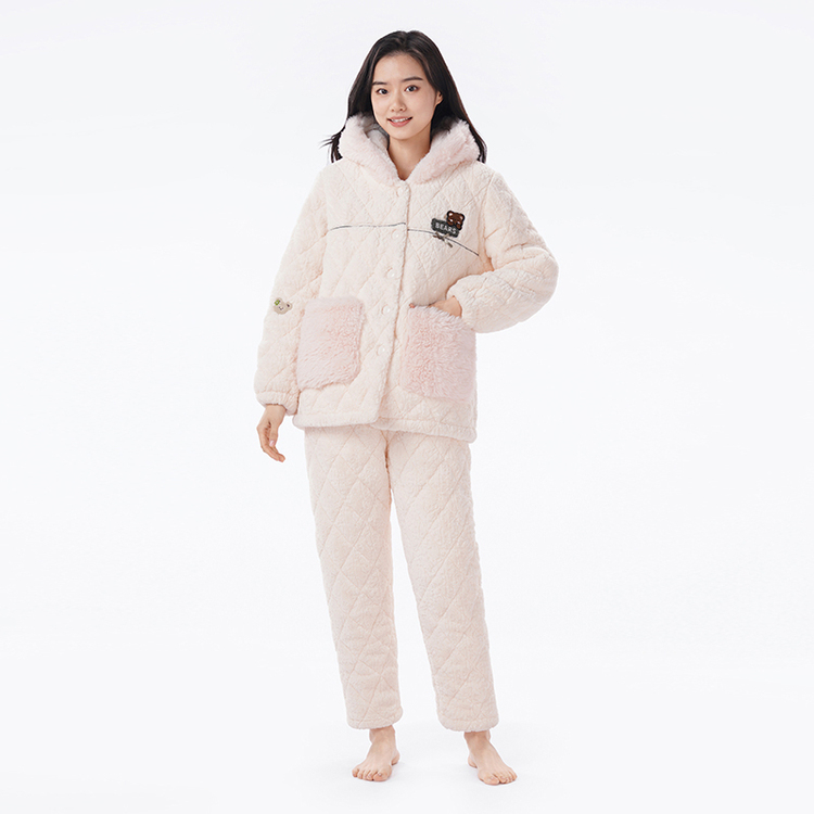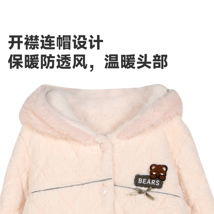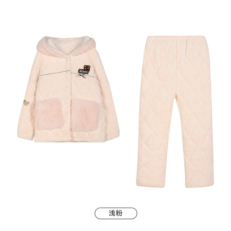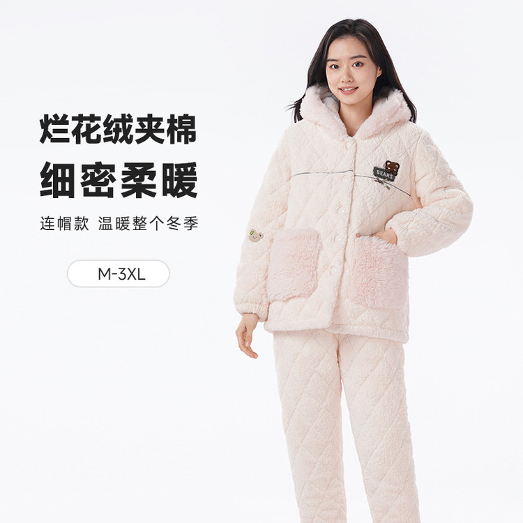 都市丽人烂花绒夹棉睡衣女士家居服长袖长裤加厚夹棉套装LHH1N2