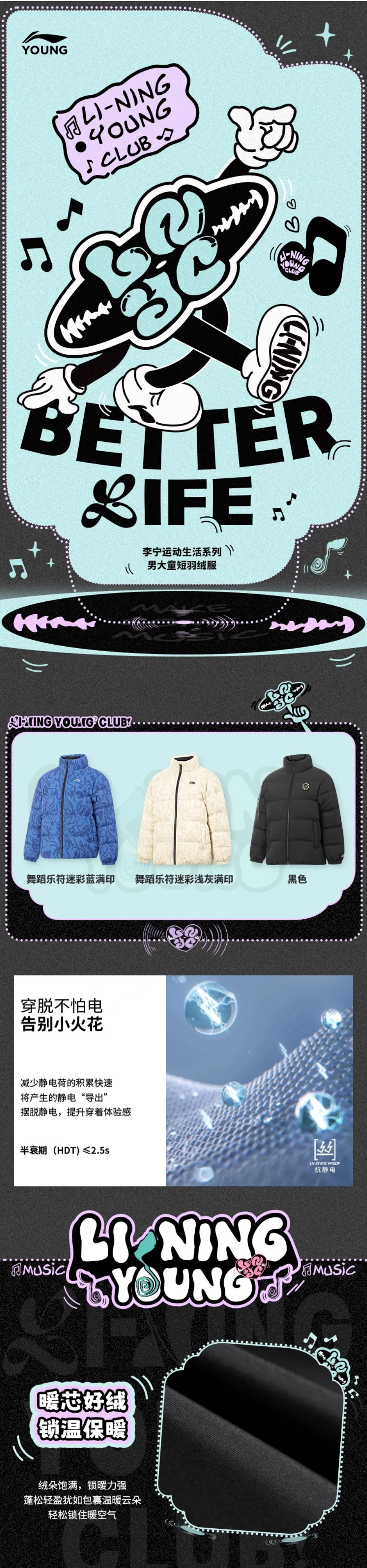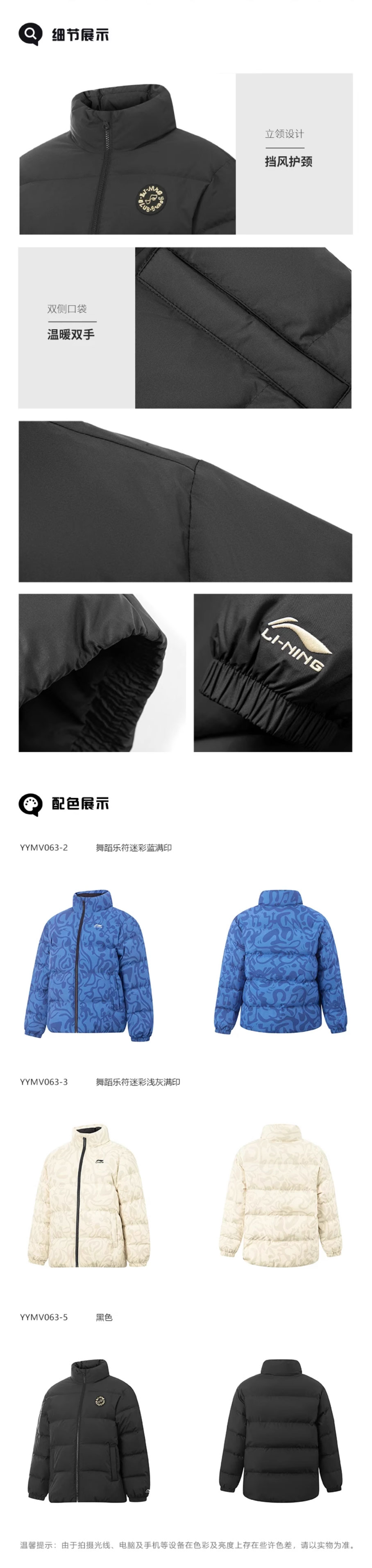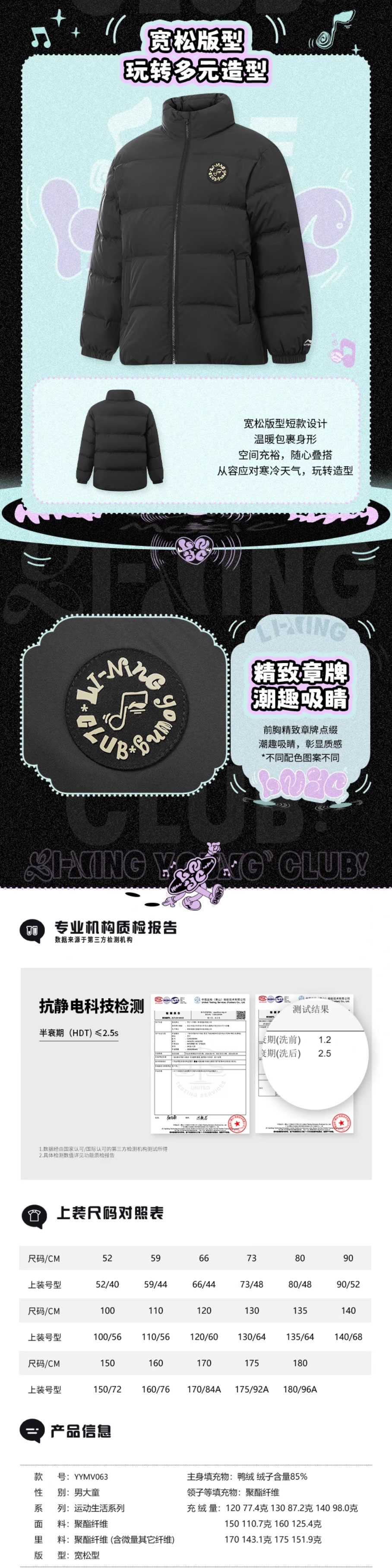 李宁男大童2025冬季新款保暖85%鸭绒短羽绒服YYMV063-2