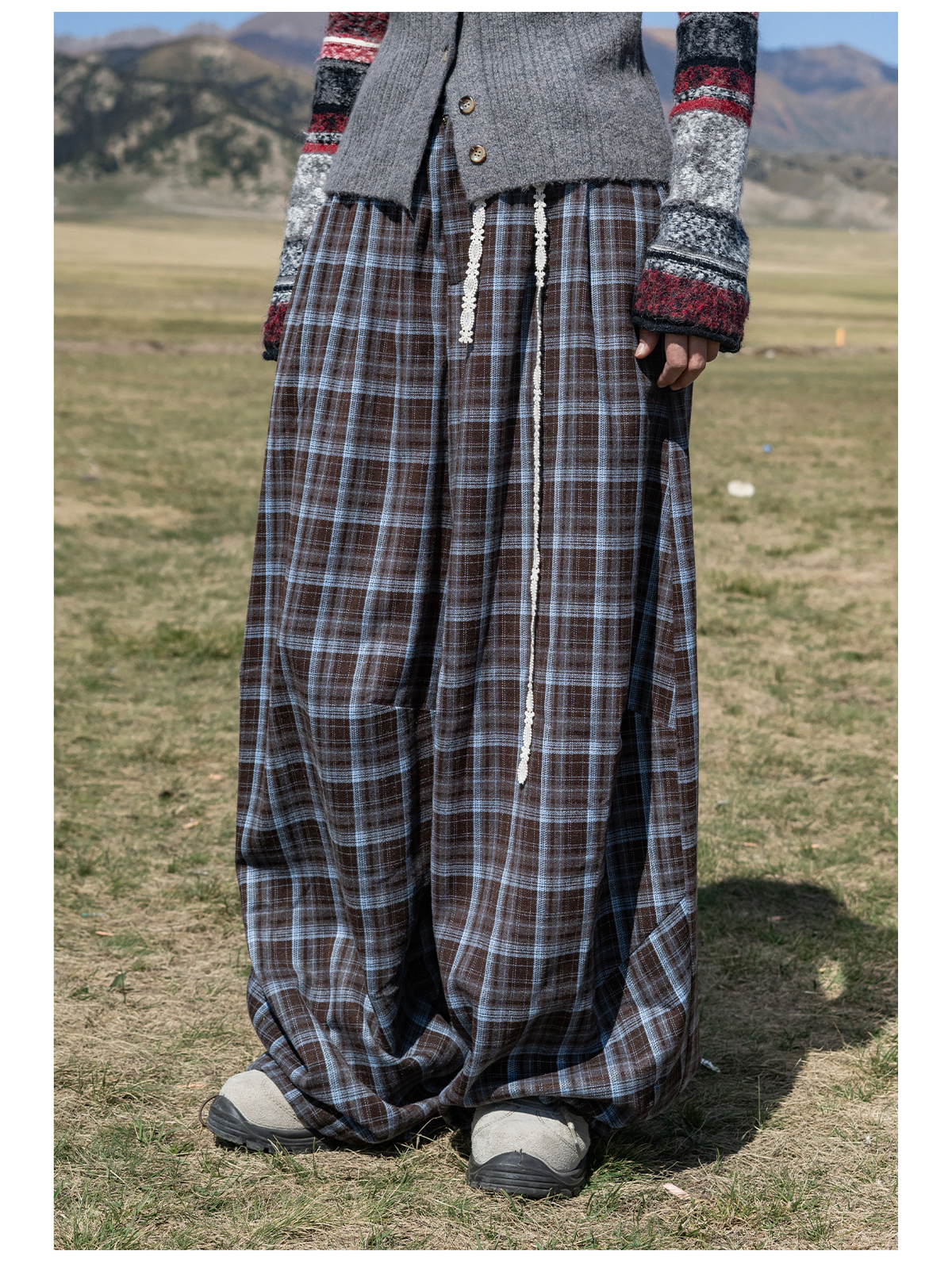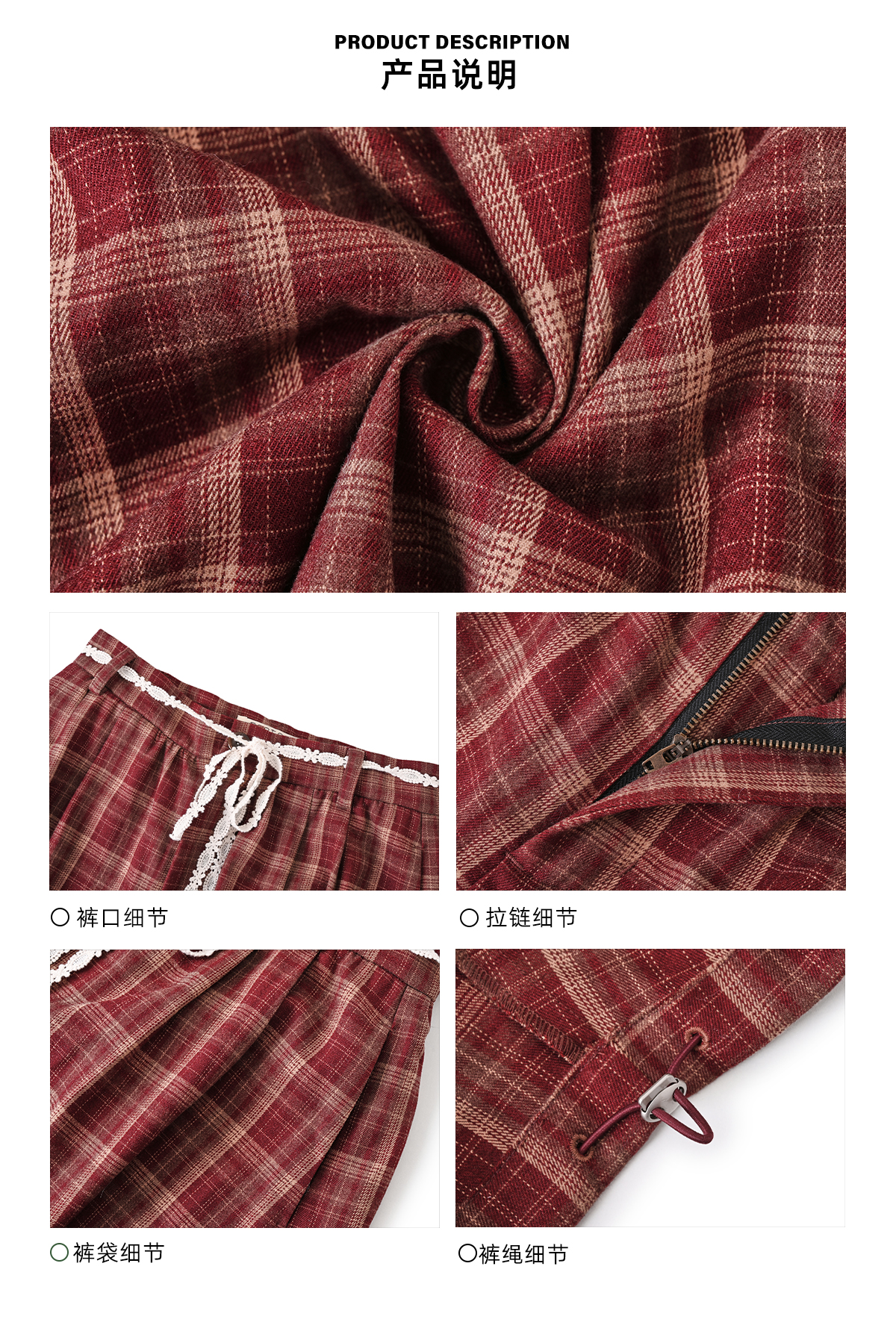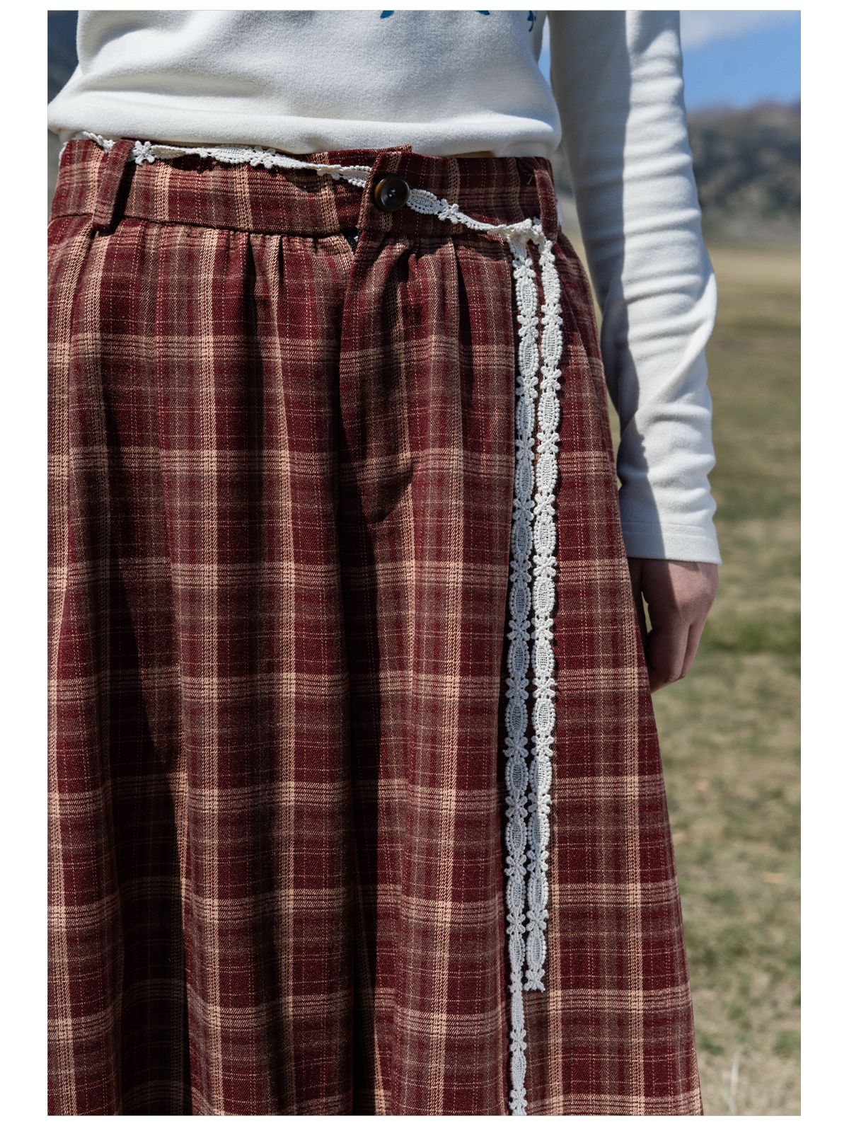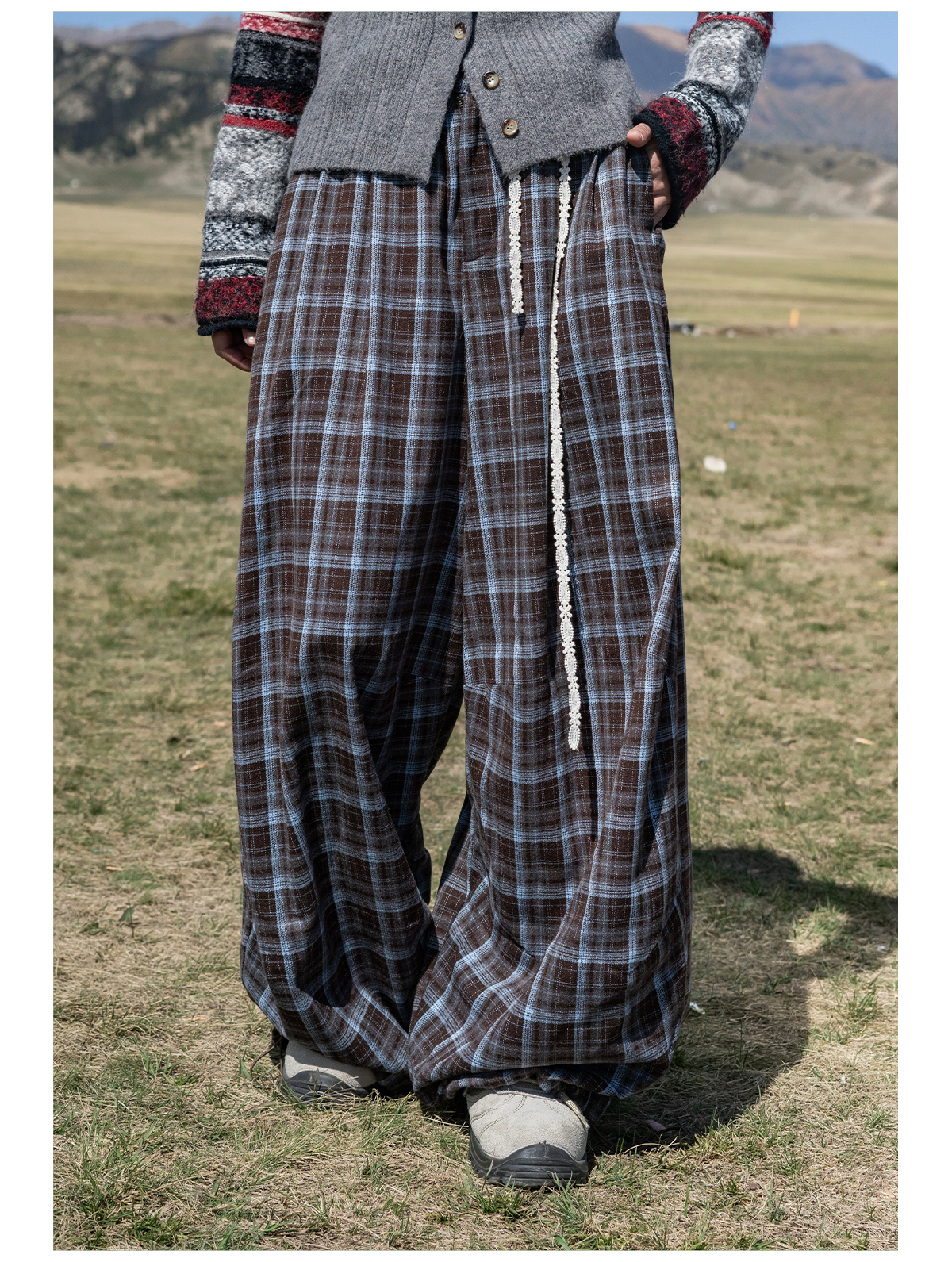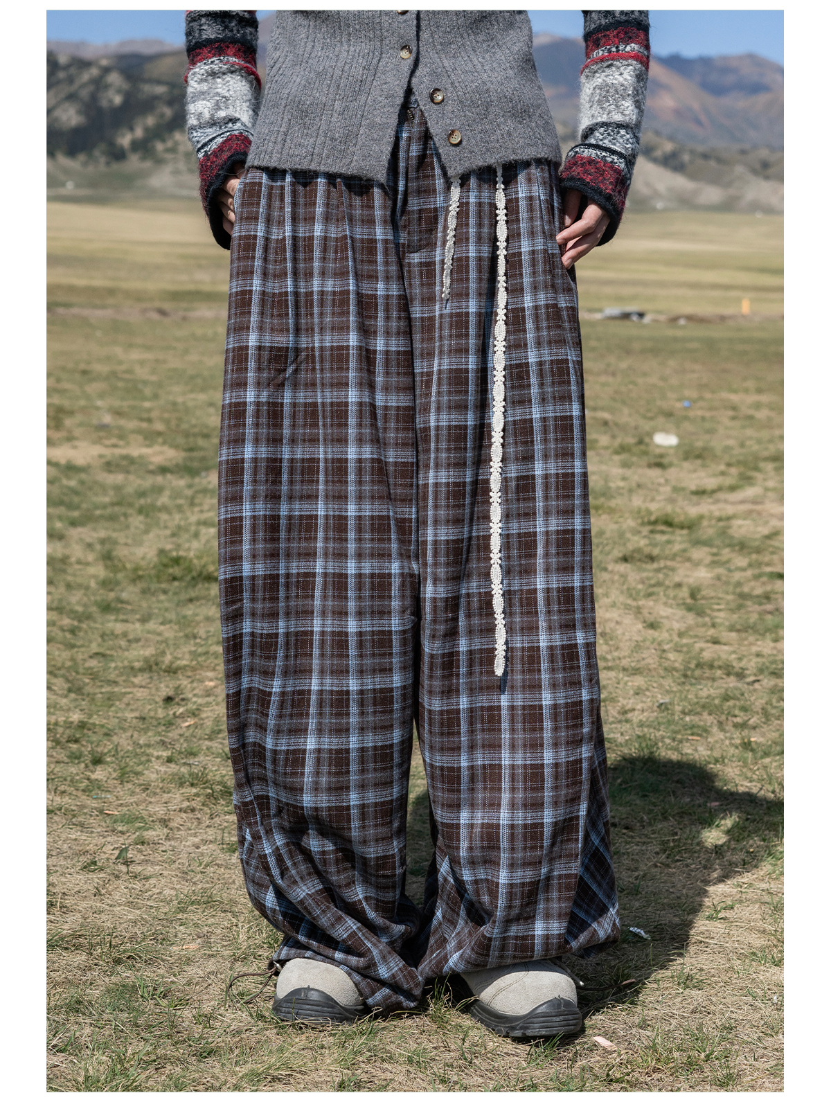 早乙女惠子saotome/STMKZ14910/磨毛格纹蕾丝裤绳阔腿裤
