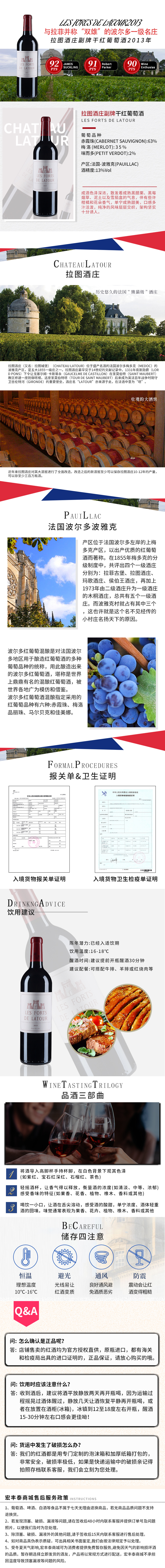 法国-拉图酒庄副牌干红葡萄酒2013年