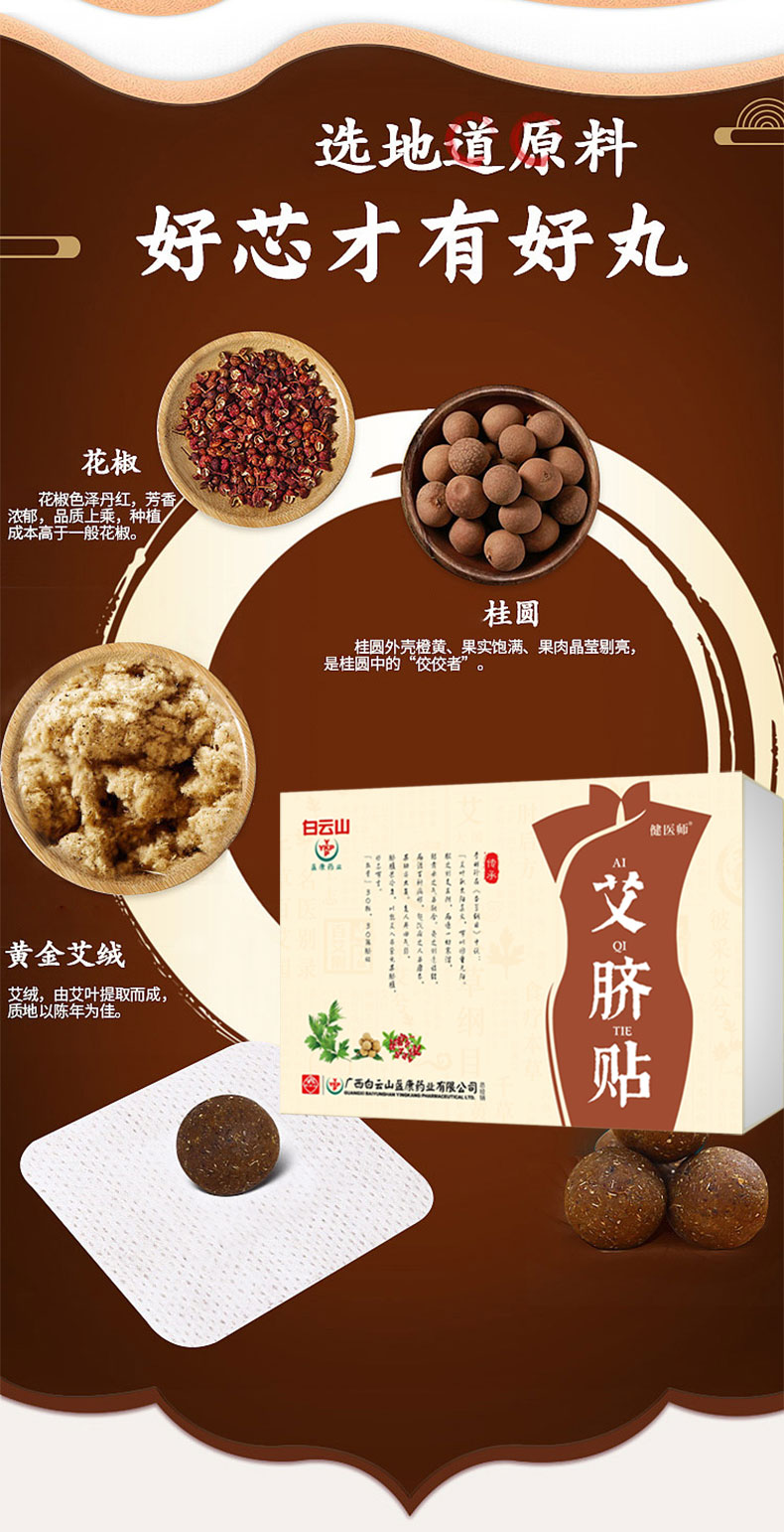 【身体“抽湿机”】白云山艾脐贴 古方炮制手工制作 晚贴早揭无添加 湿气/胀气/宫寒 艾绒肚脐贴30贴+30丸/盒