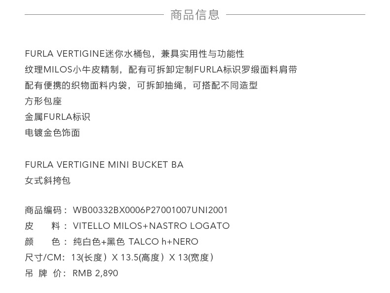 FURLA芙拉VERTIGINE女士斜挎包撞色拼接水桶包肩背迷你包