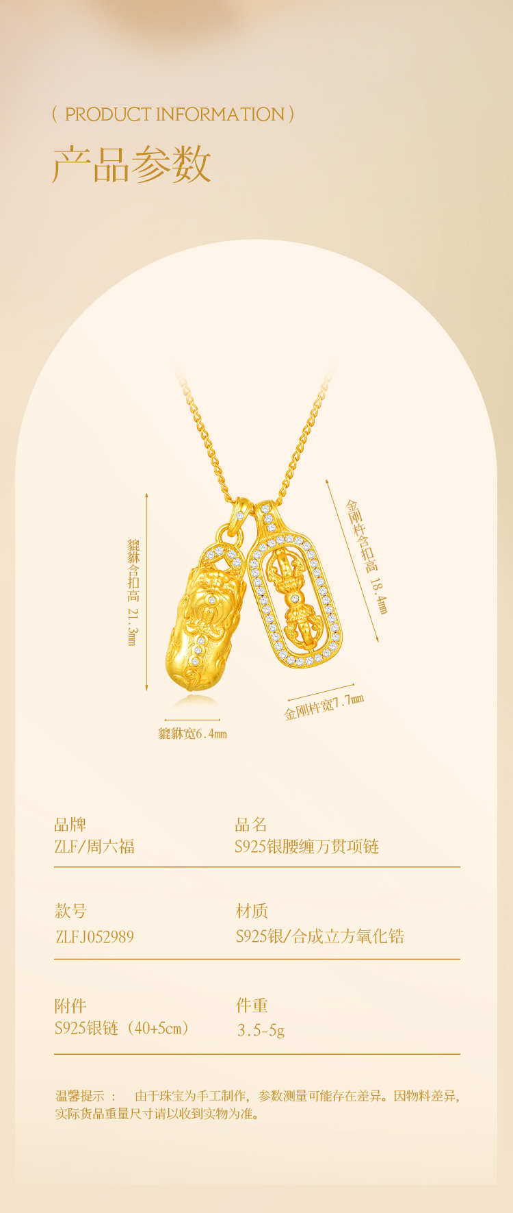 周六福S925银腰缠万贯项链ZLFJ052989★