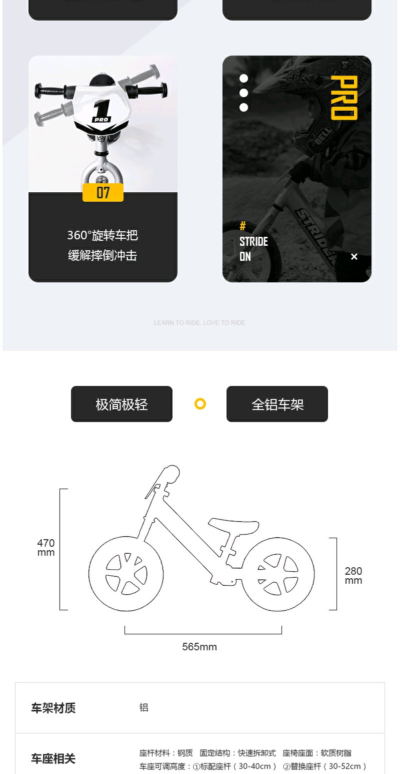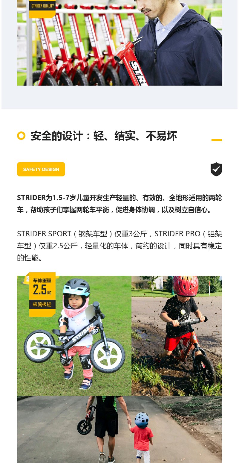 STRIDER pro系列儿童平衡车1.5-5岁滑步车学步车宝宝无脚踏自行车
