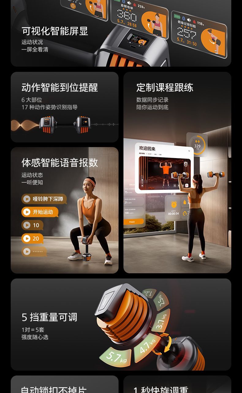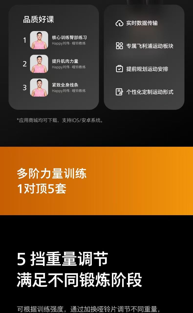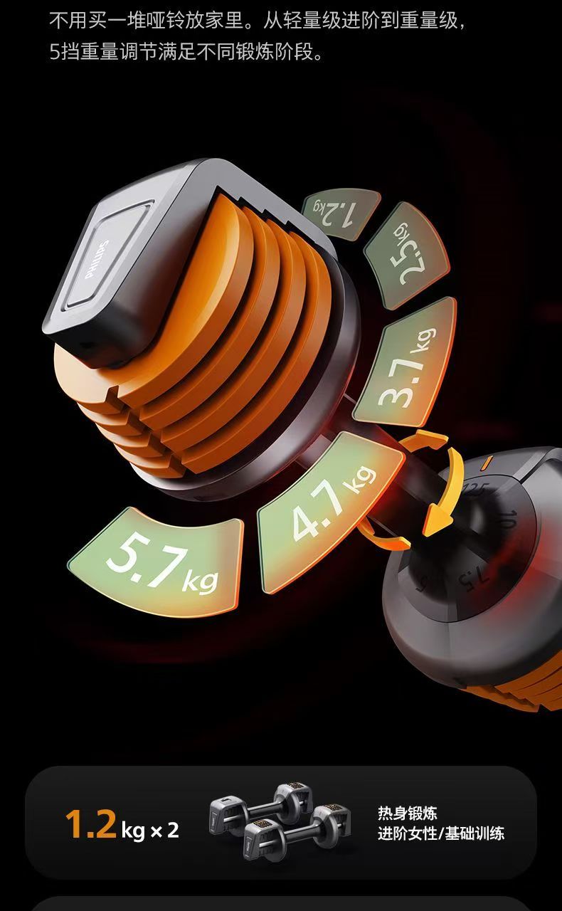 飞利浦智能哑铃可调节重量男女士健身家用训练器材