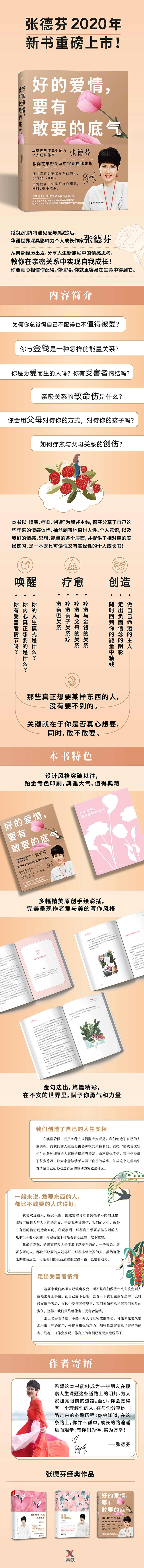 本书以“唤醒、疗愈、创造”为叙述主线,张德芬分享了自己这些年来的情感体悟,更深入地探讨不同的人生主题,并且提供了很多实操练习,让大家能够把学到的知识、道理应用在生活中,从不同的角度再次抽丝剥茧地探讨人性、个人意识,以及我们的情感、思想、能量的各个层面,来探讨我们究竟怎么做才能拥有一个更好的人生,是一本既具可读性又有实操性的个人成长书。
