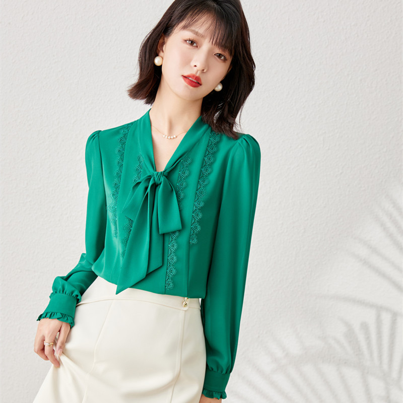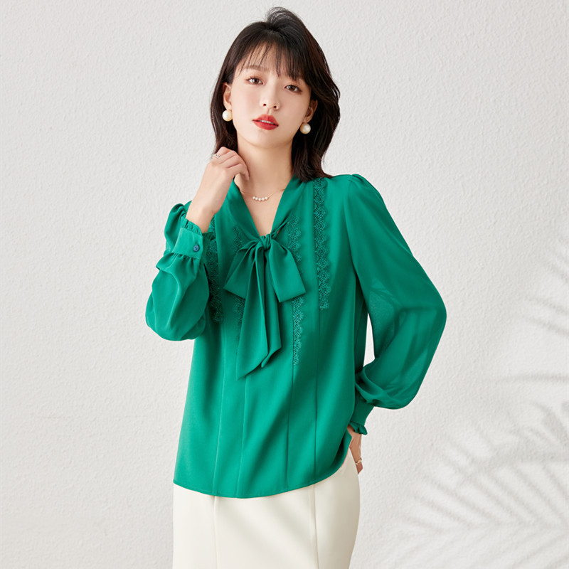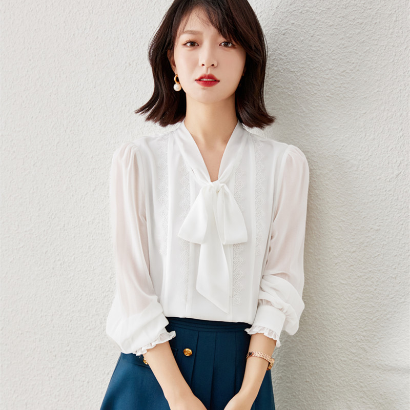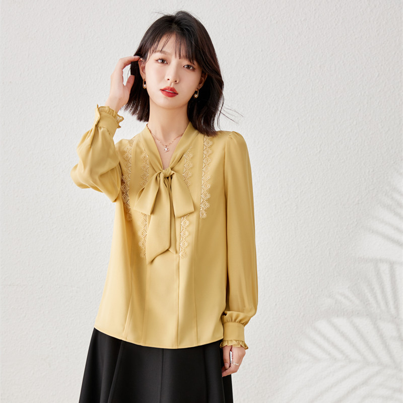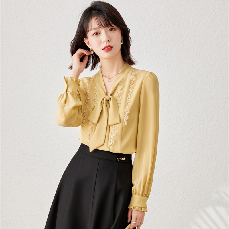 秋装新款,时尚花边系带V领雪纺气质长袖衬衫上衣YZ-1229