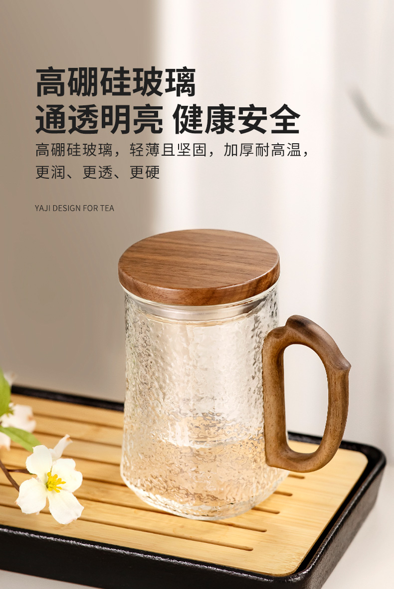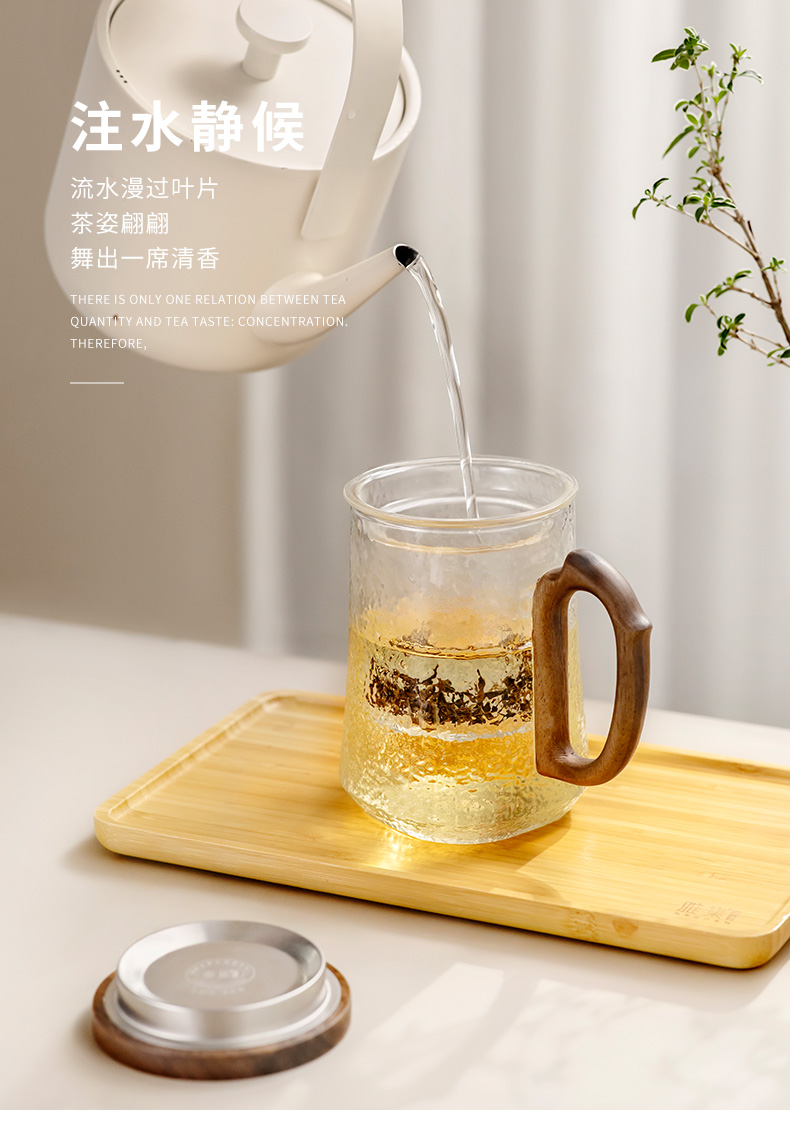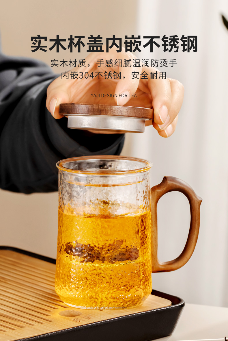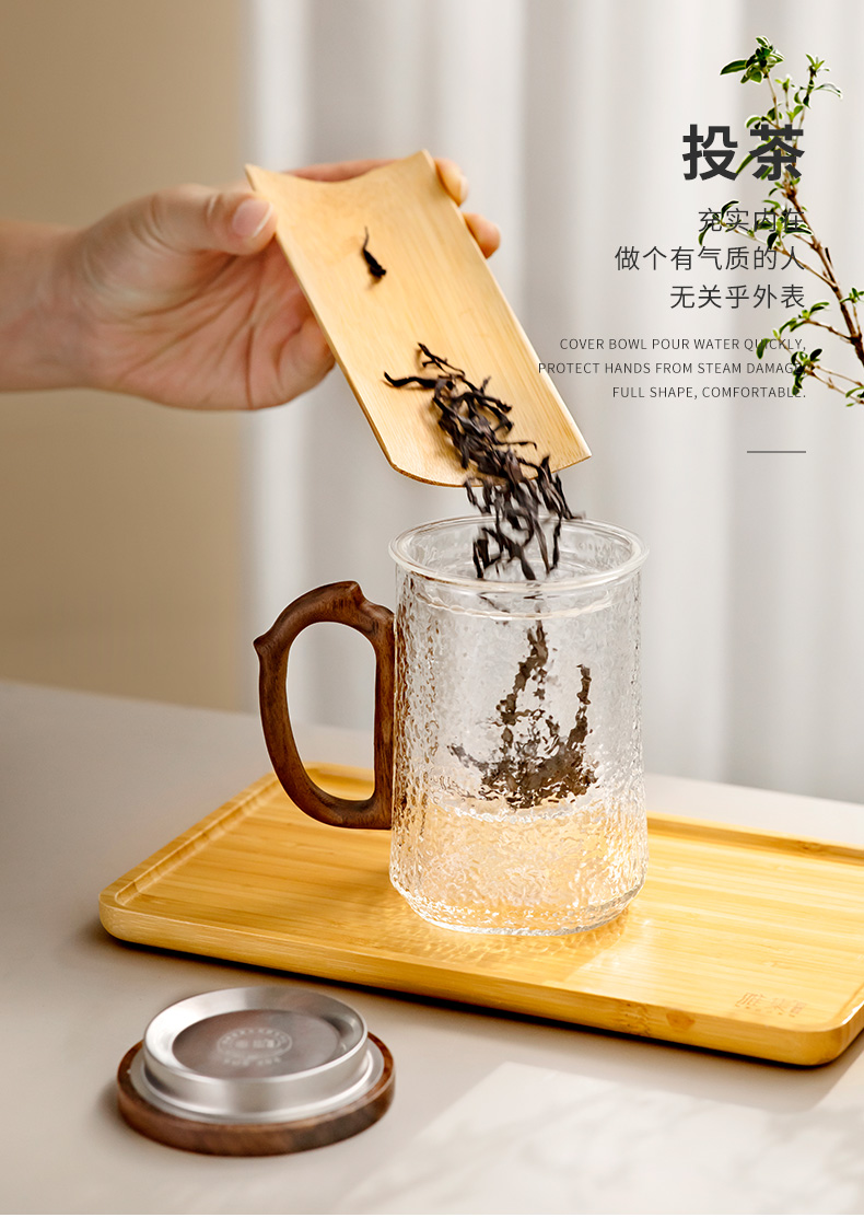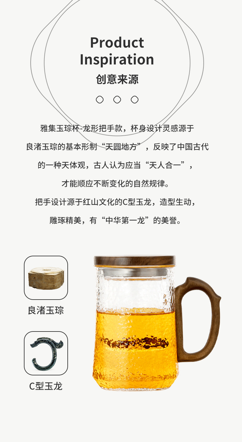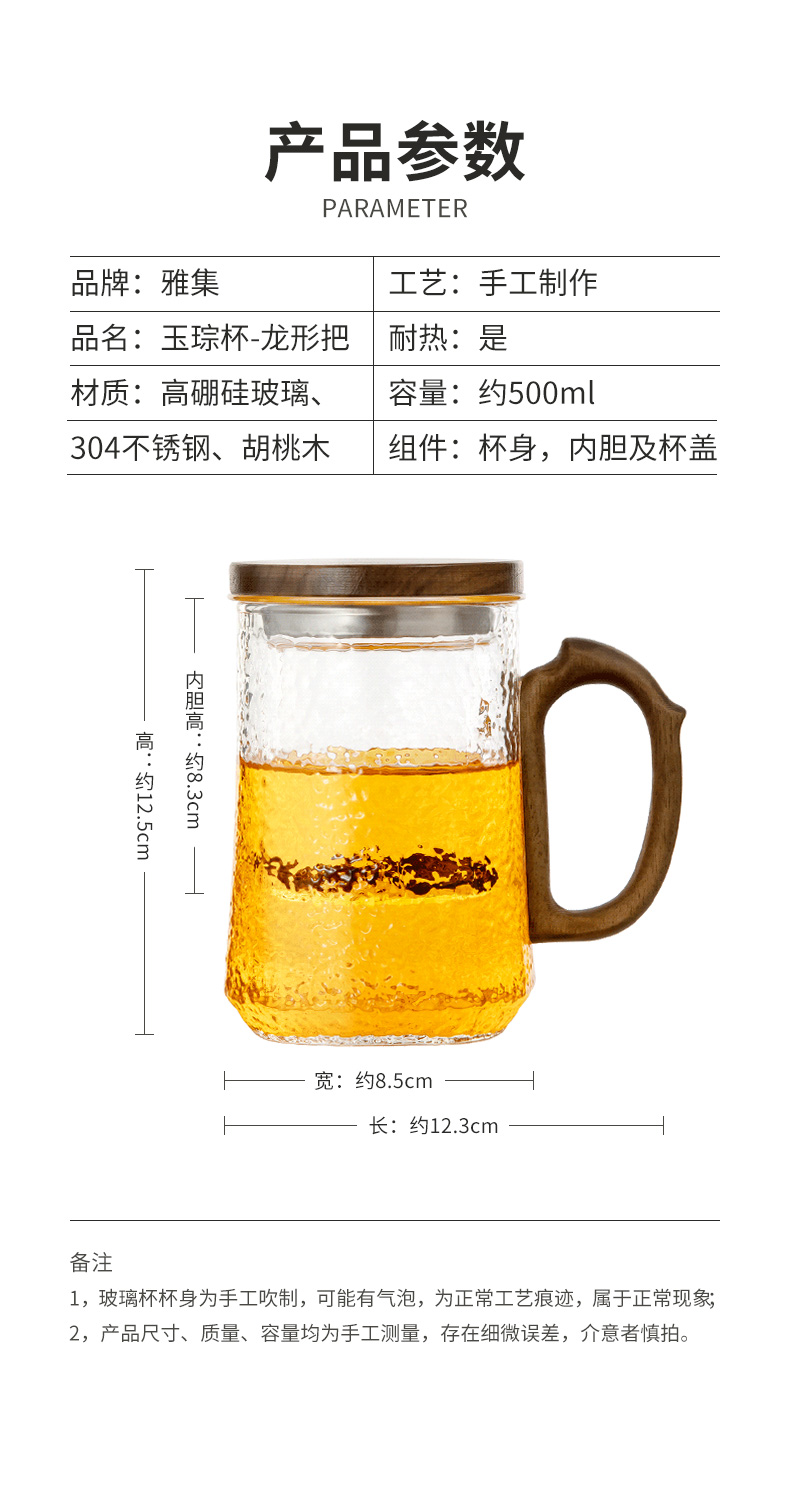 雅集玻璃杯玉琮杯500ml(木盖龙把款)