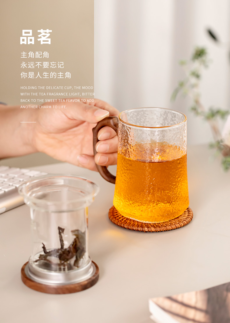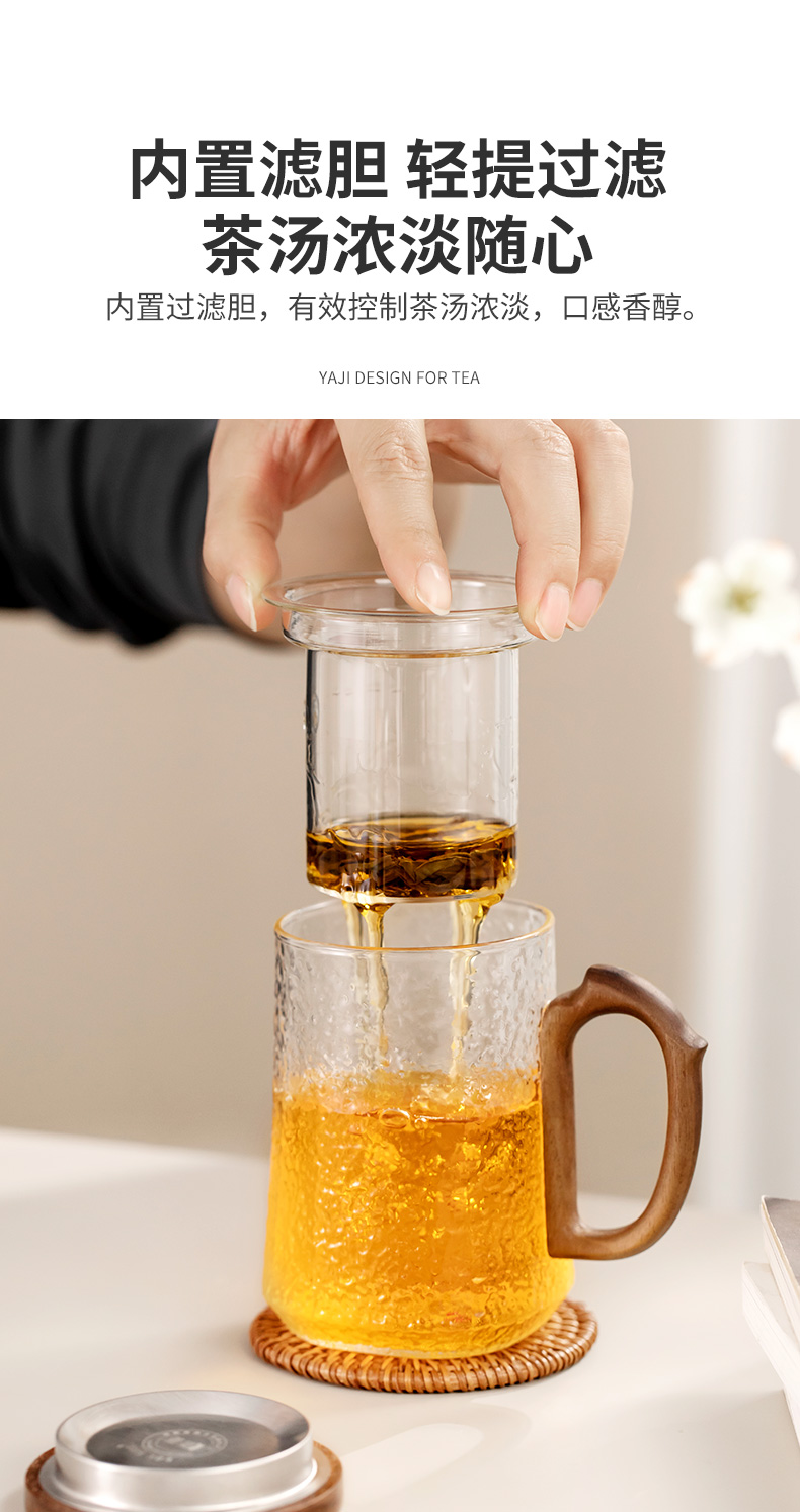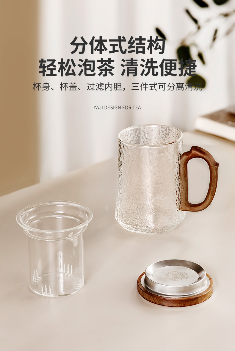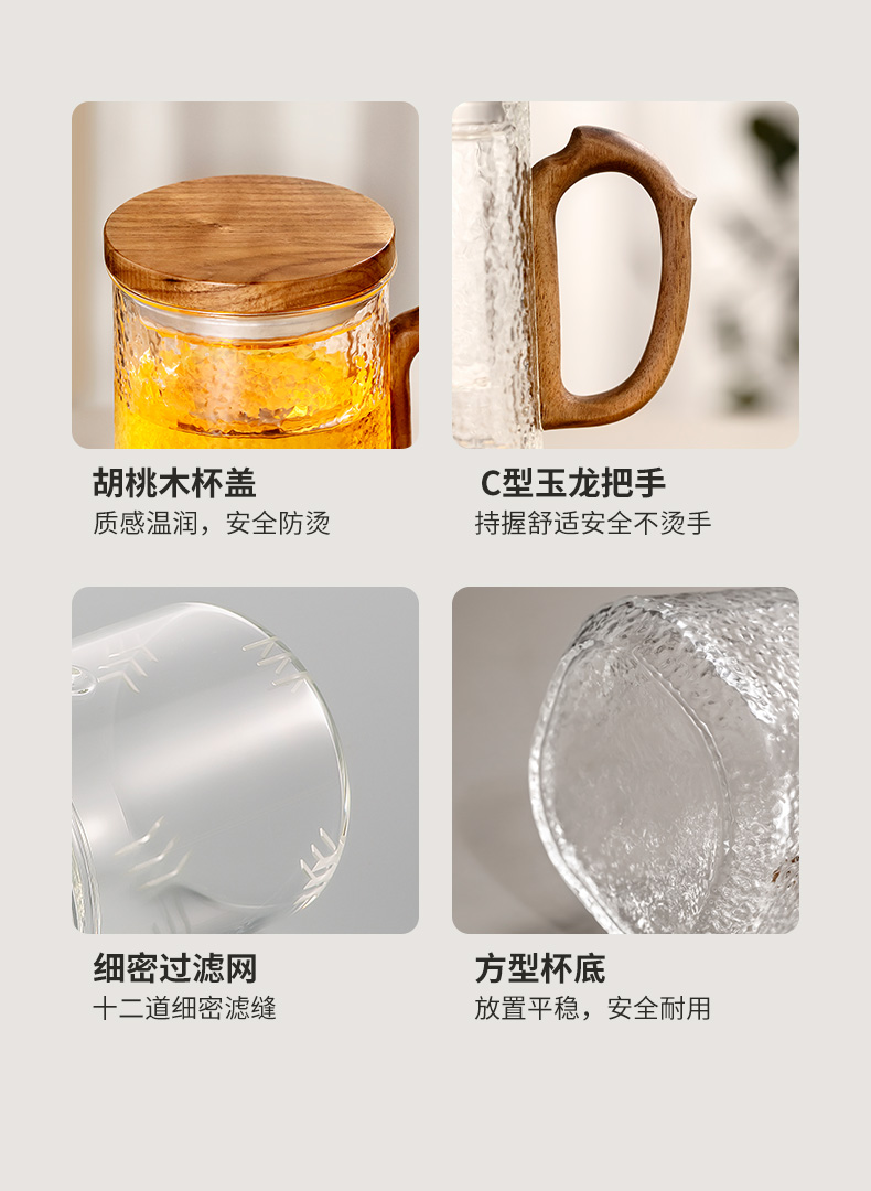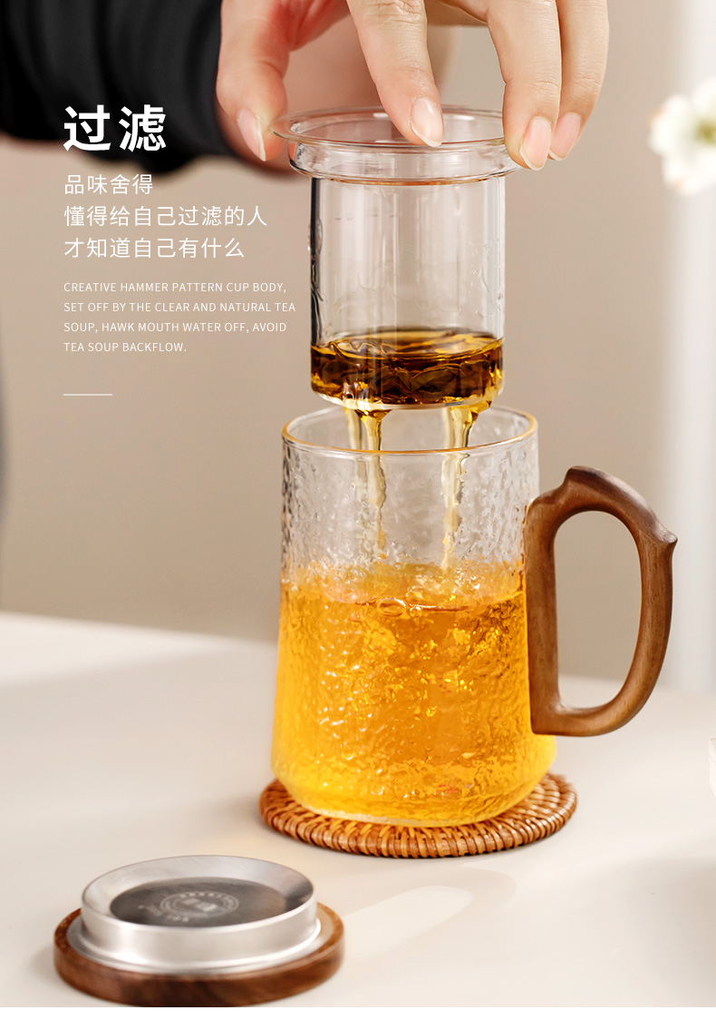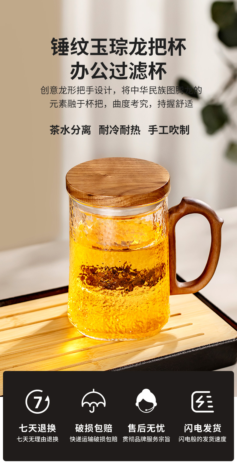 雅集玻璃杯玉琮杯500ml(木盖龙把款)