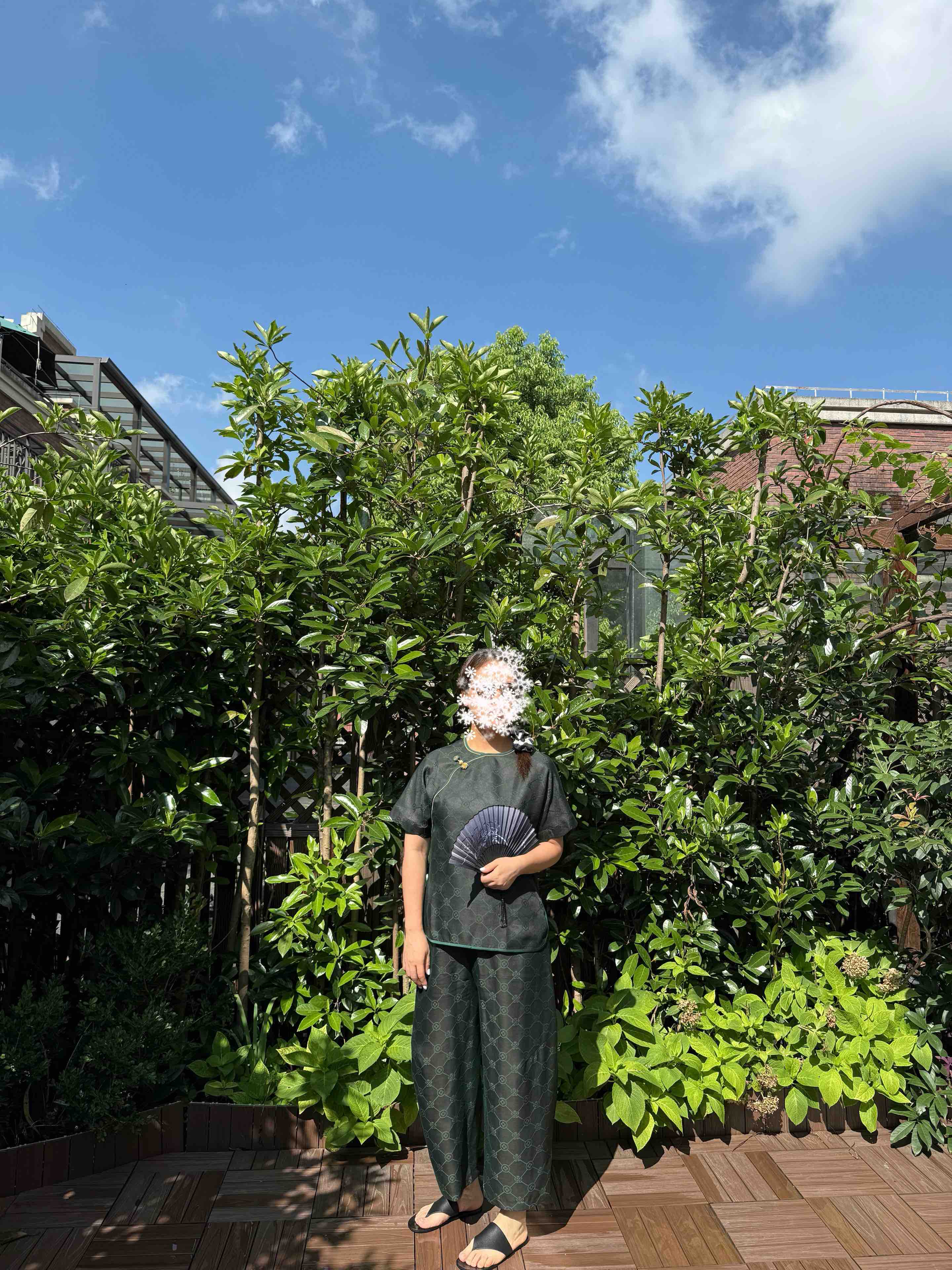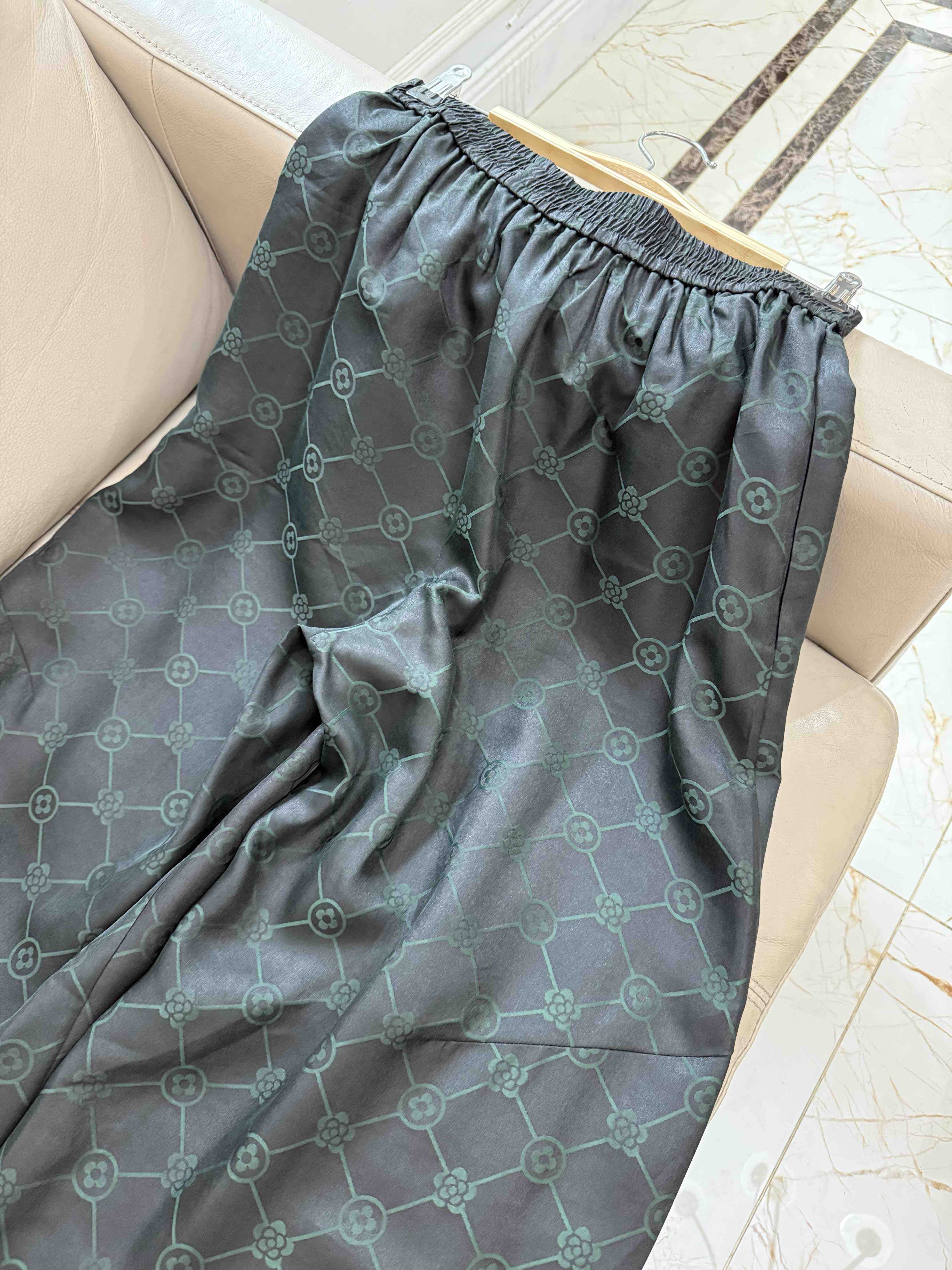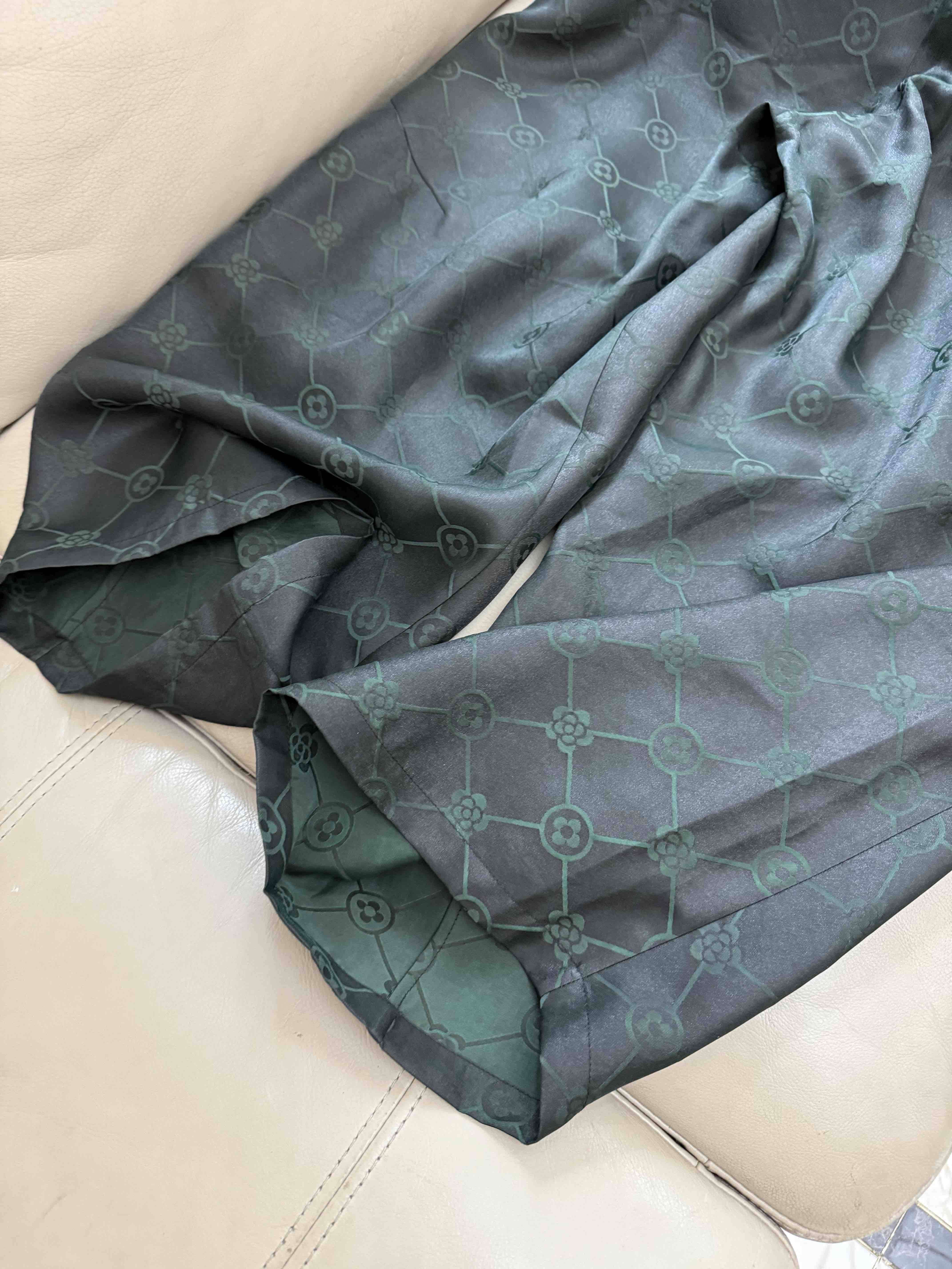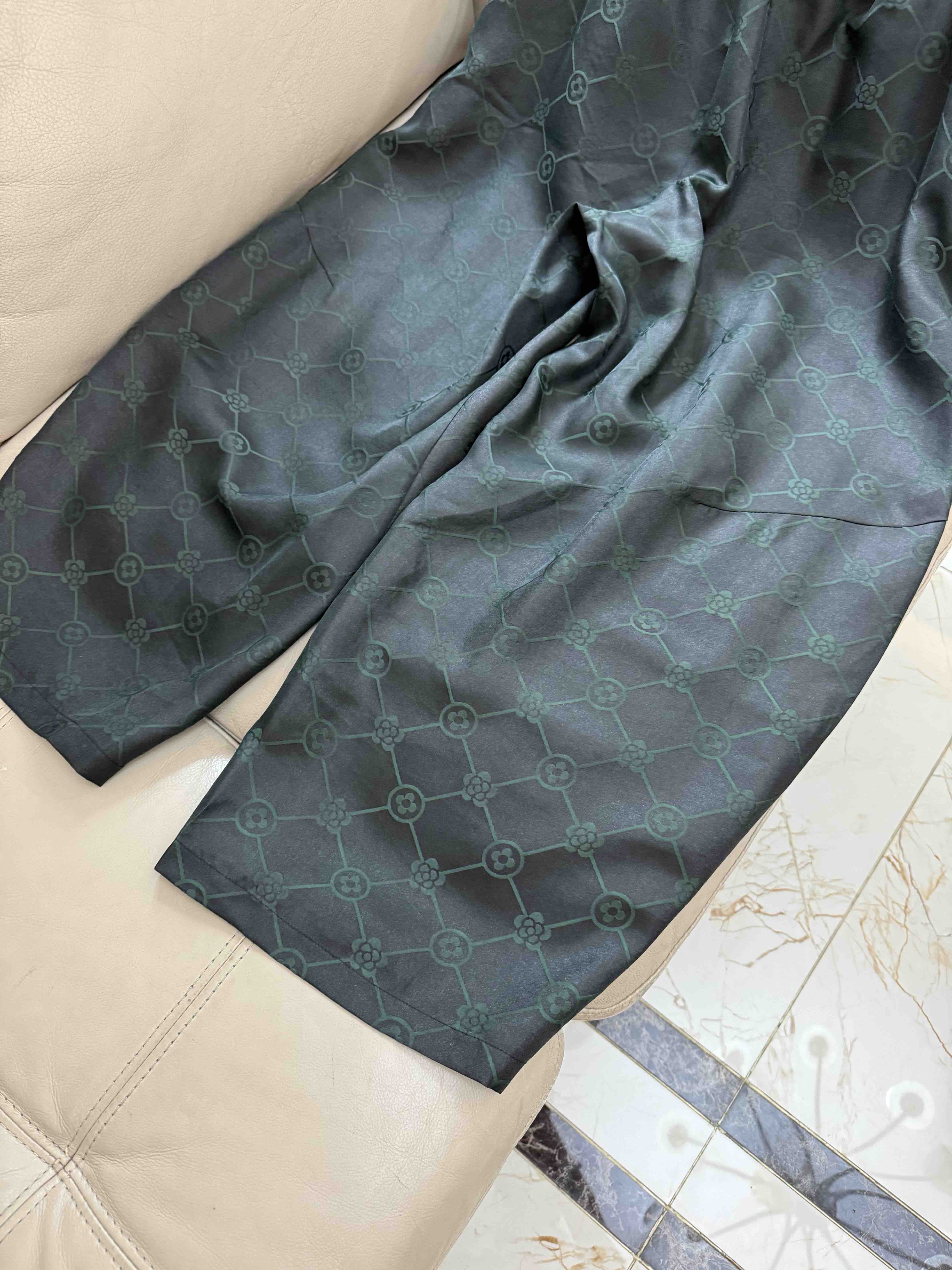 712-4 新中式 四时吉祥 香云纱提花 盘扣斜襟短袖上衣 松紧腰灯笼裤