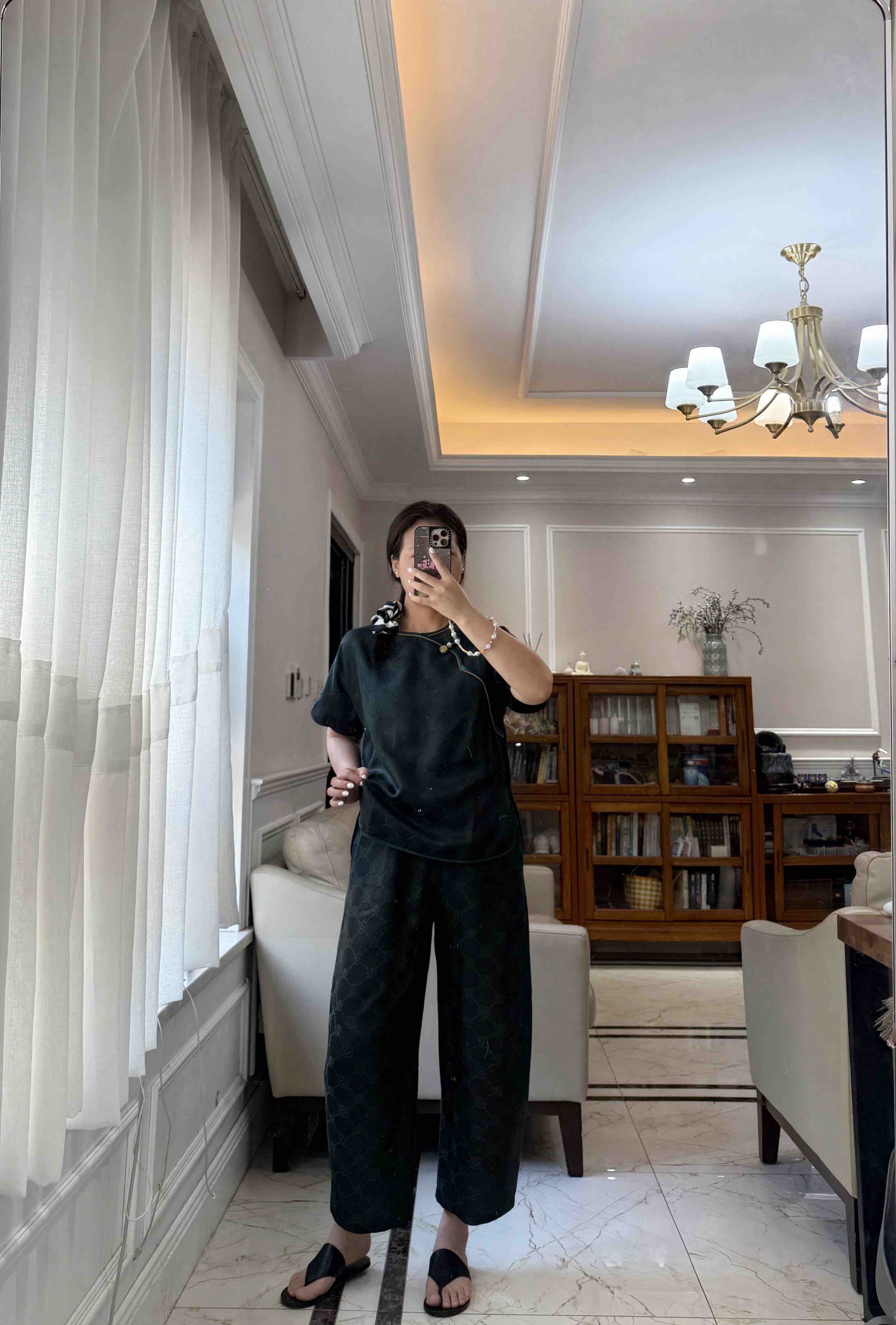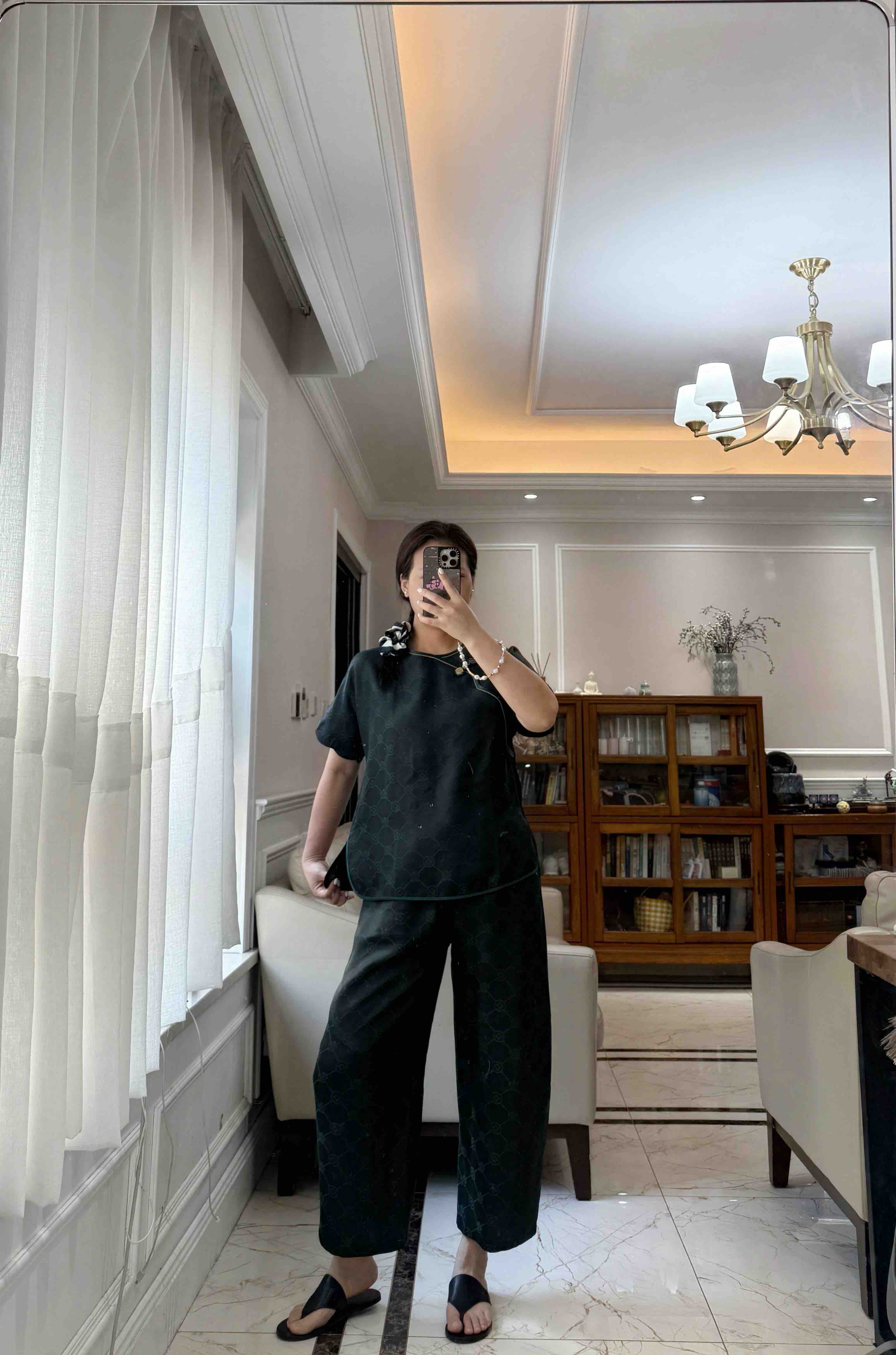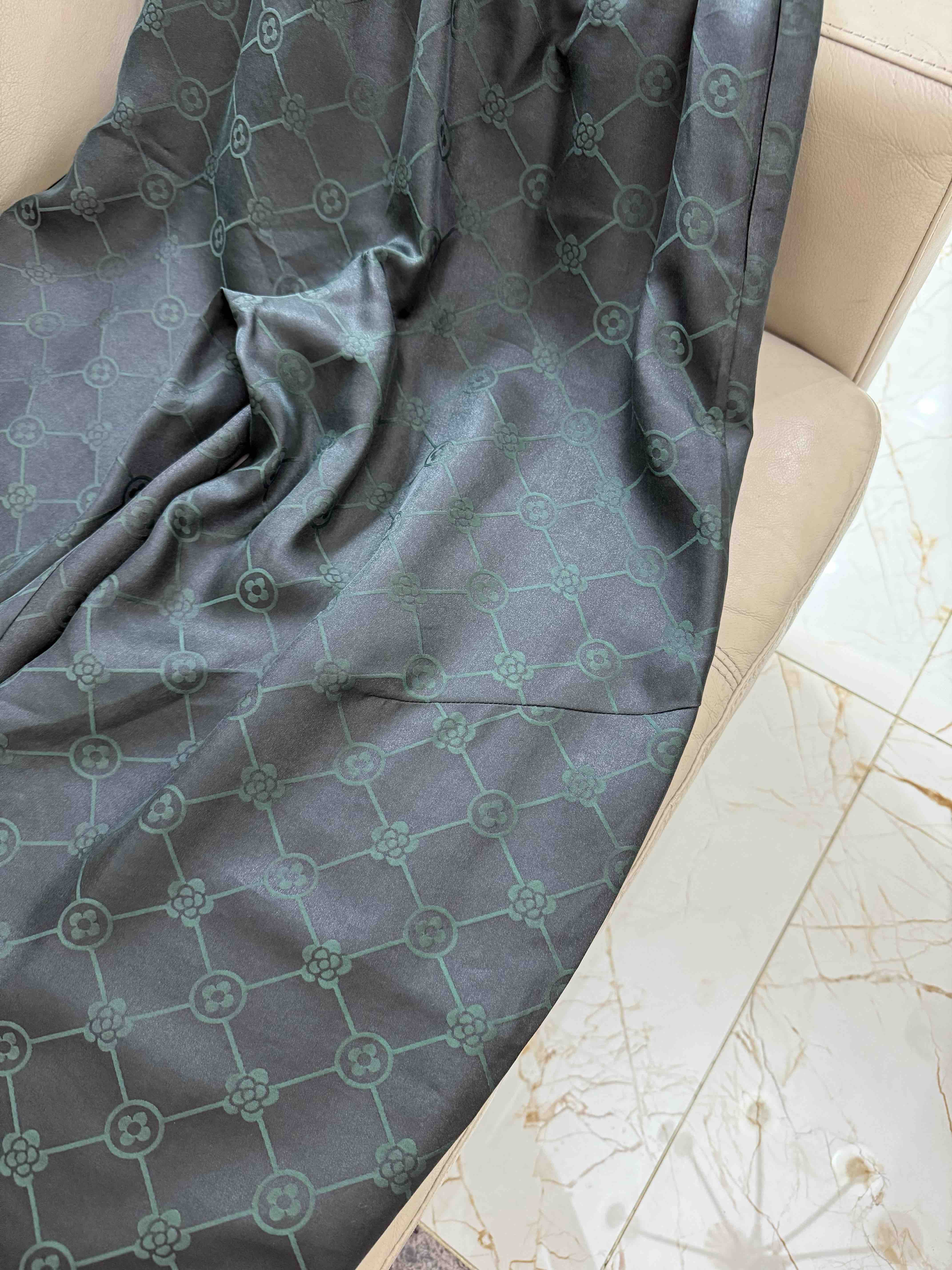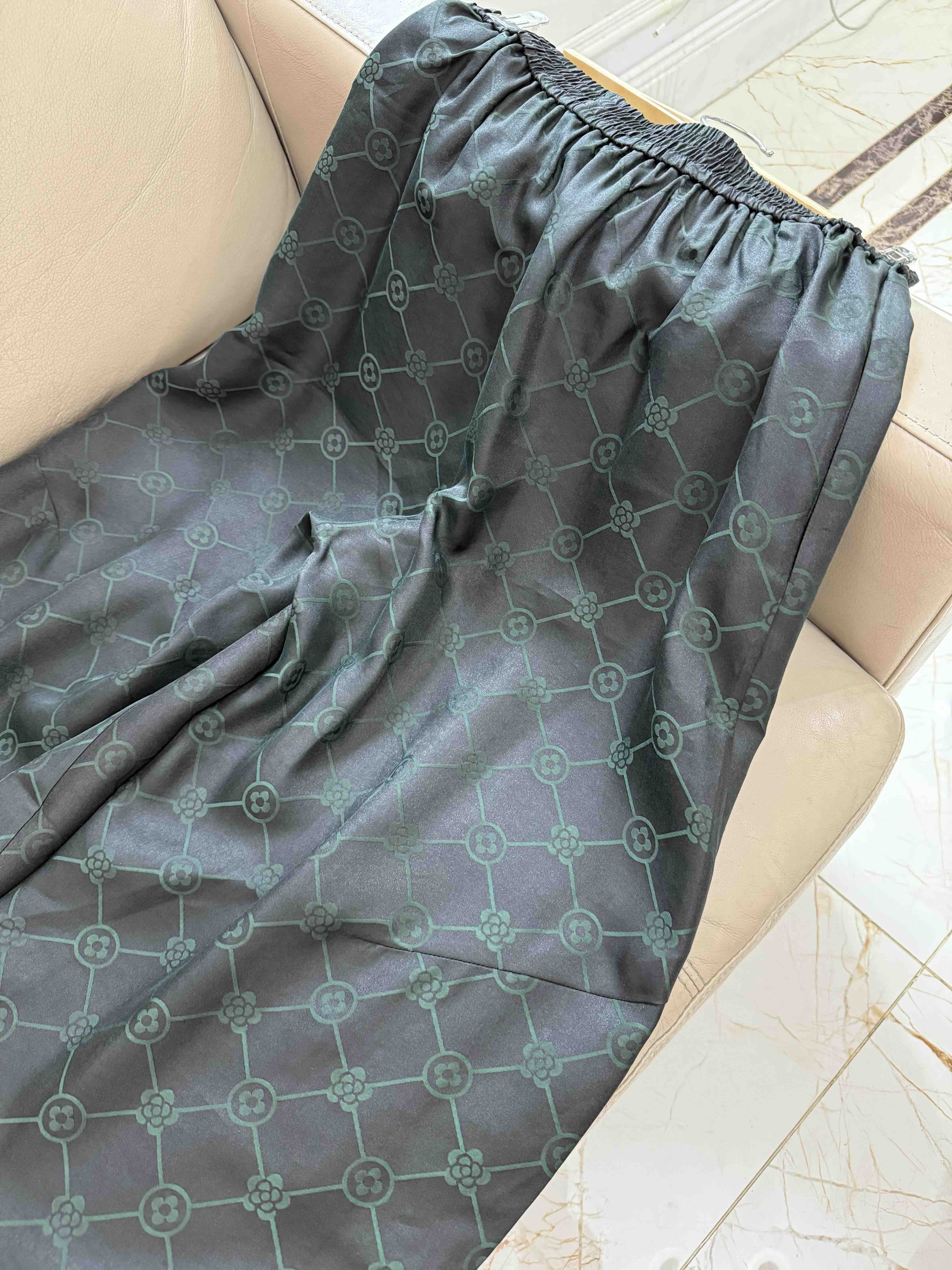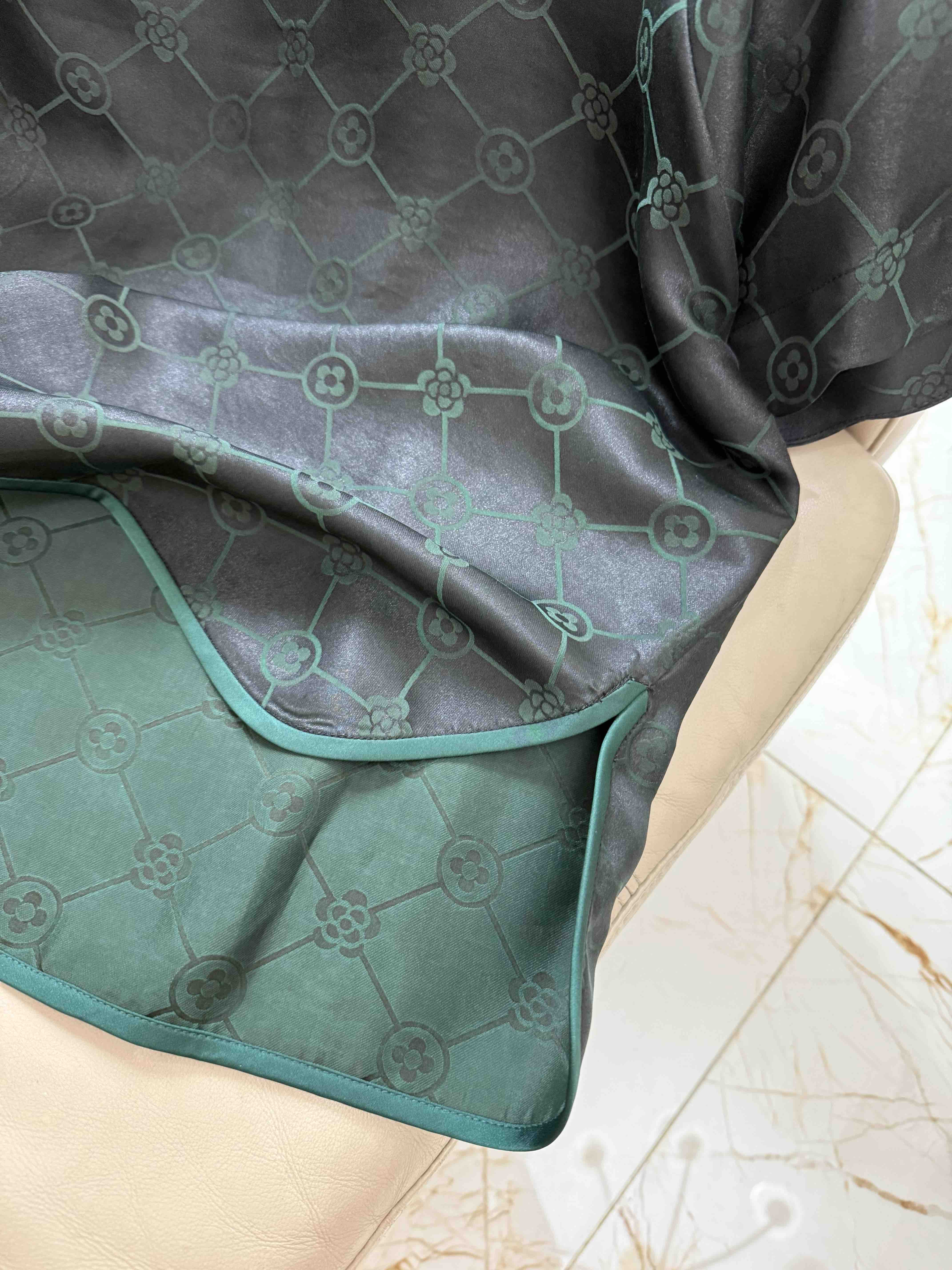 712-4 新中式 四时吉祥 香云纱提花 盘扣斜襟短袖上衣 松紧腰灯笼裤