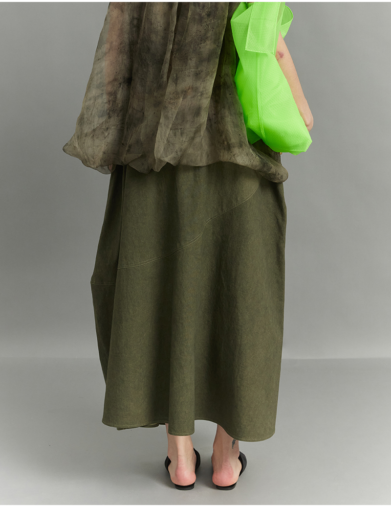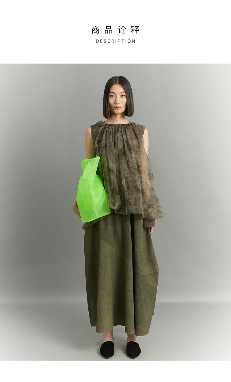 JUDYHUA J For Judy 解构绿意网纱立体褶五分袖衬衫