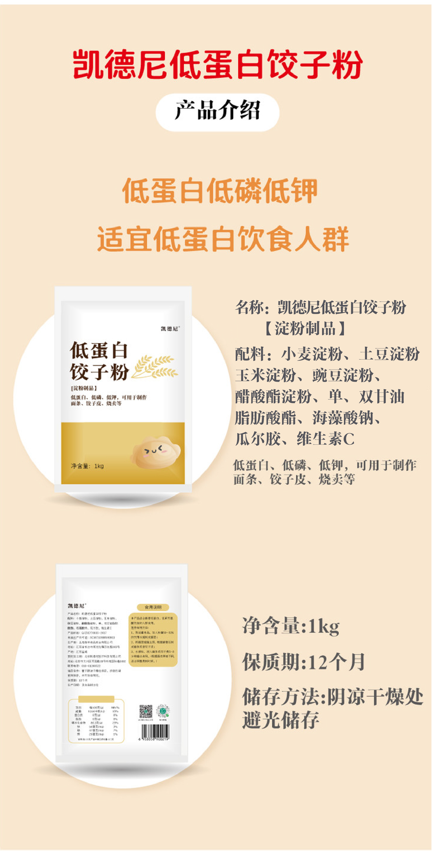 凯德尼低蛋白饺子粉 低蛋白低磷低钾 1kg/袋