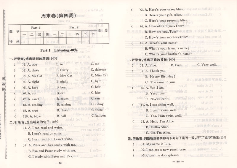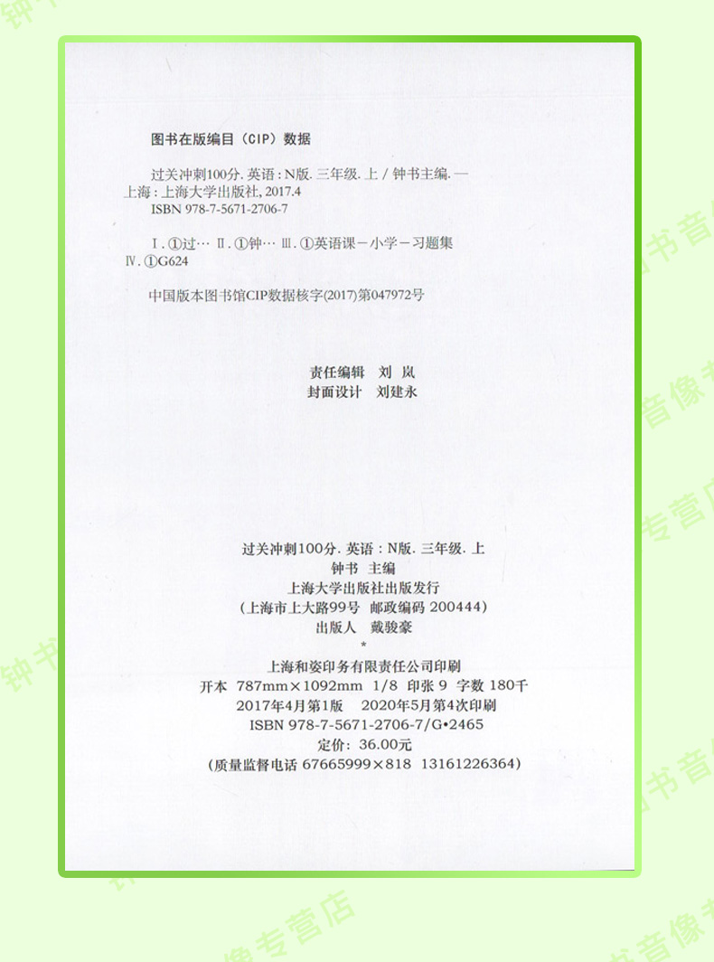 过关冲刺100分 英语 3年级/三年级上第一学期